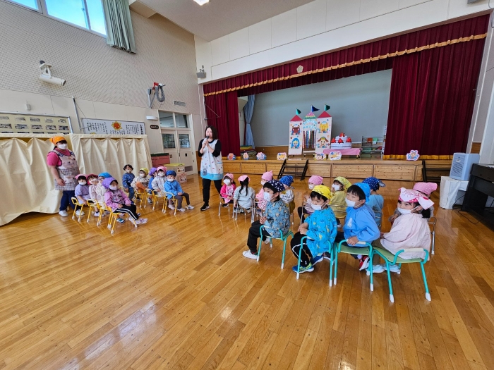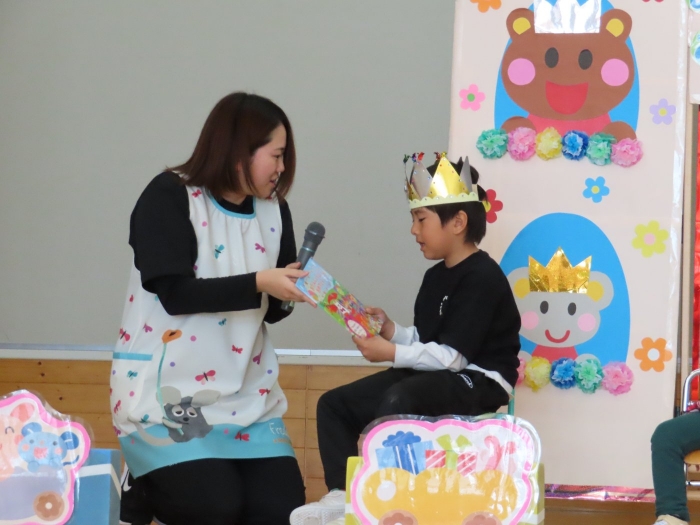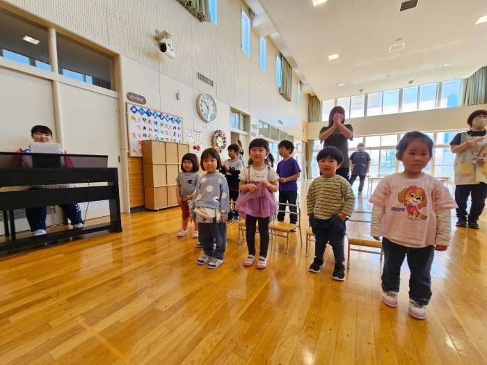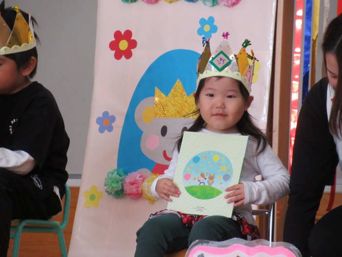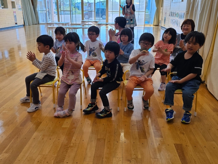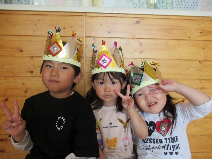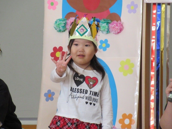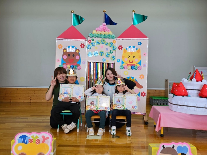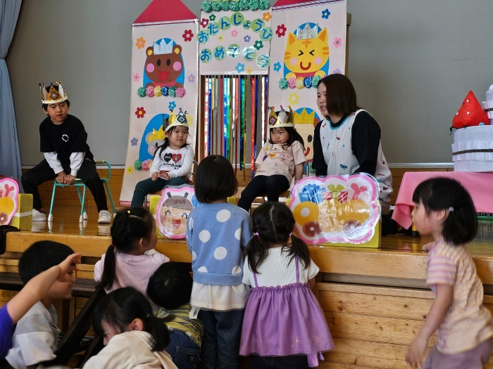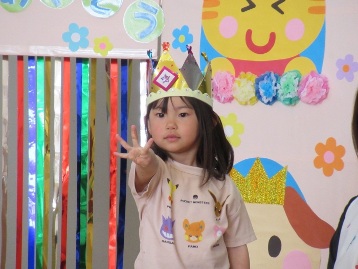 5月の誕生会☆彡 たけのこ組1名、いちご組2名のお友達をみんなでお祝い