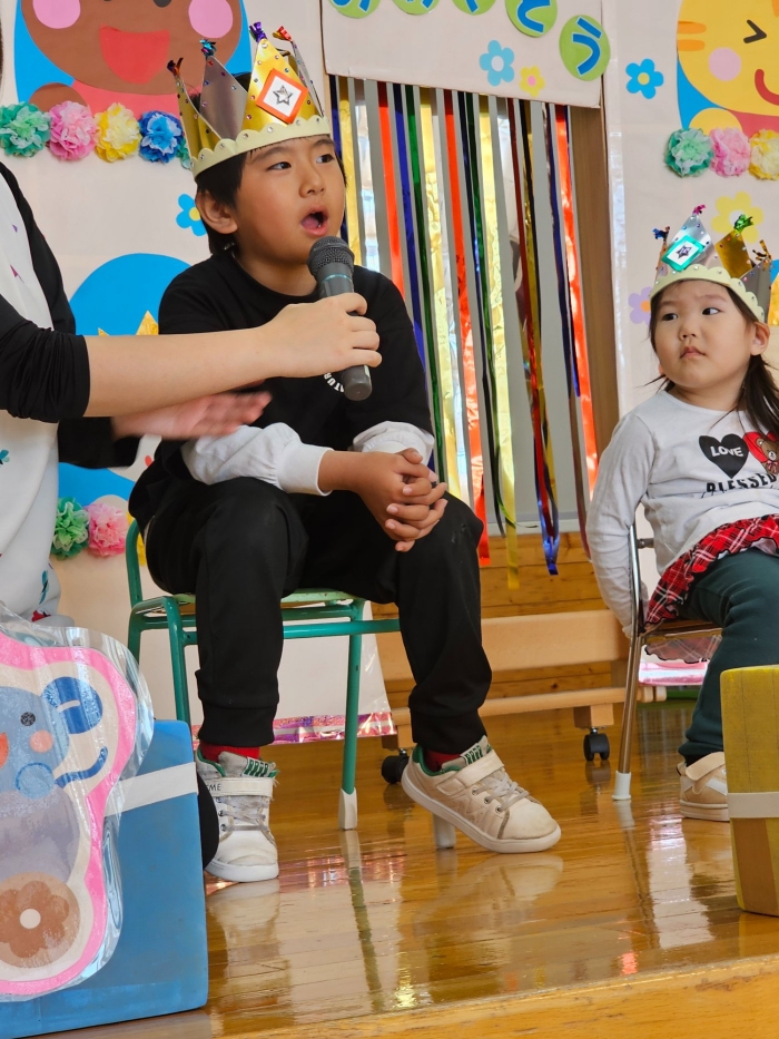 まだ2回目の誕生会ですが、堂々と質問する いちご組☆彡