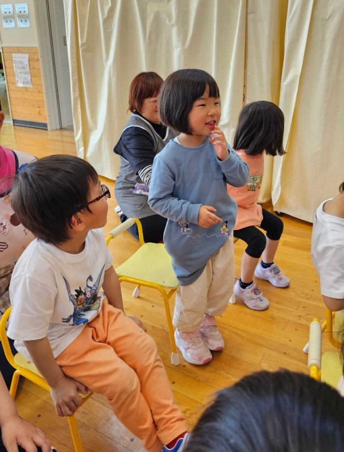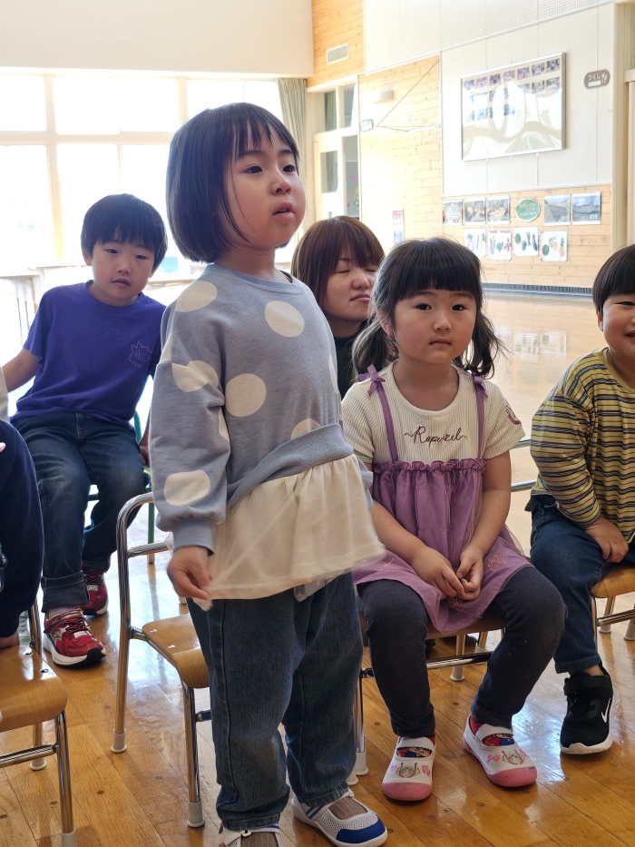 ドキドキしながらも答えることができる いちご組  安心して自分を出せるようになってきたのかな?