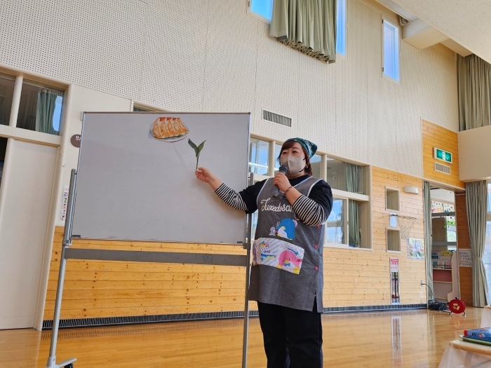 A先生が講師として登場☆彡 行者ニンニクを作った餃子『ギョージャギョーザ』を教えてくれました