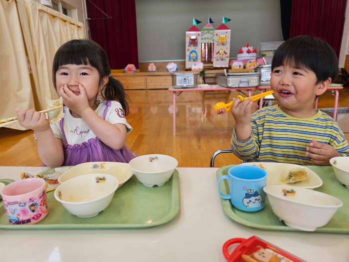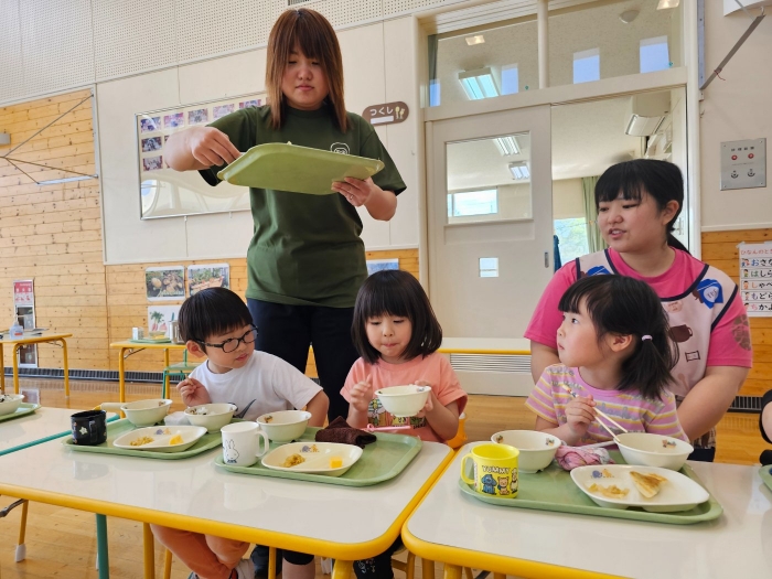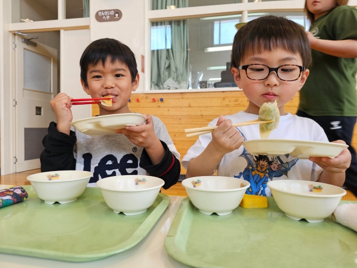 ジュワー!といい音、いい匂いを漂い 「はやく食べたーい!」と子ども達