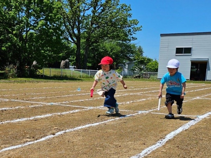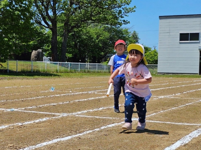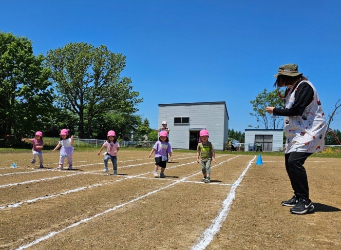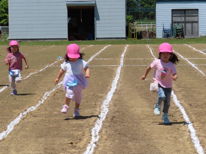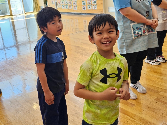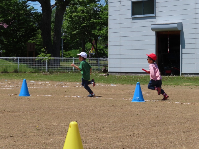 クラス時間後は、たけのこ組&つくし組はリレー、いちご組はかけっこをしました。友達と一緒に体を動かす心地よさを味わいながら、運動会に向けての活動に張り切っています。