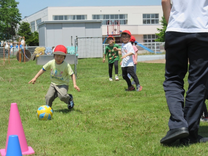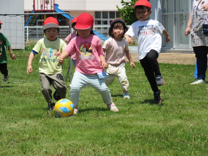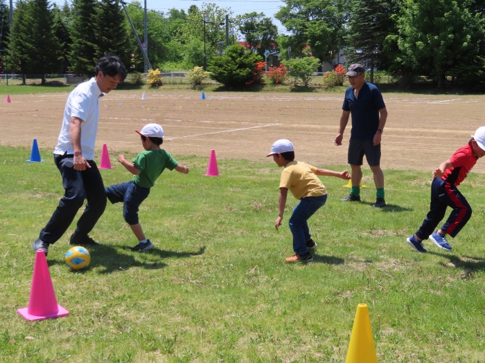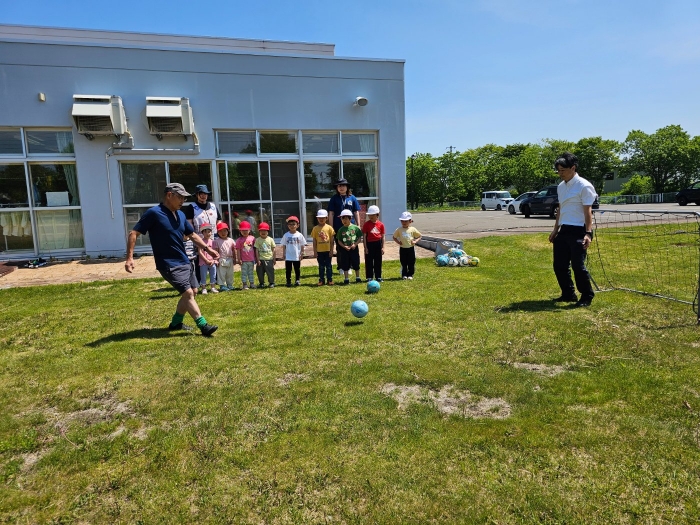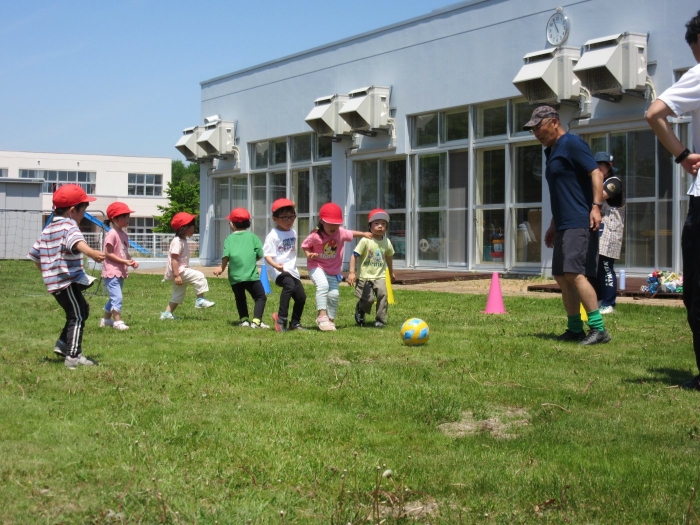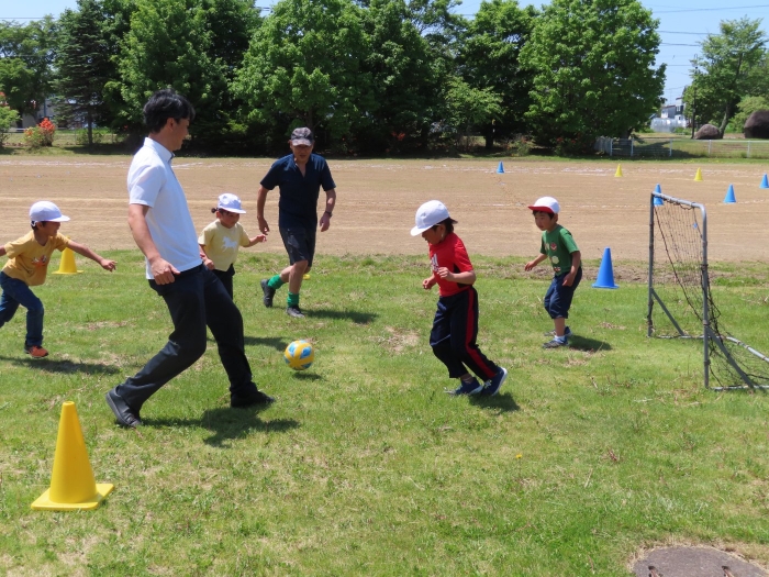 今年度も『NFA 根室地区サッカー協会』事務局長よりお声掛けをいただき、『サッカー教室』を開催する運びとなりました。今年度は、年長組&年中組合同で6月~9月まで月2回実施する予定です。