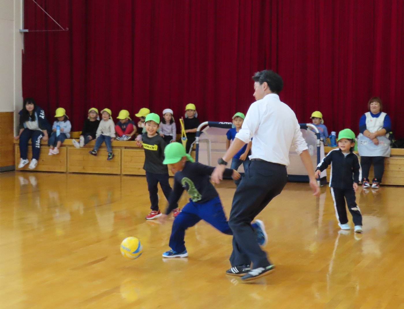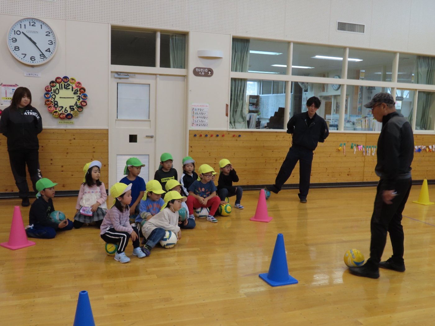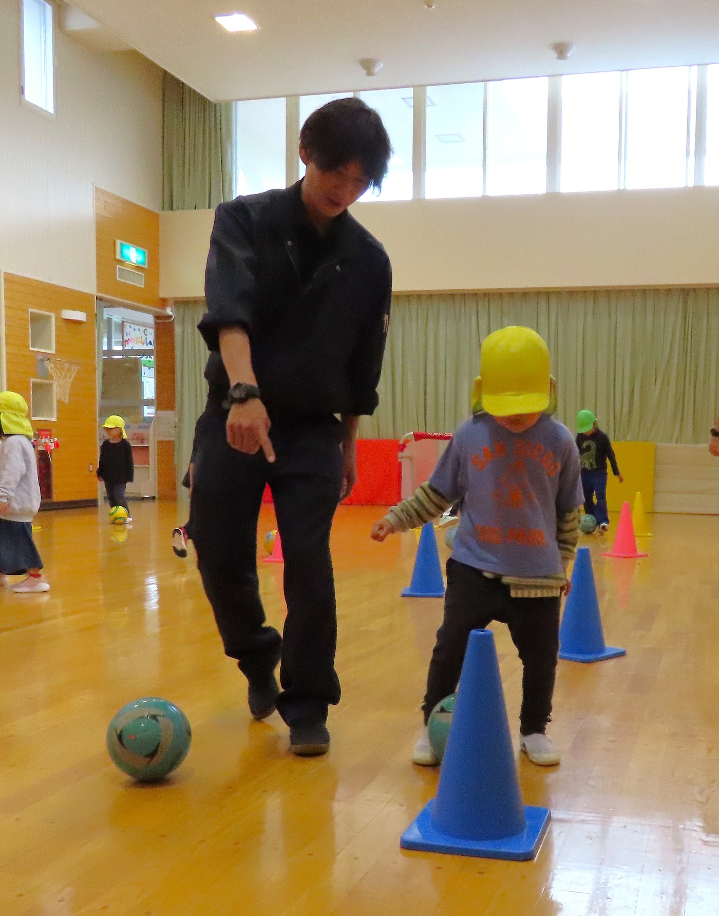 ヤル気をぐんぐん引き出す声掛けや指導方法で、すっかりサッカーが大好きになった子ども達。サッカーを通して体を動かすことの楽しさはもちろん、礼儀や態度、仲間意識など、スポーツマンとして大切なことも教えていただきました。サッカー教室で体験した学びを、これからの園生活の中で生かしていきたいと思います。