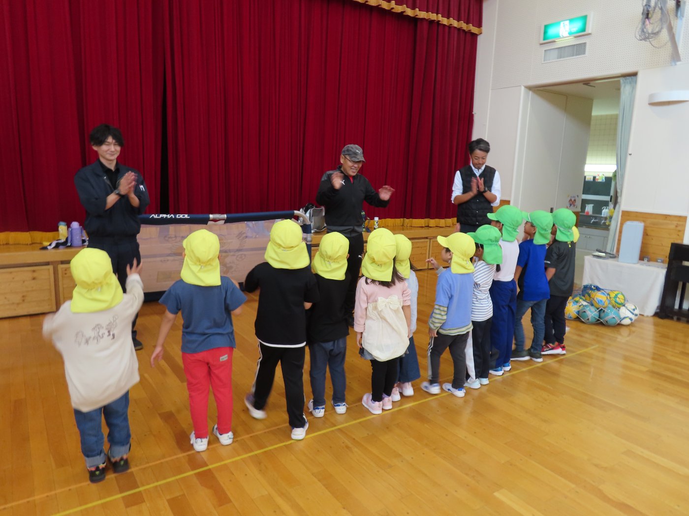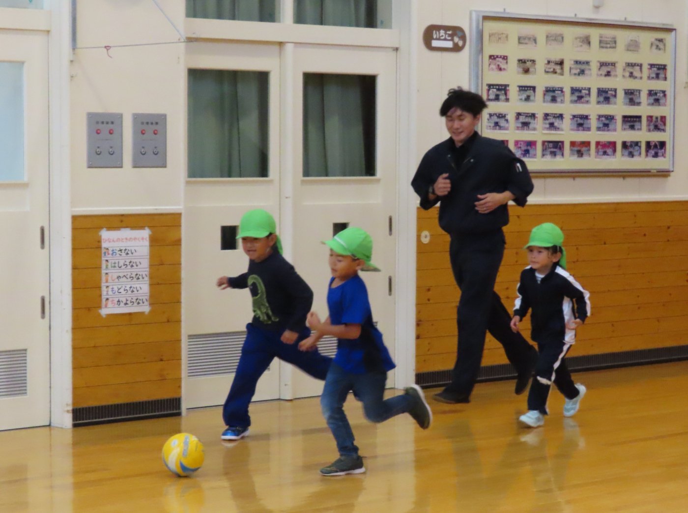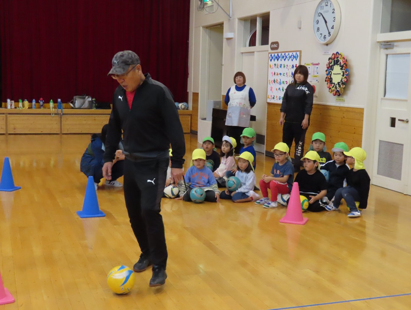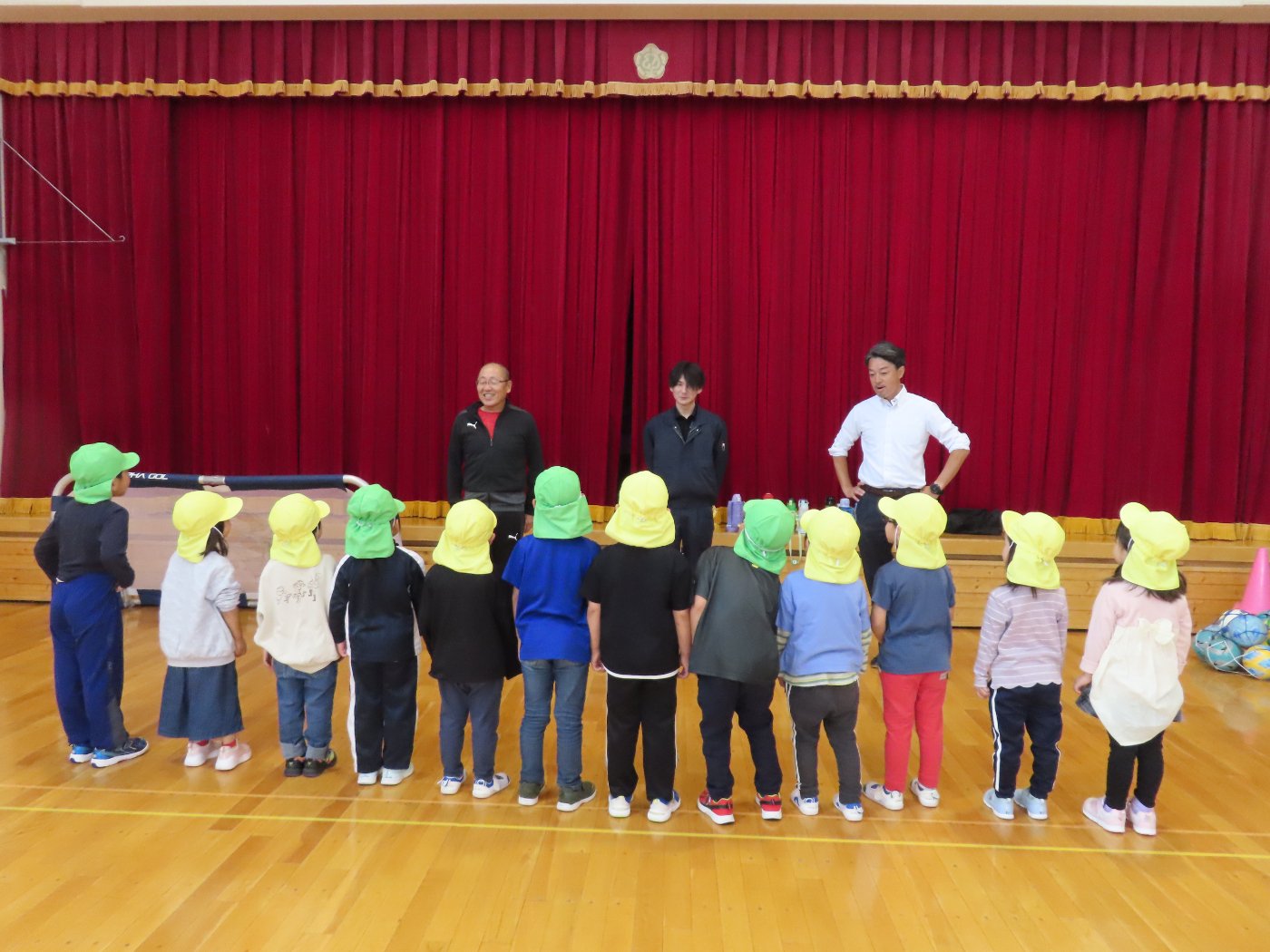 ヤル気をぐんぐん引き出す声掛けや指導方法で、すっかりサッカーが大好きになった子ども達。サッカーを通して体を動かすことの楽しさはもちろん、礼儀や態度、仲間意識など、スポーツマンとして大切なことも教えていただきました。サッカー教室で体験した学びを、これからの園生活の中で生かしていきたいと思います。
