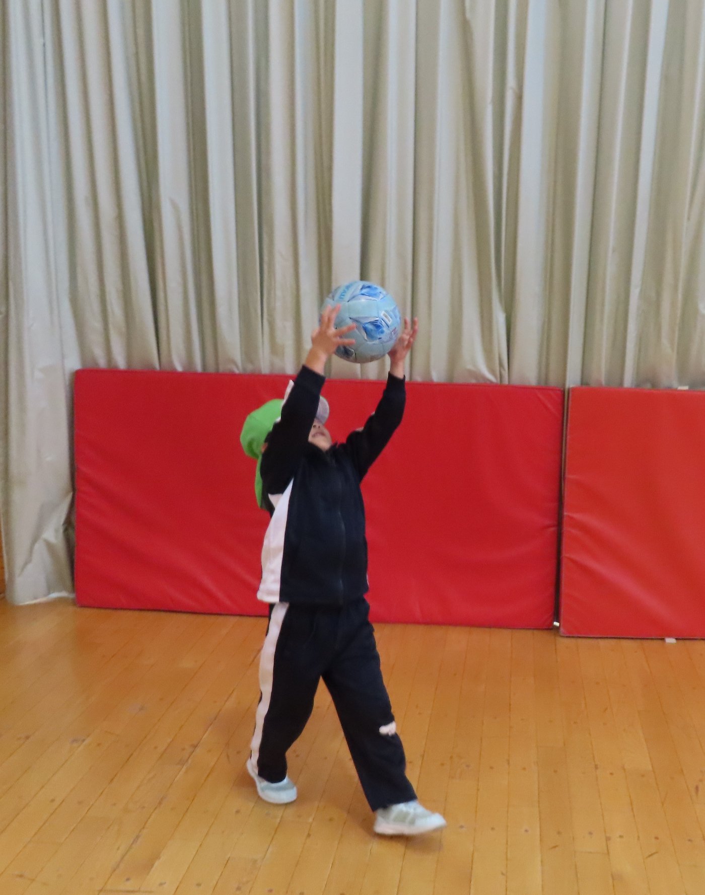 ボールとの距離感を ~ボールキャッチ、ハンドドリブル、ステップでボールタッチ