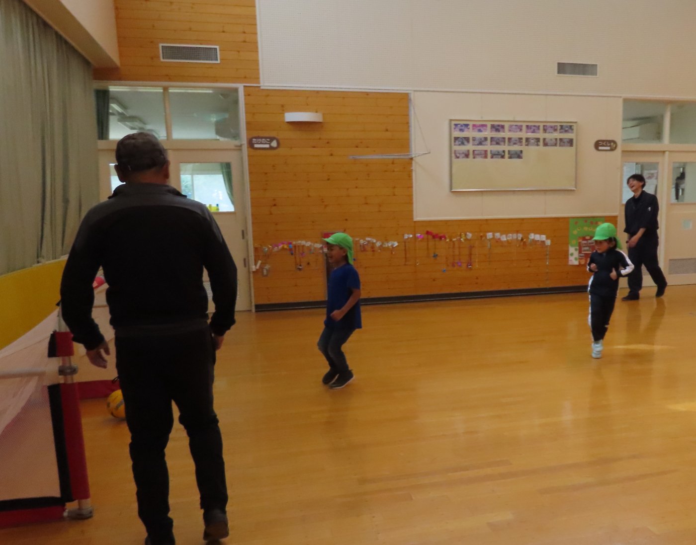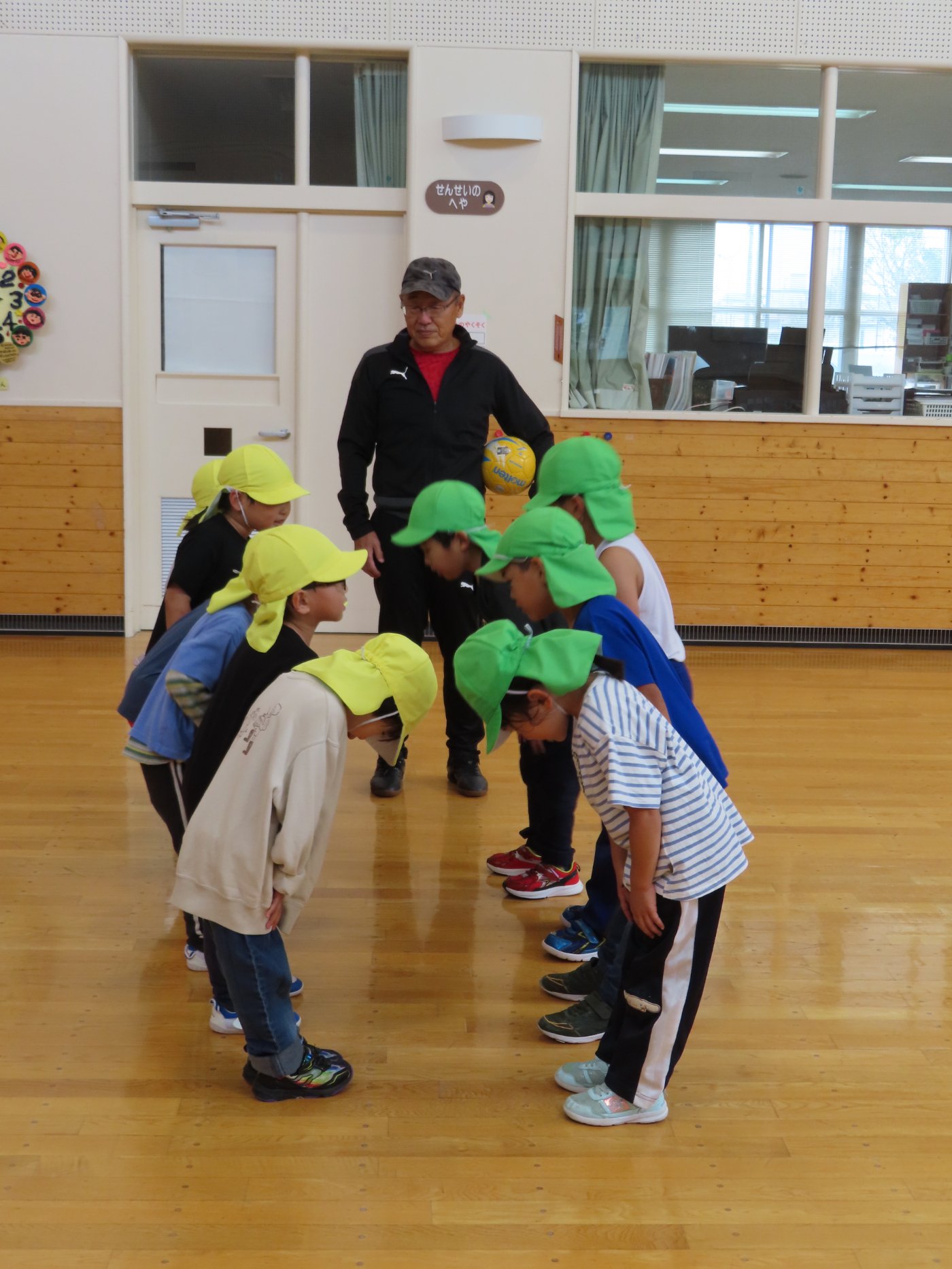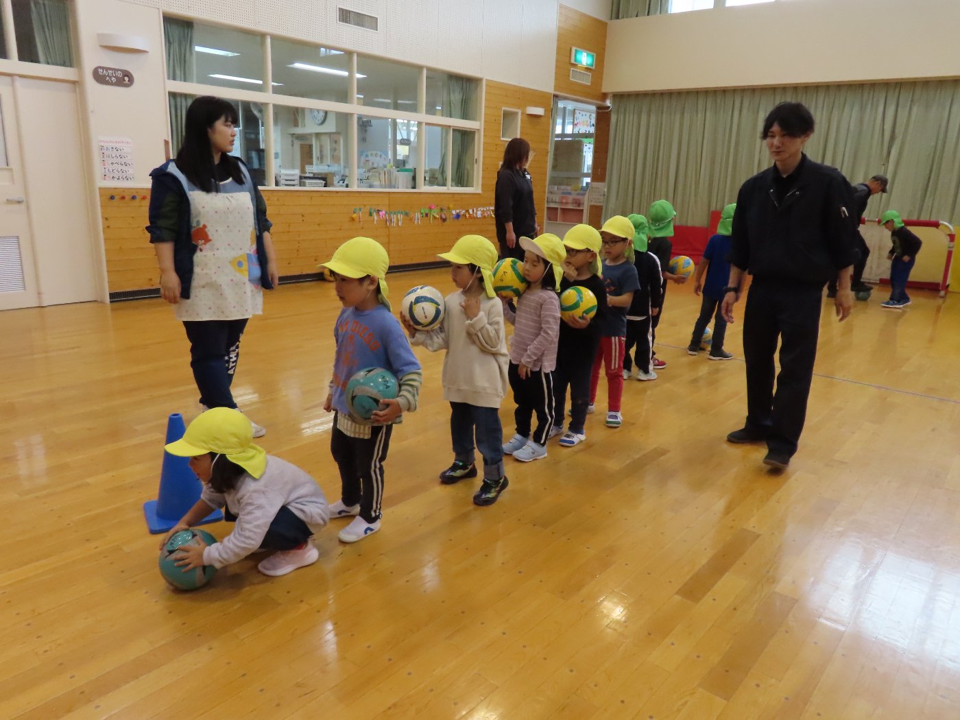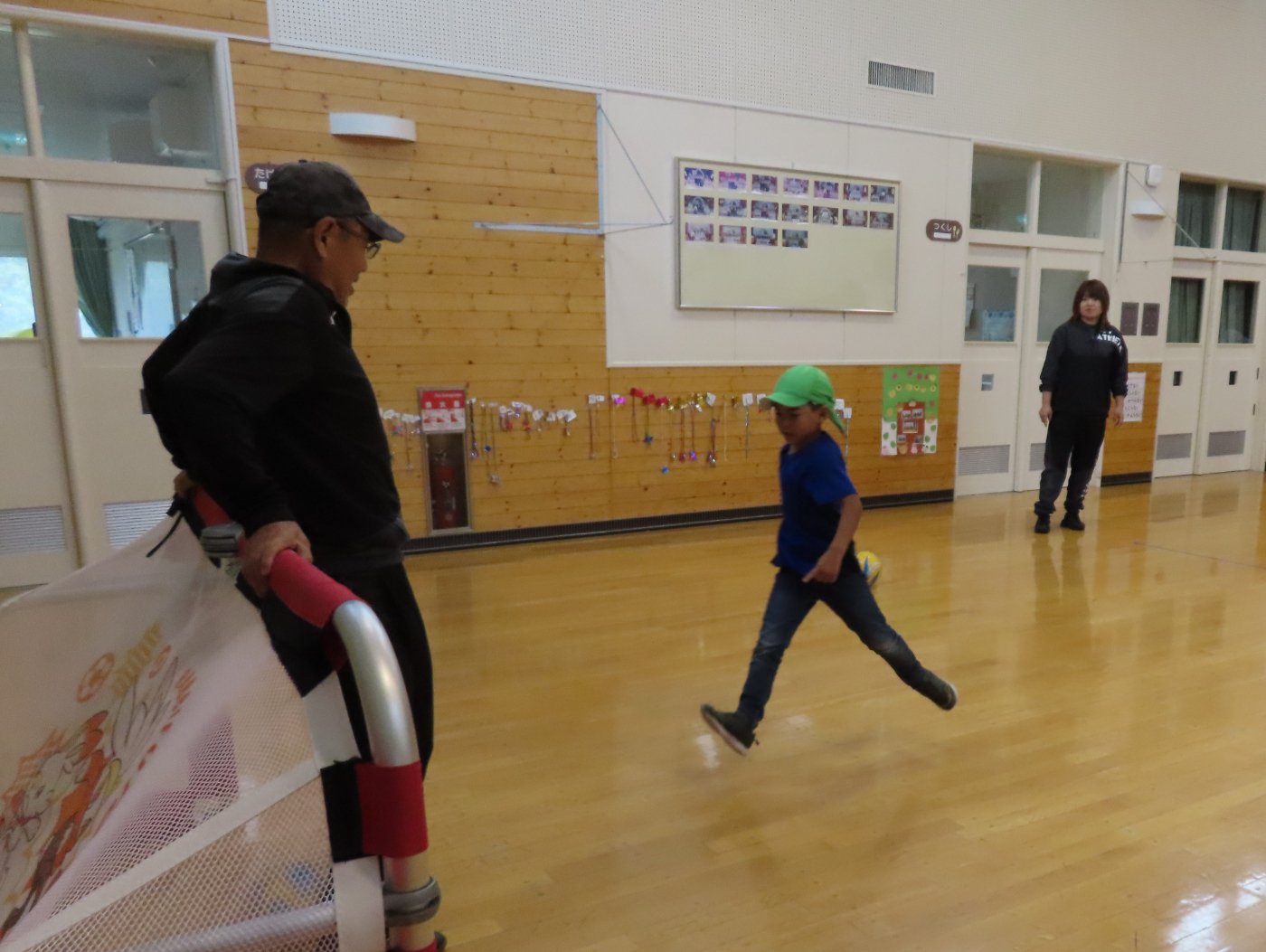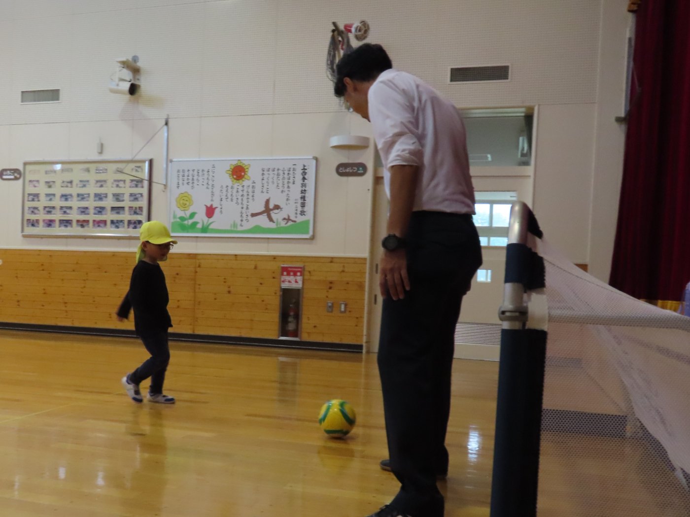 『NFA 根室地区サッカー協会』主催『サッカー教室』が、本日で最終回を迎えました。今年度は、年長たけのこ組&年中つくし組合同で6月から計8回実施しました。予定では9月末が最終回でしたが、「まだサッカーをやりたい!」「最後は、3人の先生とみんなでサッカーをしたい!」との子ども達の声を伝えたところ、快くお引き受けいただきました。これまでお世話になった通称『ユウちゃん先生』『モギちゃん先生』『ユウト先生』と、3名のコーチが勢揃いで、これまで以上に意欲満々!大興奮の子ども達でした。