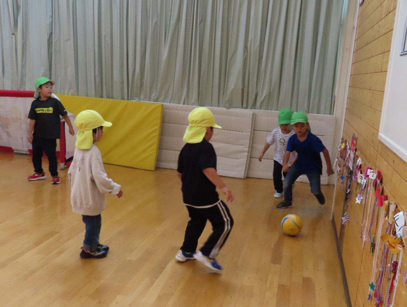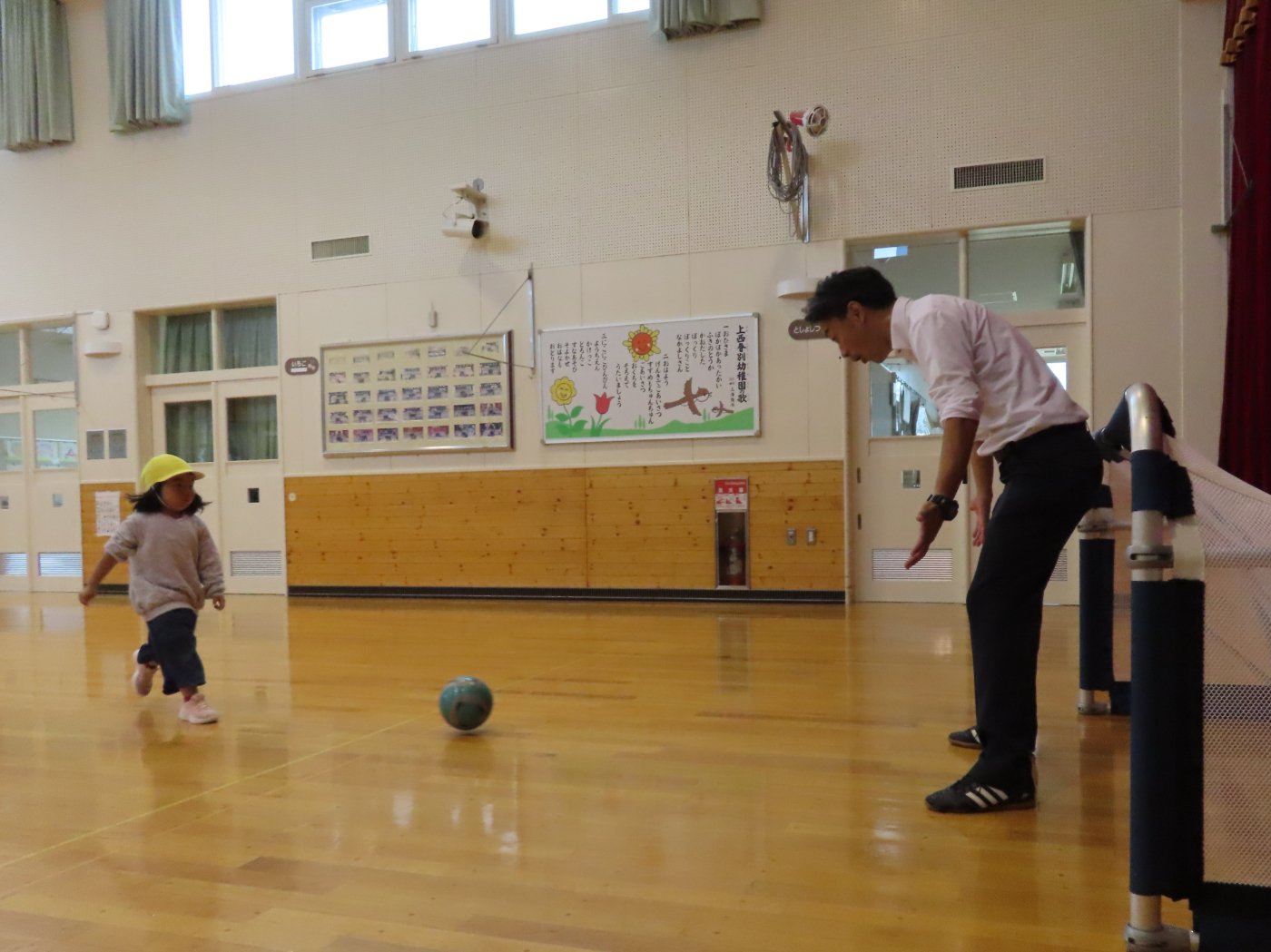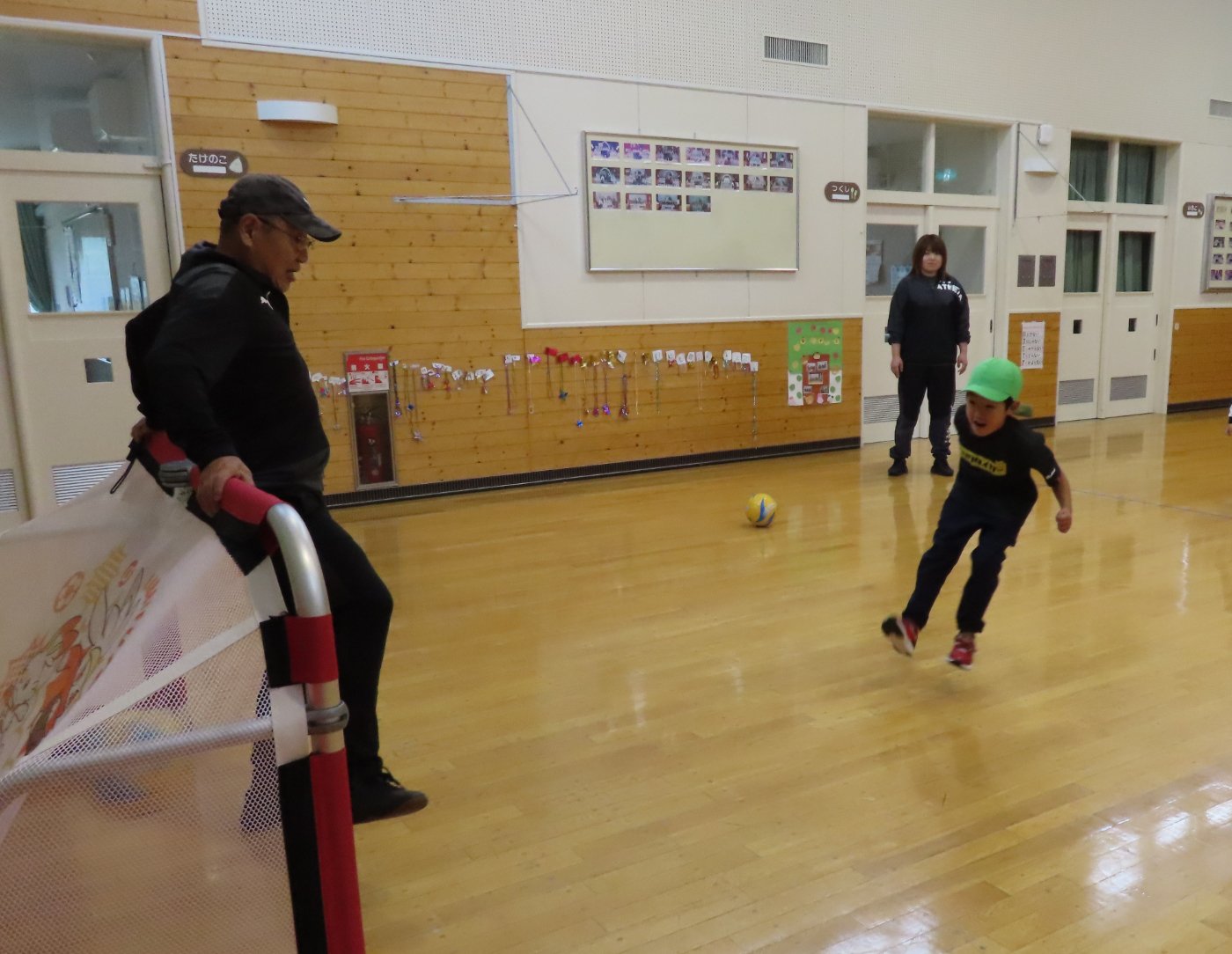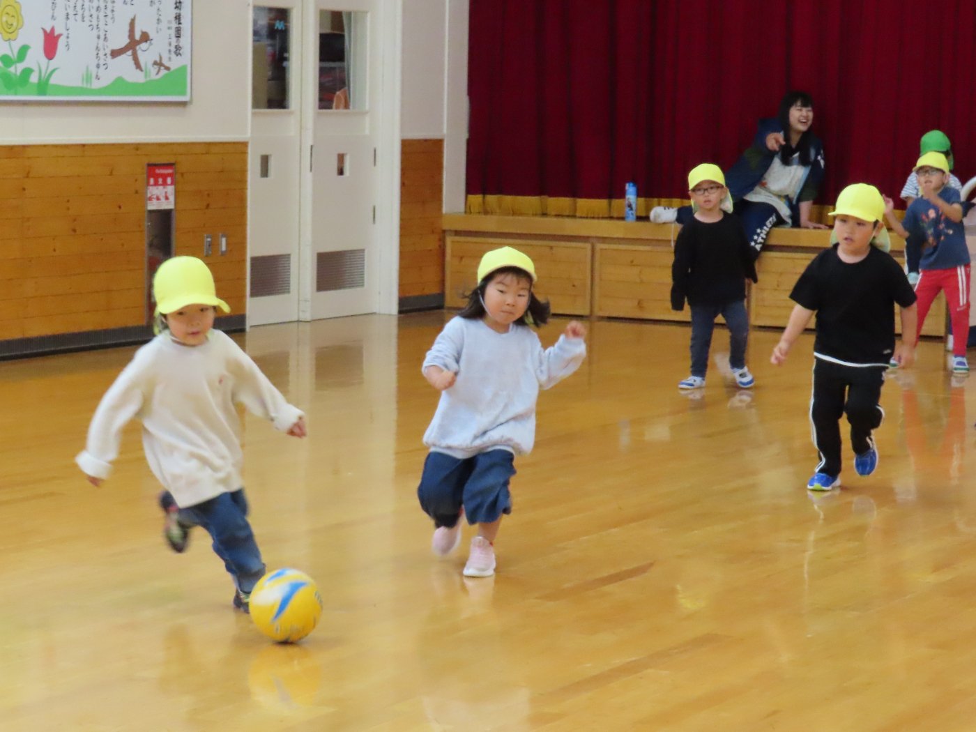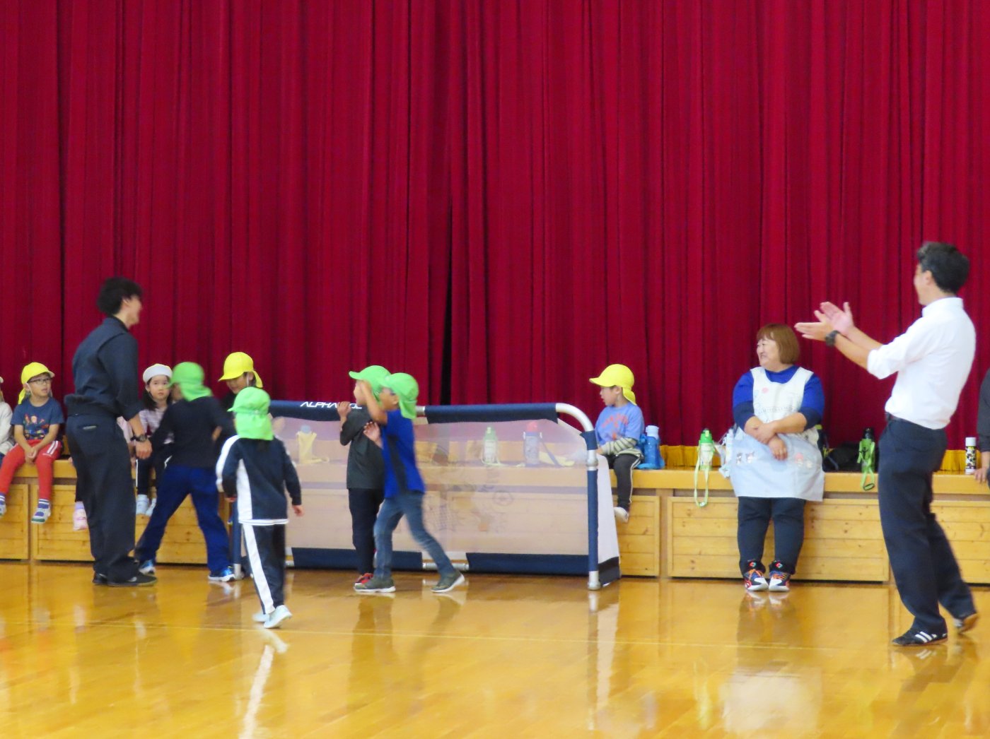 『NFA 根室地区サッカー協会』主催『サッカー教室』が、本日で最終回を迎えました。今年度は、年長たけのこ組&年中つくし組合同で6月から計8回実施しました。予定では9月末が最終回でしたが、「まだサッカーをやりたい!」「最後は、3人の先生とみんなでサッカーをしたい!」との子ども達の声を伝えたところ、快くお引き受けいただきました。これまでお世話になった通称『ユウちゃん先生』『モギちゃん先生』『ユウト先生』と、3名のコーチが勢揃いで、これまで以上に意欲満々!大興奮の子ども達でした。