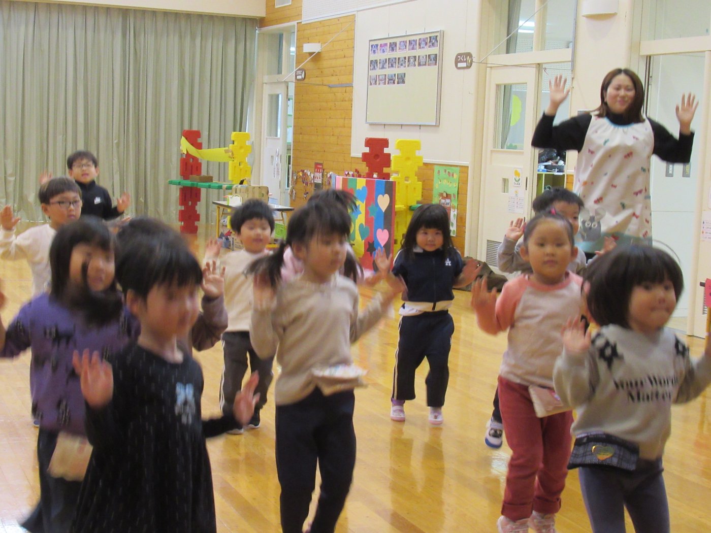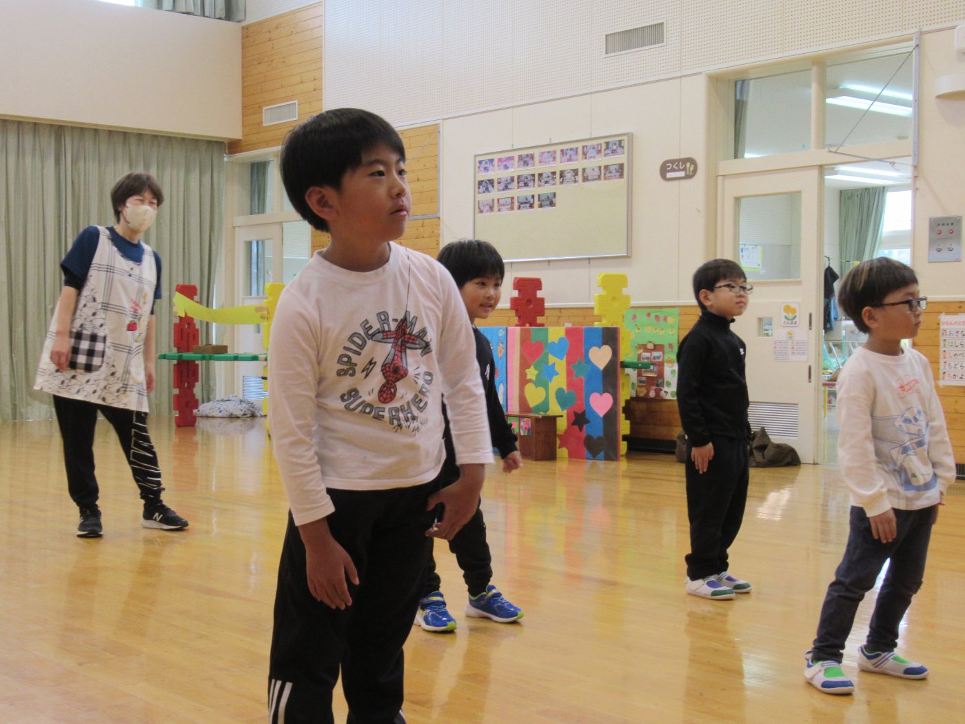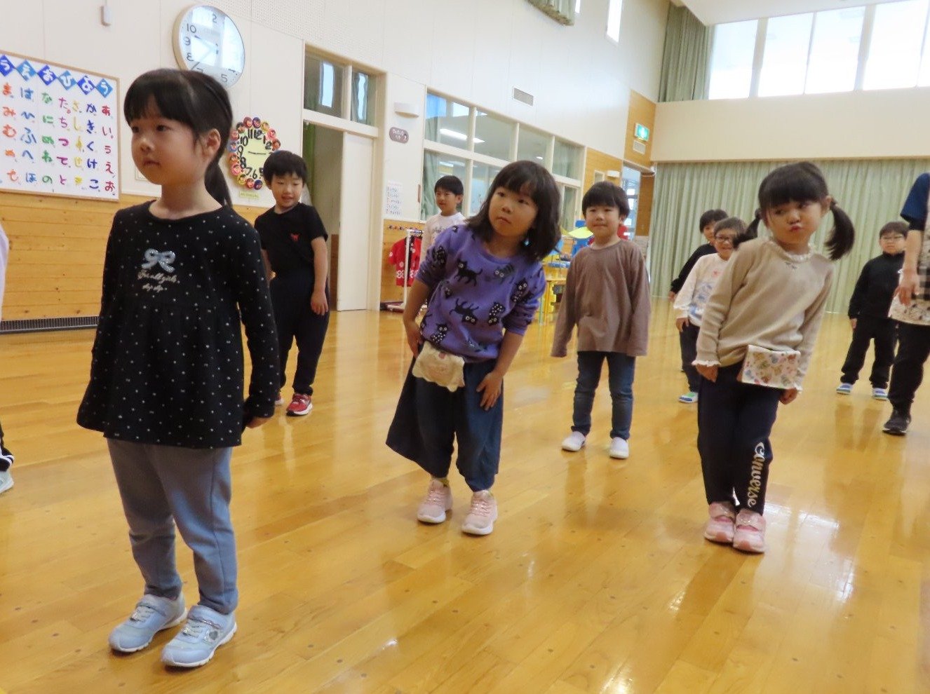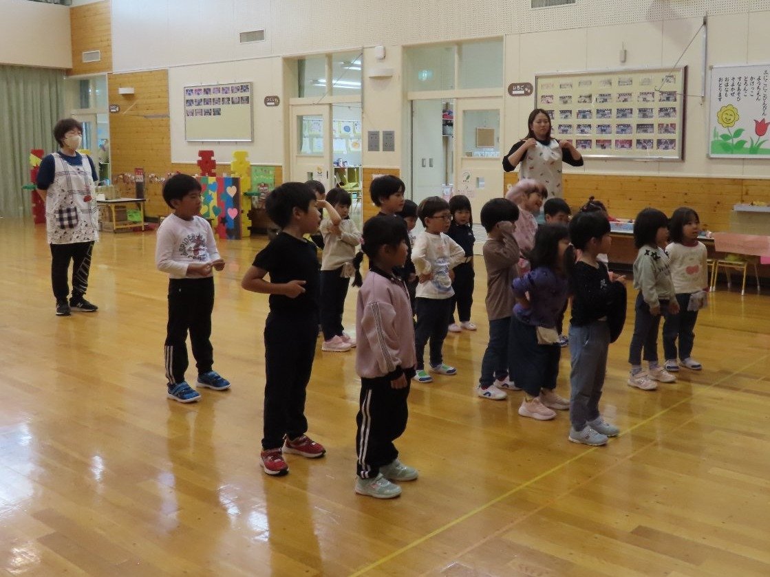 自園でも、学んできたことを子ども達に還元しようと『げんきっ子タイム』のように継続して取り組むことにしました。体の感覚を大切にするトレーニングで、正しい動きができるようになることが目的ではなく、どういう動きをすればいいのか考える時間、探っている過程が重要だそうです。