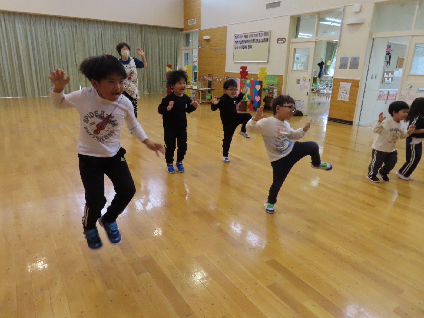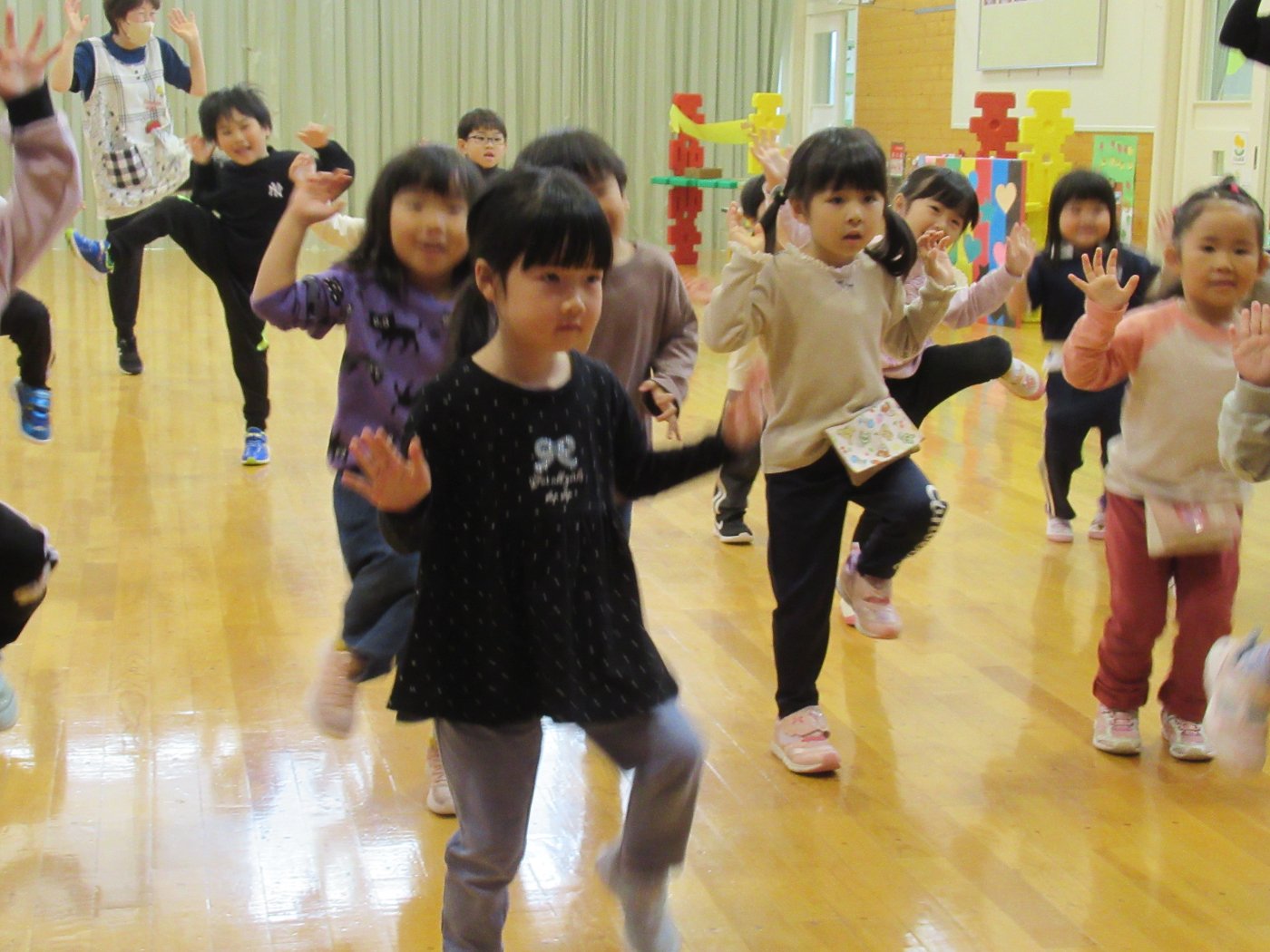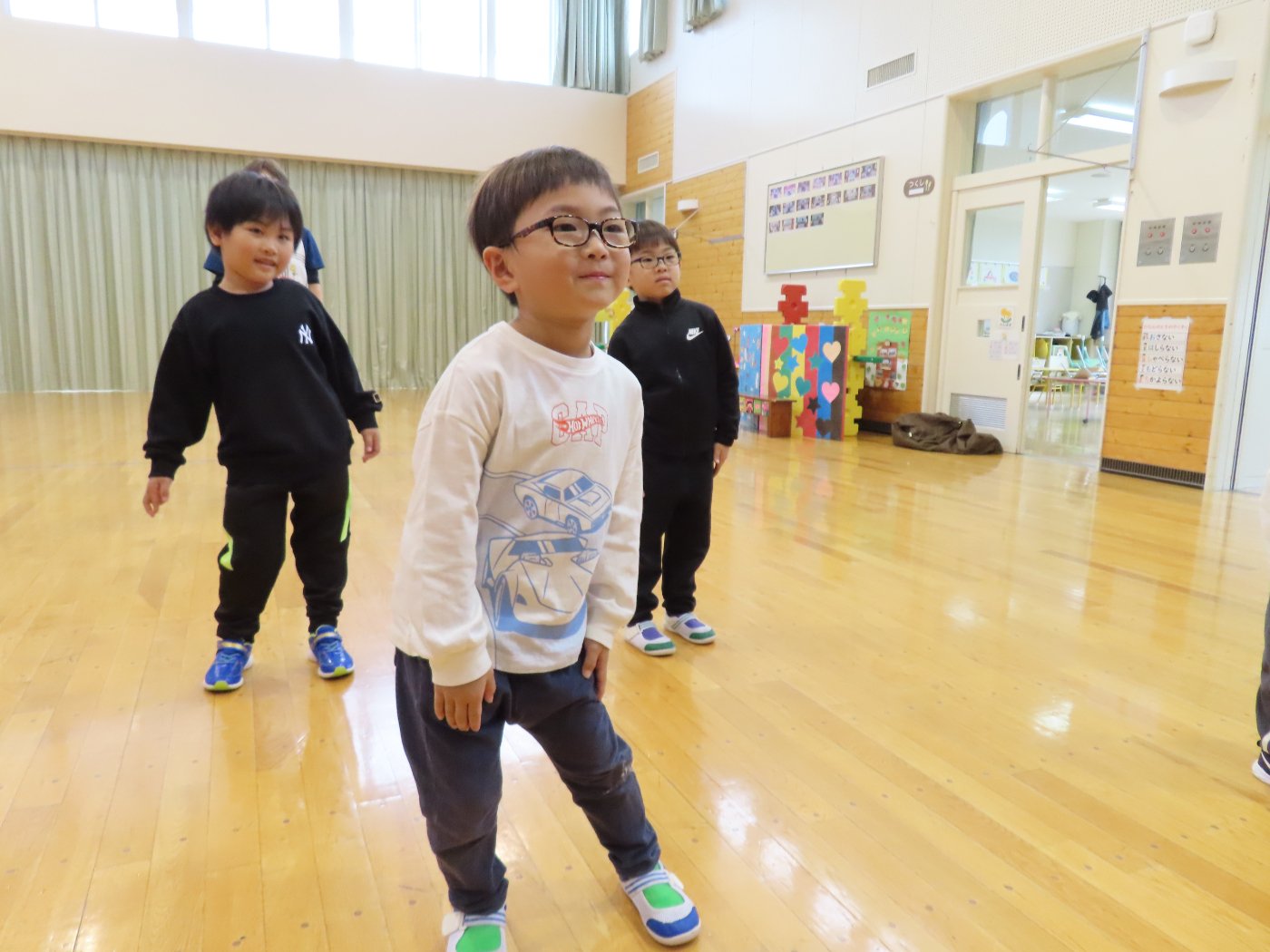 自園でも、学んできたことを子ども達に還元しようと『げんきっ子タイム』のように継続して取り組むことにしました。体の感覚を大切にするトレーニングで、正しい動きができるようになることが目的ではなく、どういう動きをすればいいのか考える時間、探っている過程が重要だそうです。