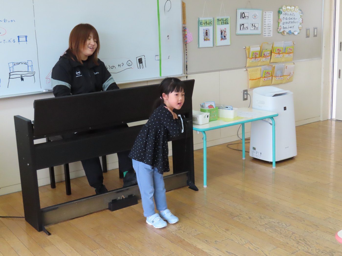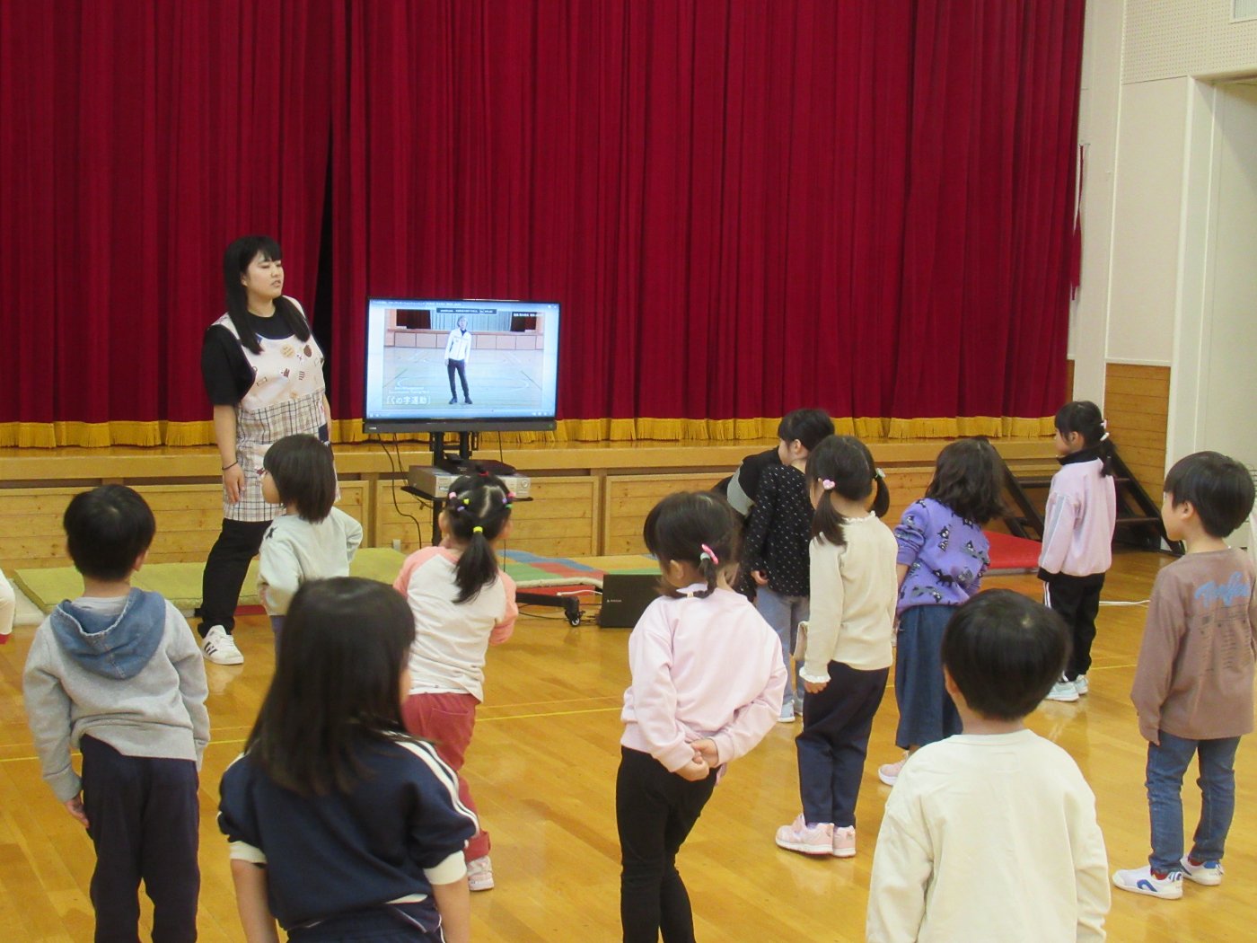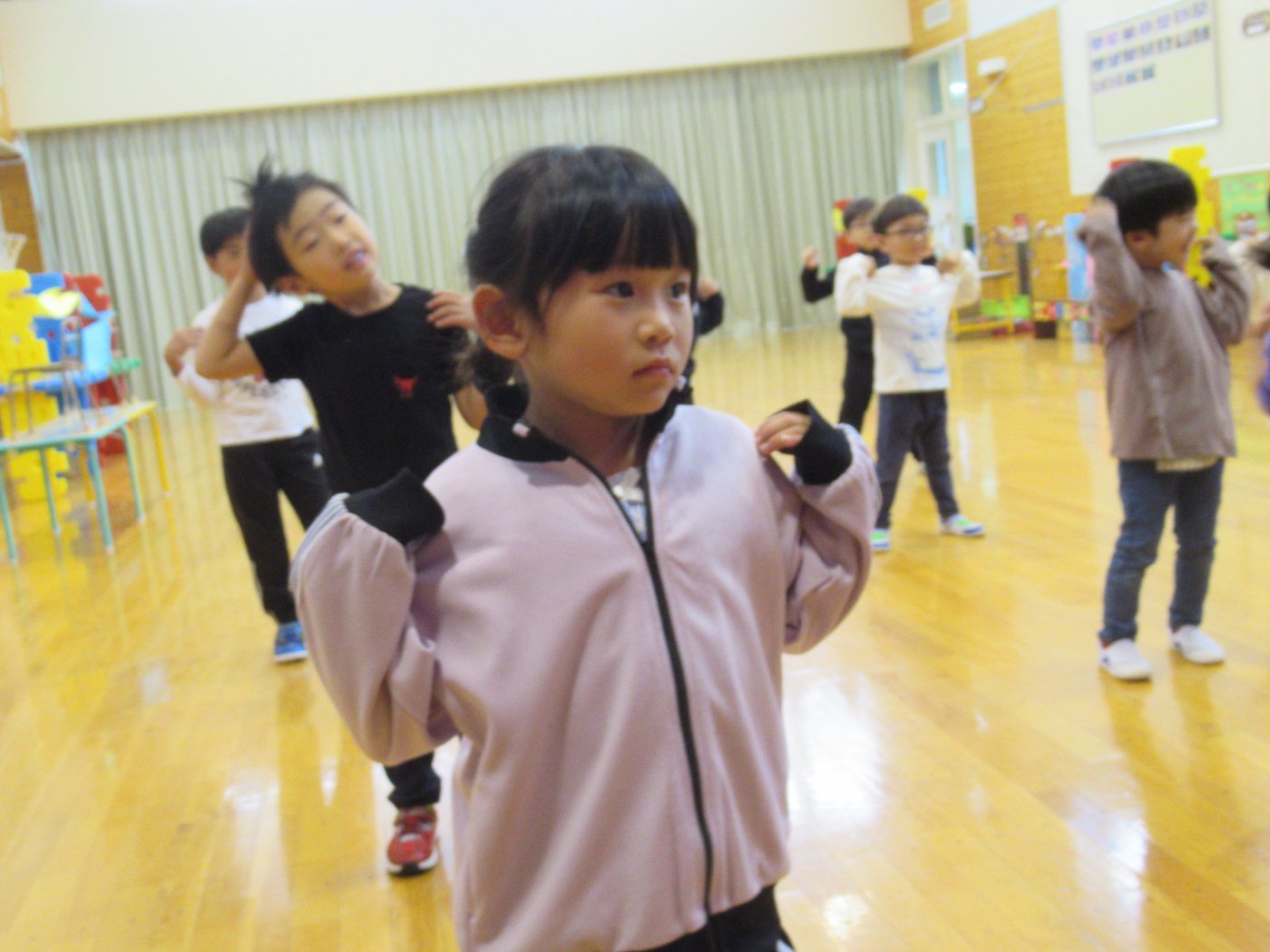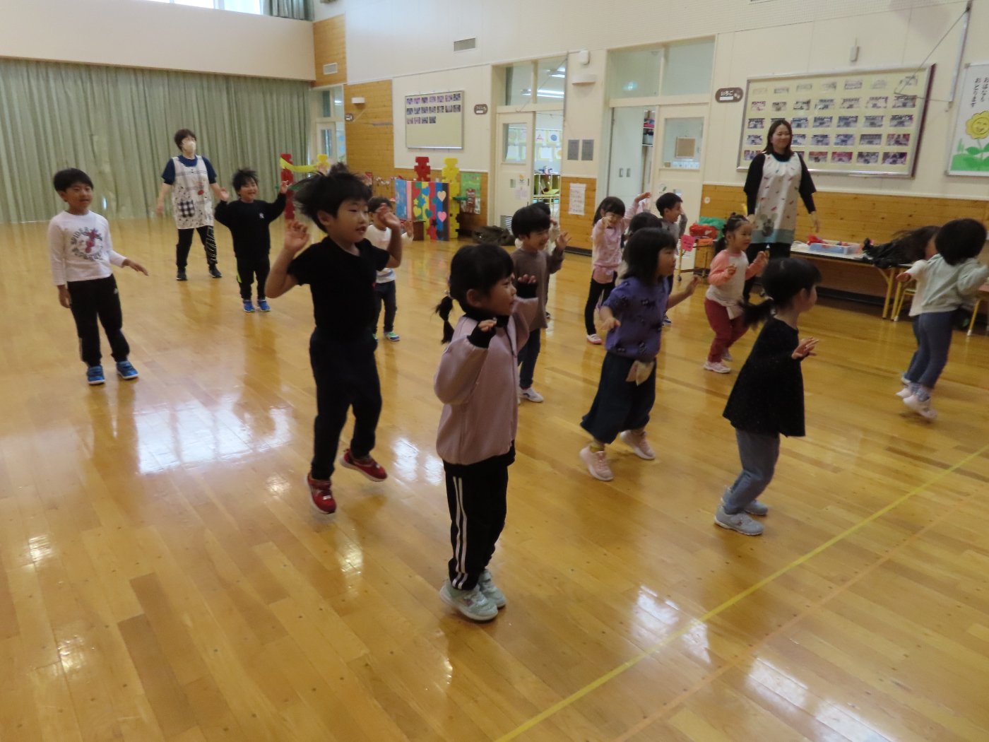 自園でも、学んできたことを子ども達に還元しようと『げんきっ子タイム』のように継続して取り組むことにしました。体の感覚を大切にするトレーニングで、正しい動きができるようになることが目的ではなく、どういう動きをすればいいのか考える時間、探っている過程が重要だそうです。