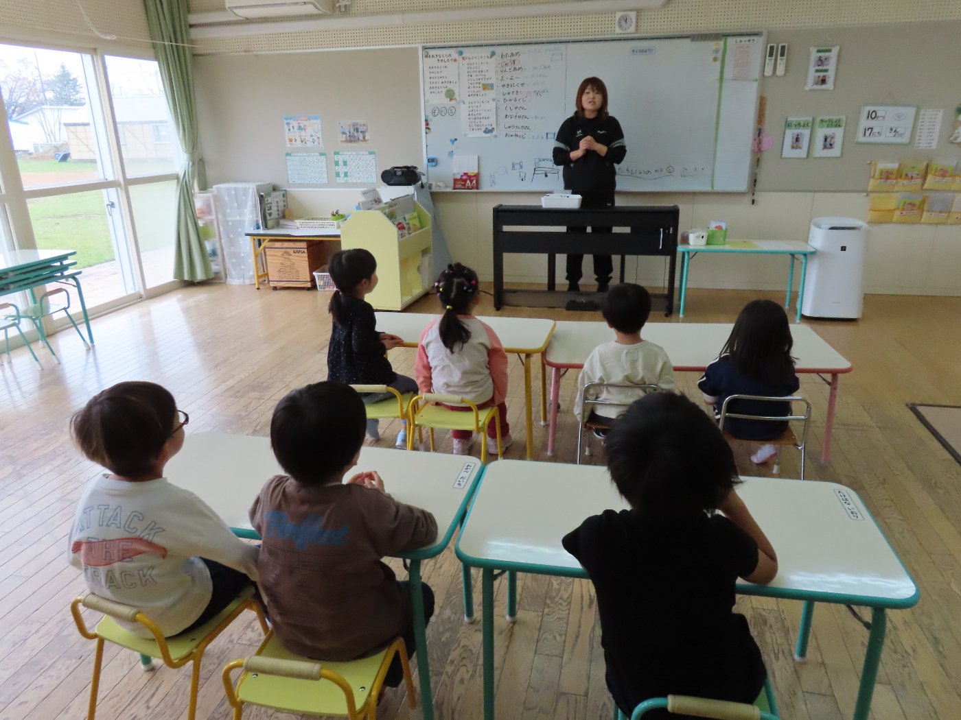 『みっくすDAY』の日は、『ひまわり組』『たんぽぽ組』『すずらん組』と、縦割りで3つのクラスに分かれます。この組名は、昨年度まで交流をし合い、惜しまれつつ閉園となった中西別幼稚園の組名から命名しました。月1~2回を目安に、金曜日に行う予定です。