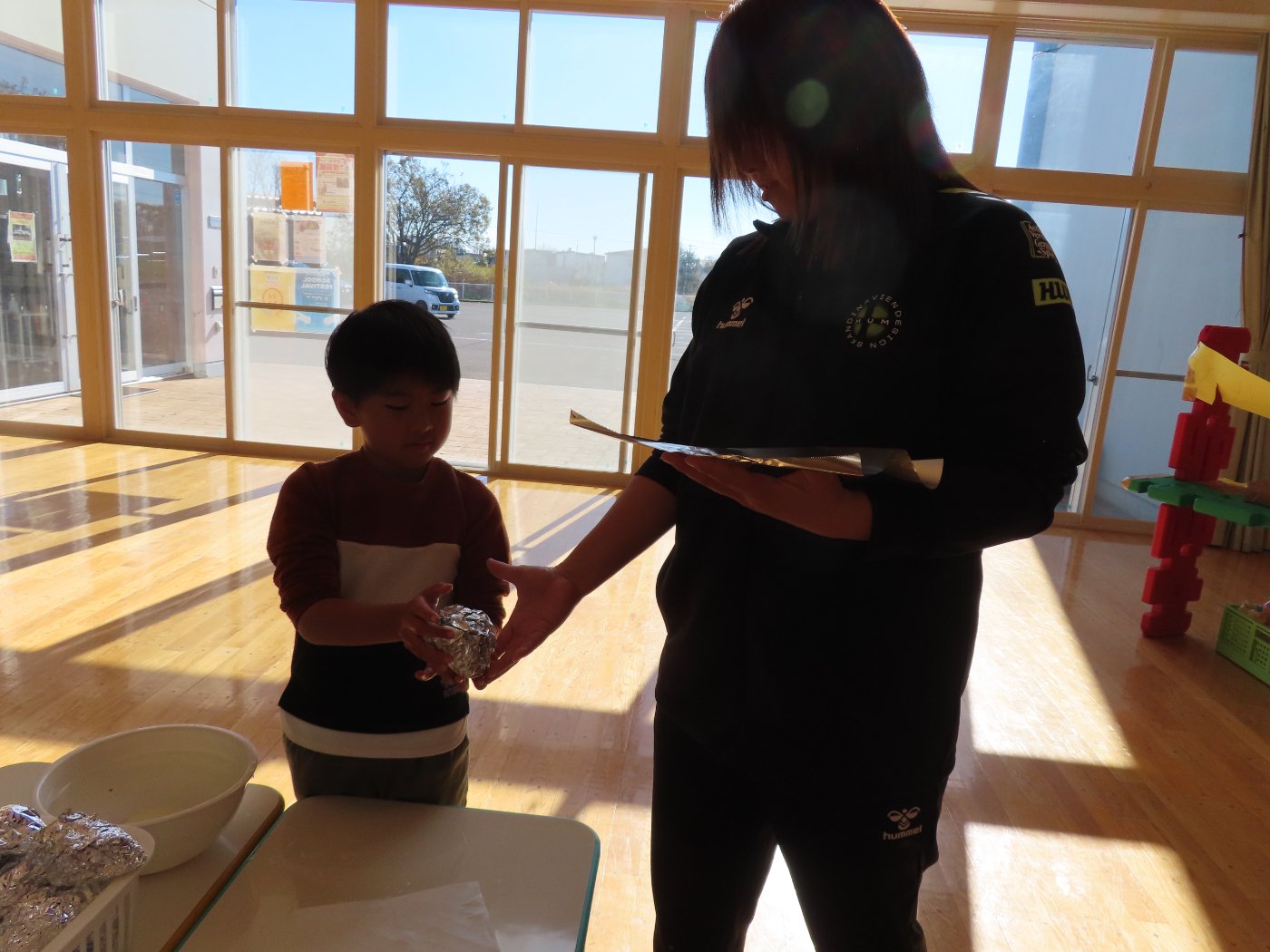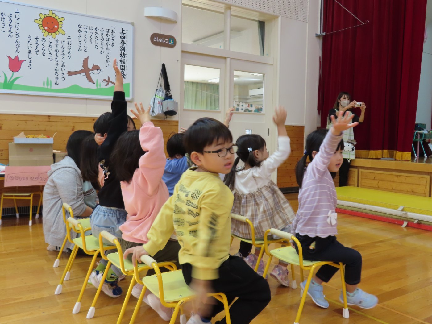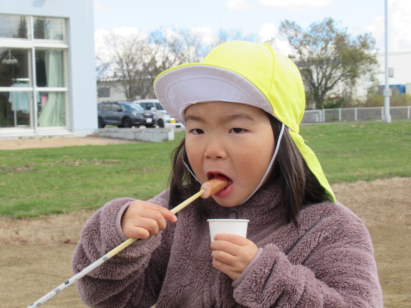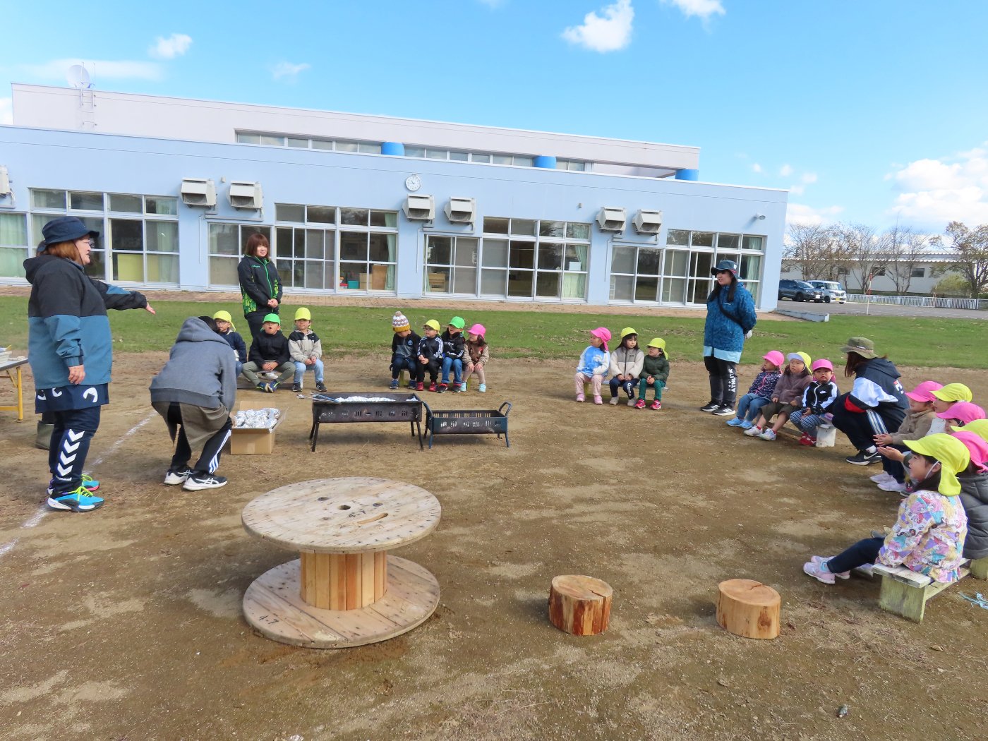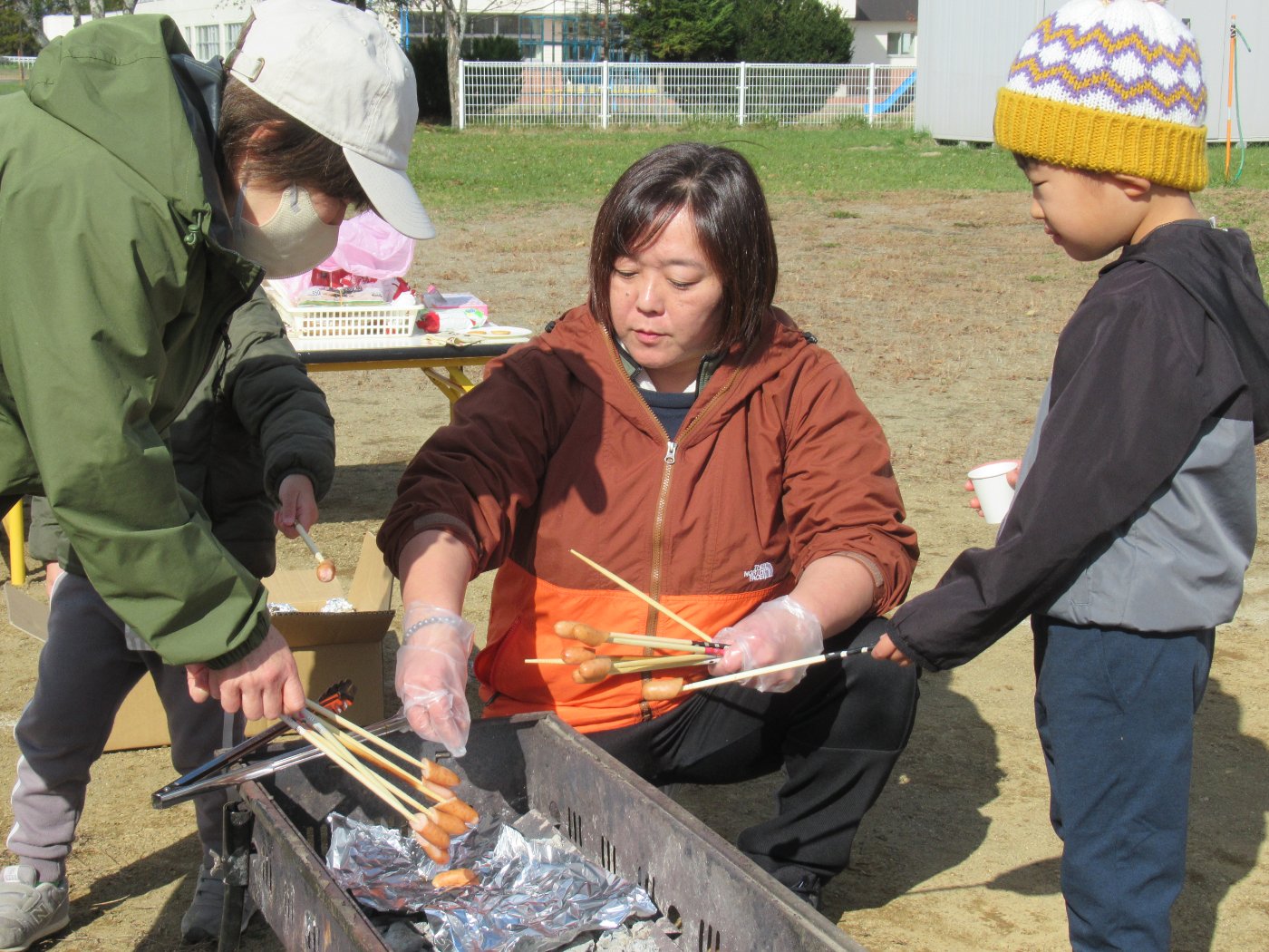 10月誕生会のお楽しみは、毎年恒例!『焼き芋』を行いました。朝遊びの時間は、美味しい焼き芋のためにサツマイモのホイル包みに精を出しました。このサツマイモはもちろん!たけのこ組が丹精込めて育てた上西春別幼稚園産です。たけのこ組は、炭火の,熱風と格闘しながら、包んだサツマイモを投入するのにもチャレンジしました。サツマイモの他にも、マシュマロ、ウィンナー、収穫カボチャ、チーズ(A先生の旦那様が差し入れてくださいました♫)も炭火焼に! 熱々ほくほくのうちにみんなで味わい、それはそれは幸せそうに頬張っていた子ども達です。