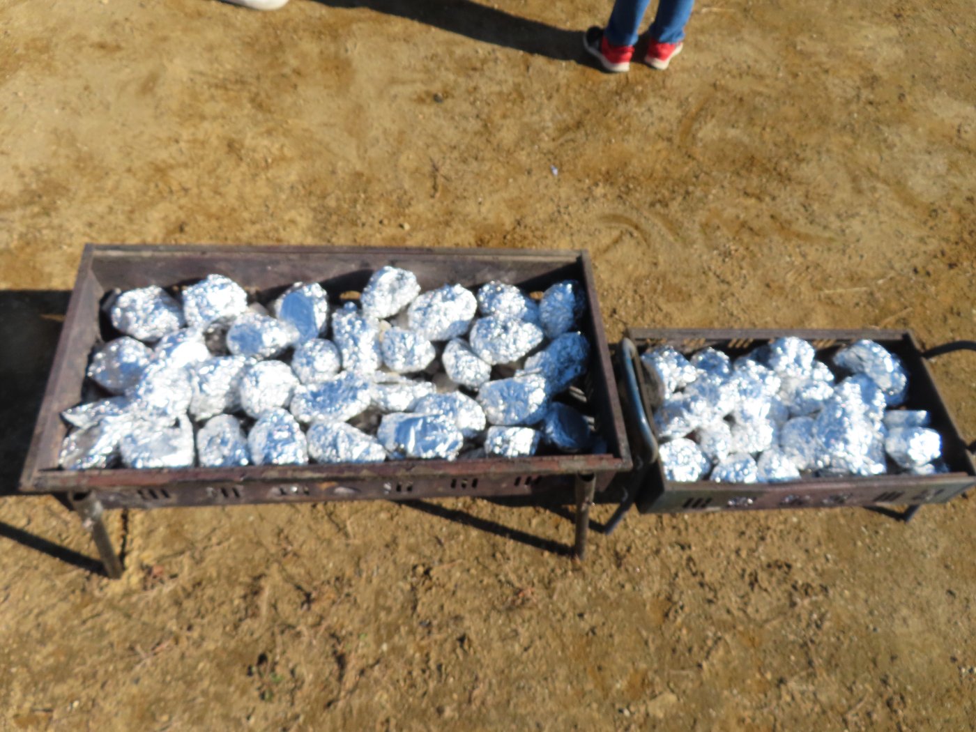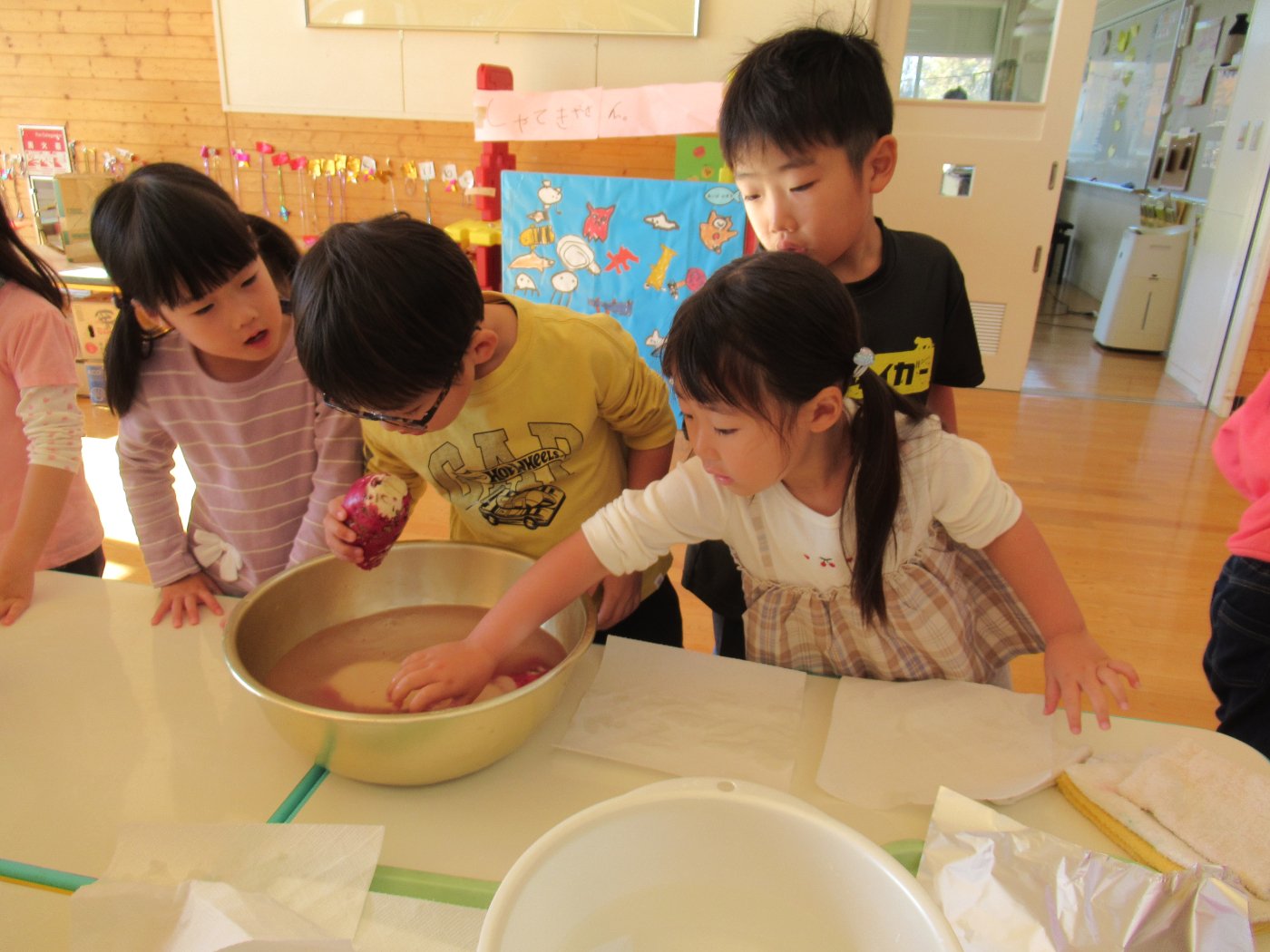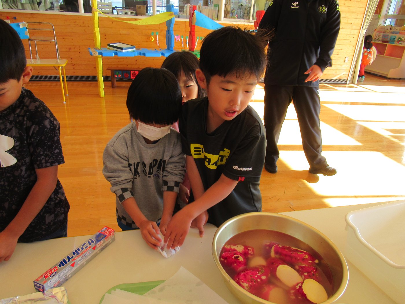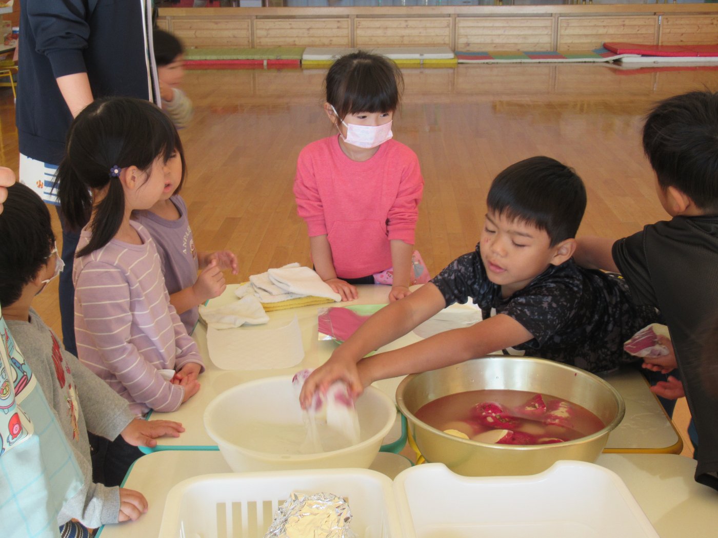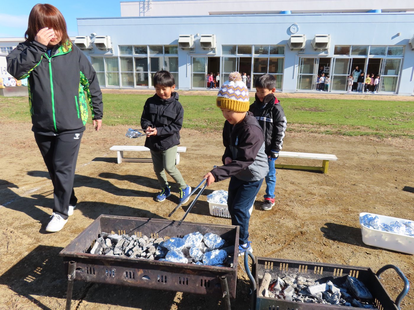 10月誕生会のお楽しみは、毎年恒例!『焼き芋』を行いました。朝遊びの時間は、美味しい焼き芋のためにサツマイモのホイル包みに精を出しました。このサツマイモはもちろん!たけのこ組が丹精込めて育てた上西春別幼稚園産です。たけのこ組は、炭火の,熱風と格闘しながら、包んだサツマイモを投入するのにもチャレンジしました。サツマイモの他にも、マシュマロ、ウィンナー、収穫カボチャ、チーズ(A先生の旦那様が差し入れてくださいました♫)も炭火焼に! 熱々ほくほくのうちにみんなで味わい、それはそれは幸せそうに頬張っていた子ども達です。
