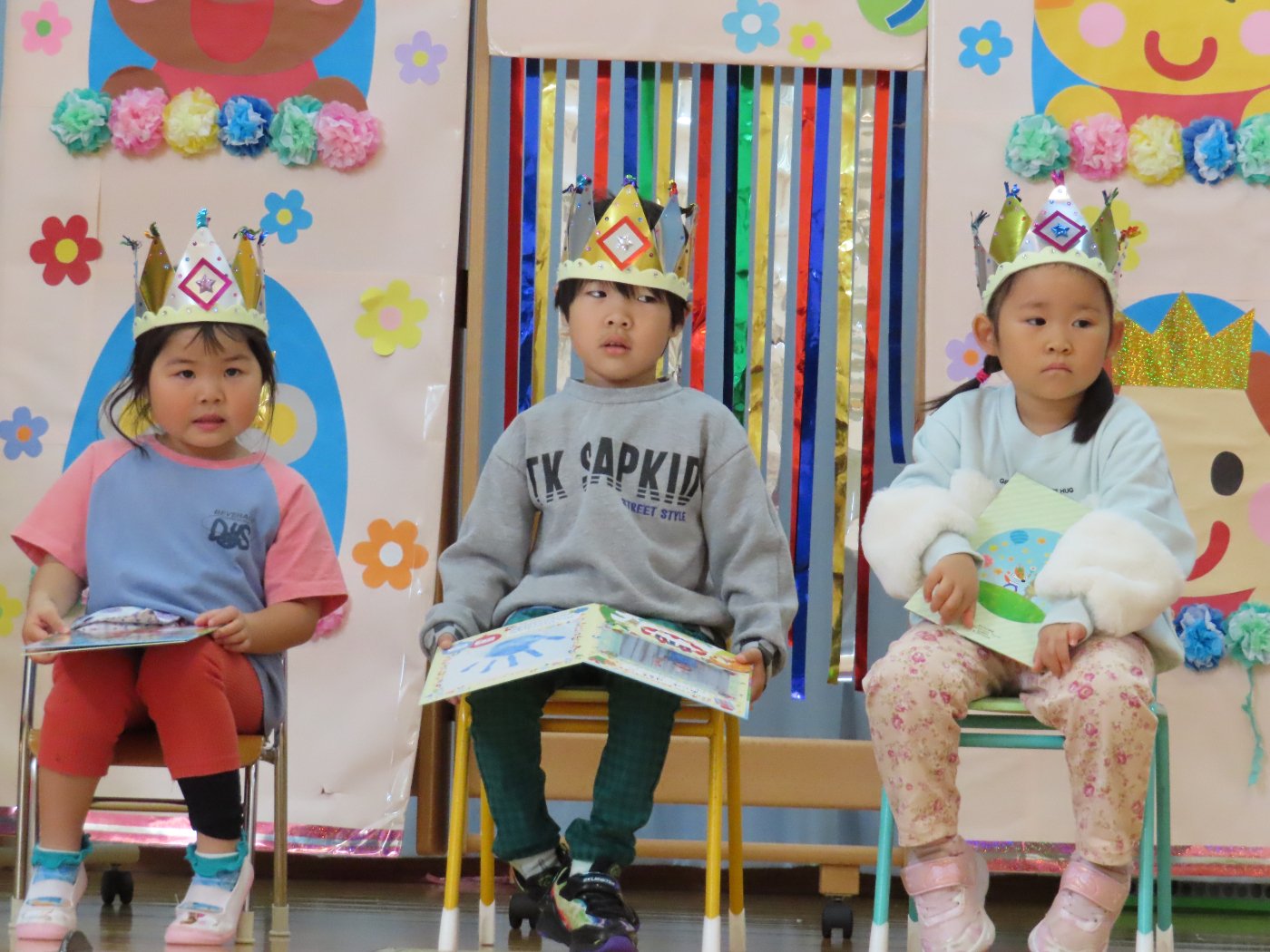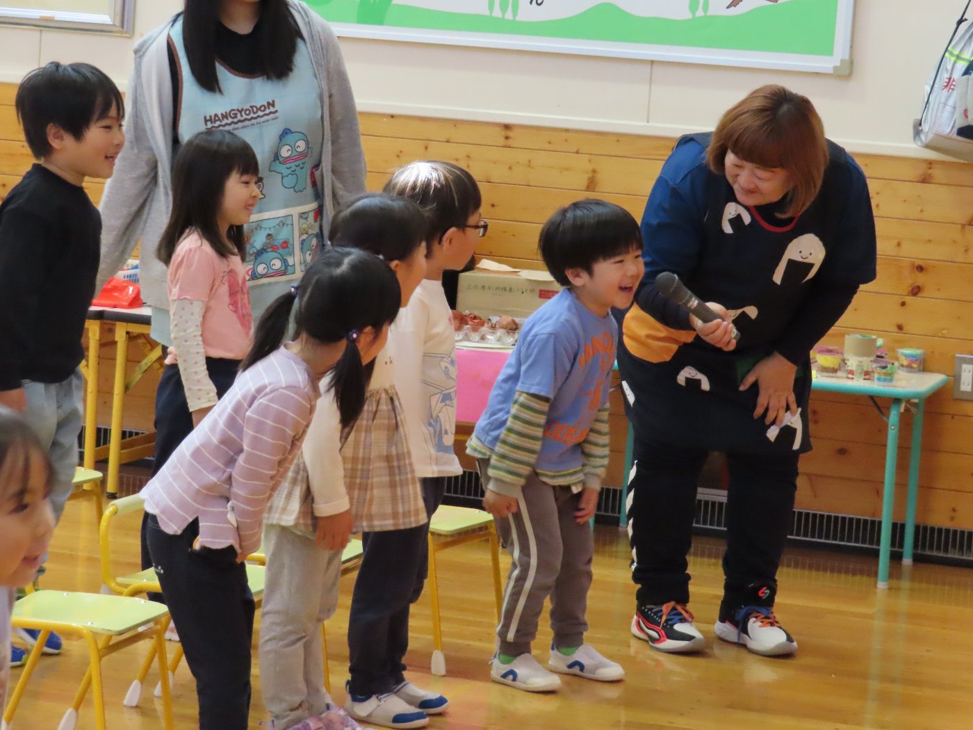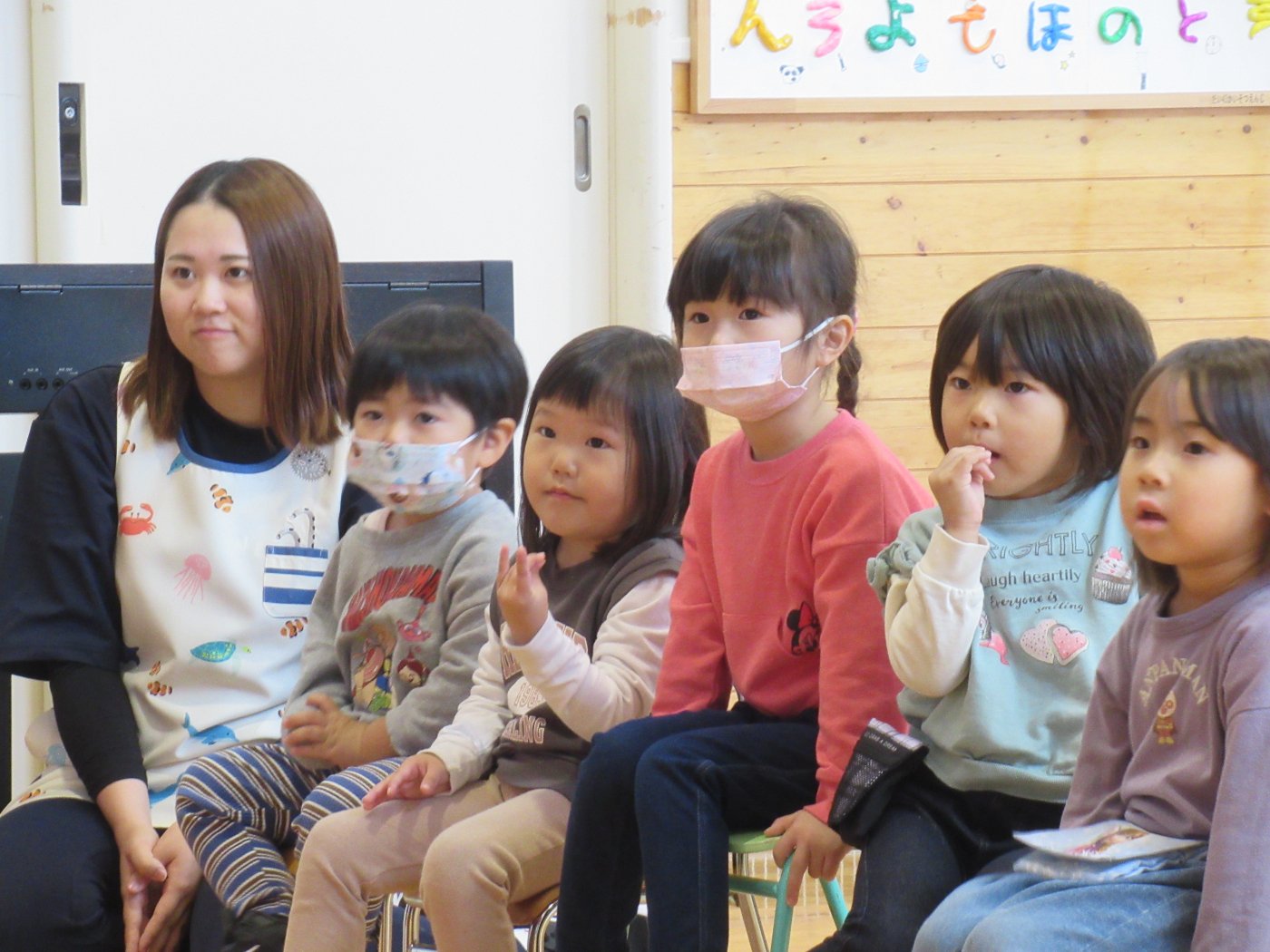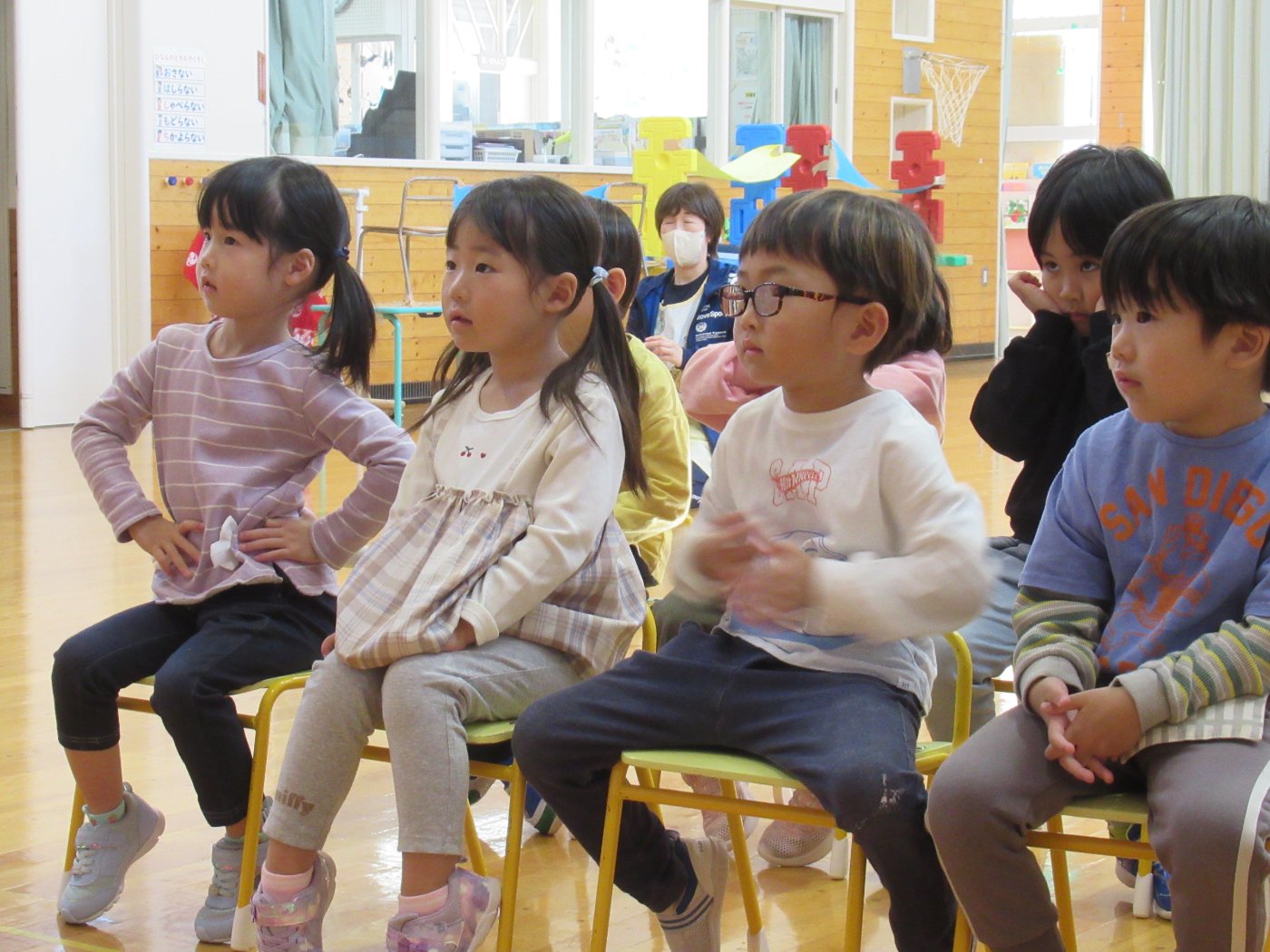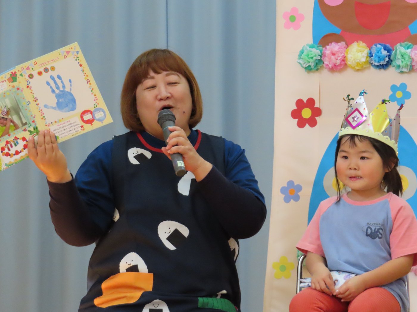 今日は、10月生まれの『誕生会』☆彡つくし組1名 、いちご組2名の友達のお祝いをしました。初体験の誕生会に嬉し恥ずかしそうないちご組の誕生児、待ちわびていた誕生会に ウキウキしていたつくし組の誕生児。いざ、ステージに上がると少し緊張したようですが、親しんできた友達との質問のやり取り、たくさんの拍手やお祝いの歌を受けると段々と表情も和ぎ、年に一度の特別な日を楽しんでいました。