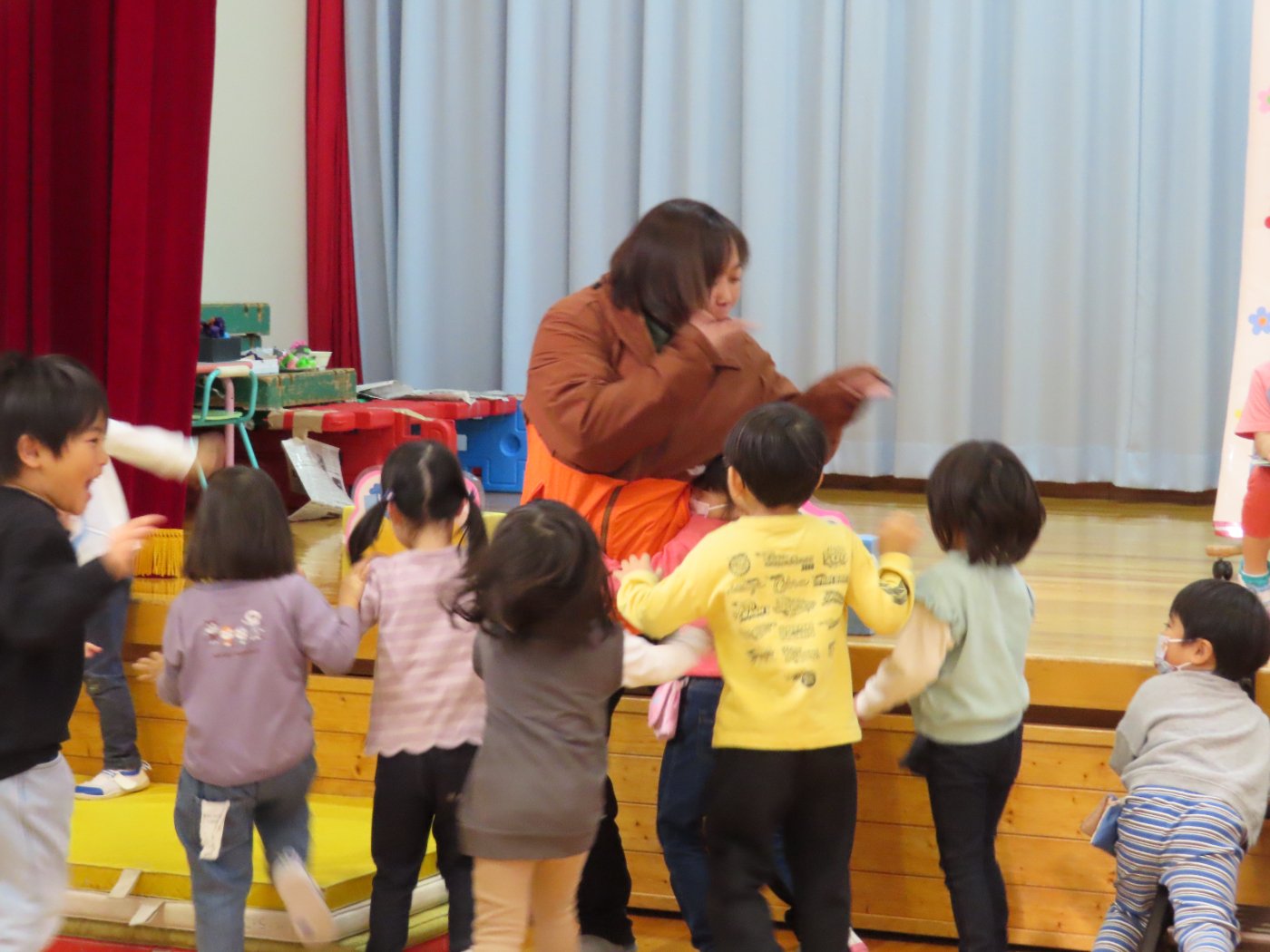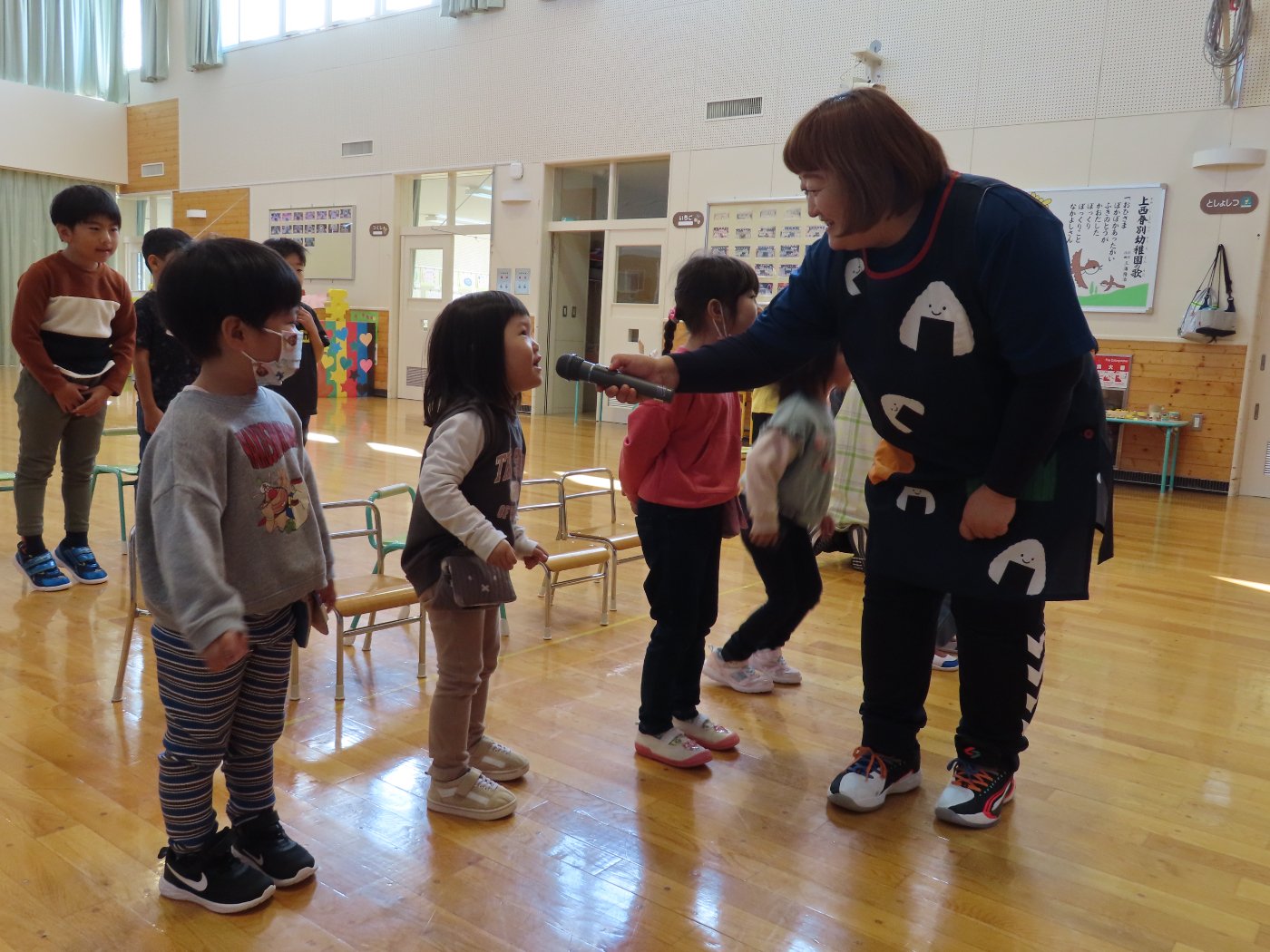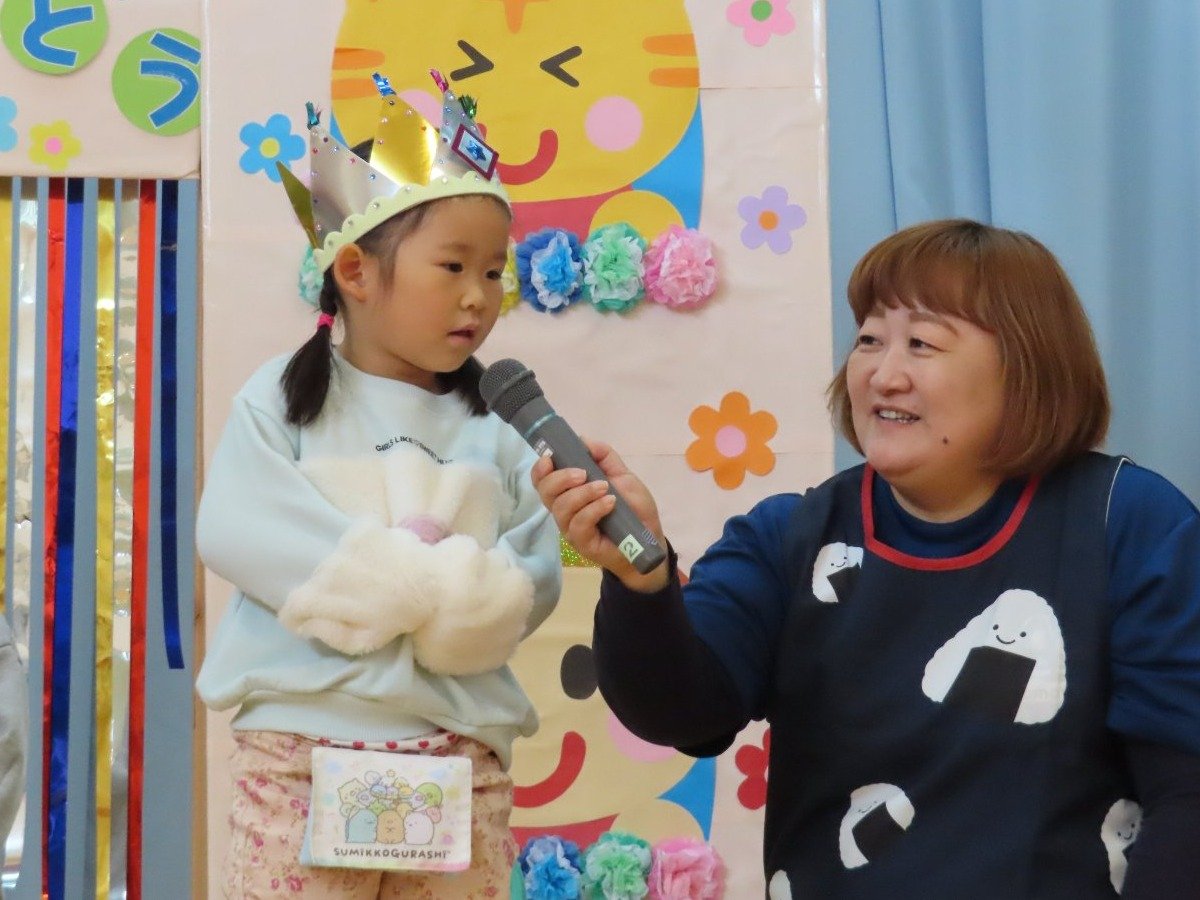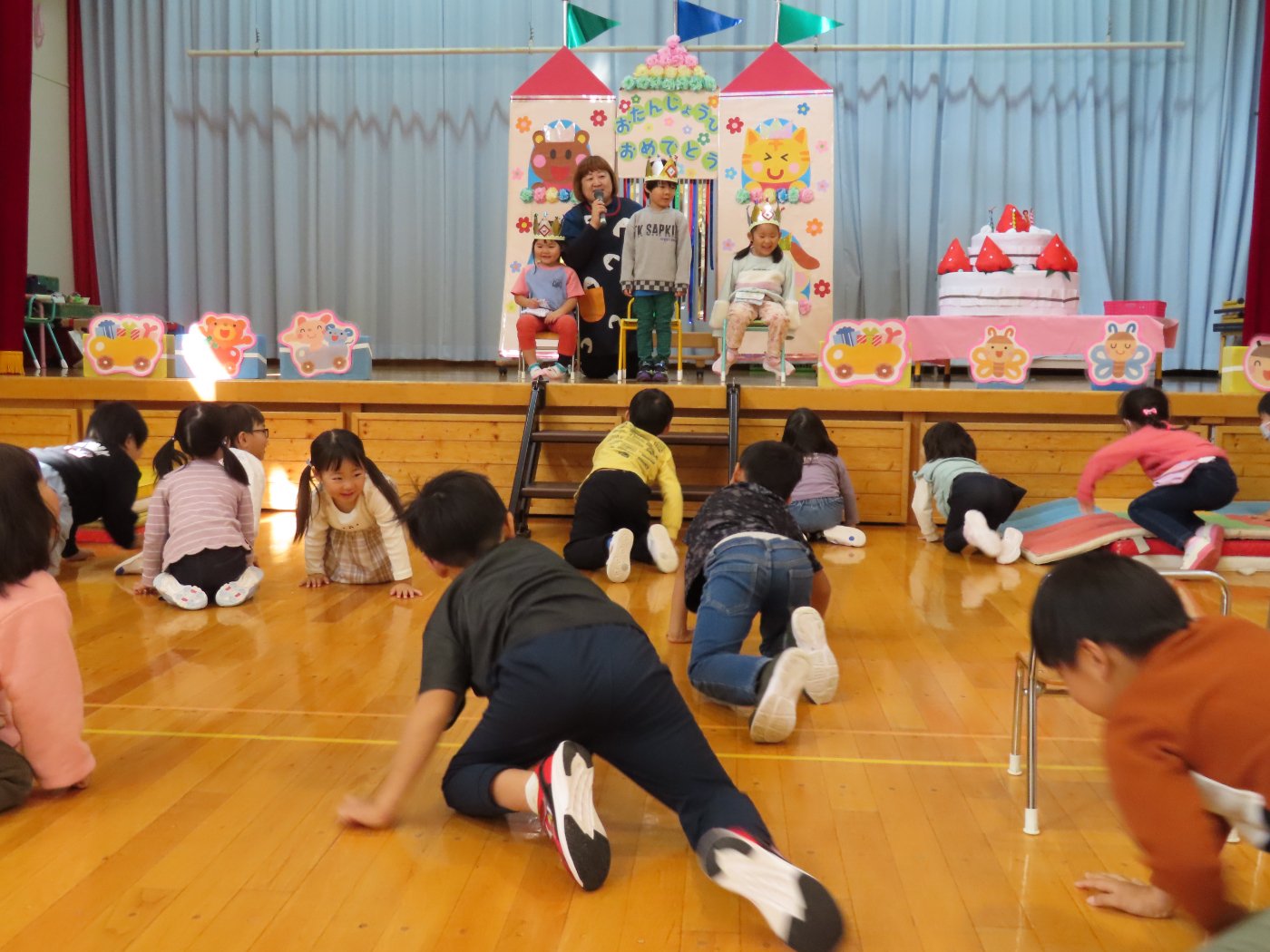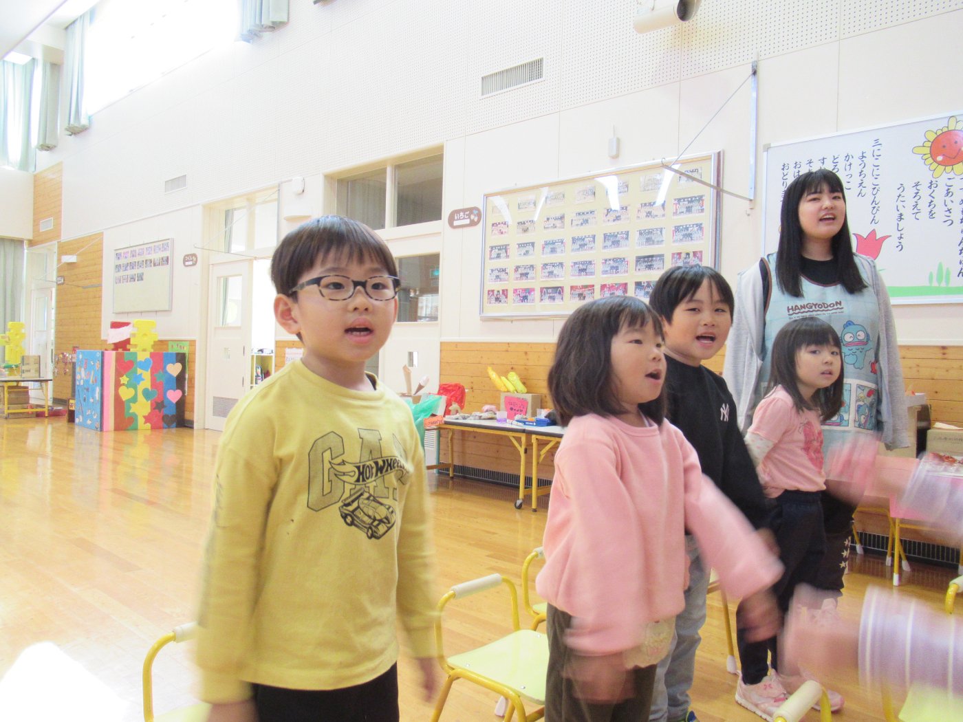 今日は、10月生まれの『誕生会』☆彡つくし組1名 、いちご組2名の友達のお祝いをしました。初体験の誕生会に嬉し恥ずかしそうないちご組の誕生児、待ちわびていた誕生会に ウキウキしていたつくし組の誕生児。いざ、ステージに上がると少し緊張したようですが、親しんできた友達との質問のやり取り、たくさんの拍手やお祝いの歌を受けると段々と表情も和ぎ、年に一度の特別な日を楽しんでいました。