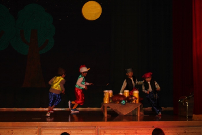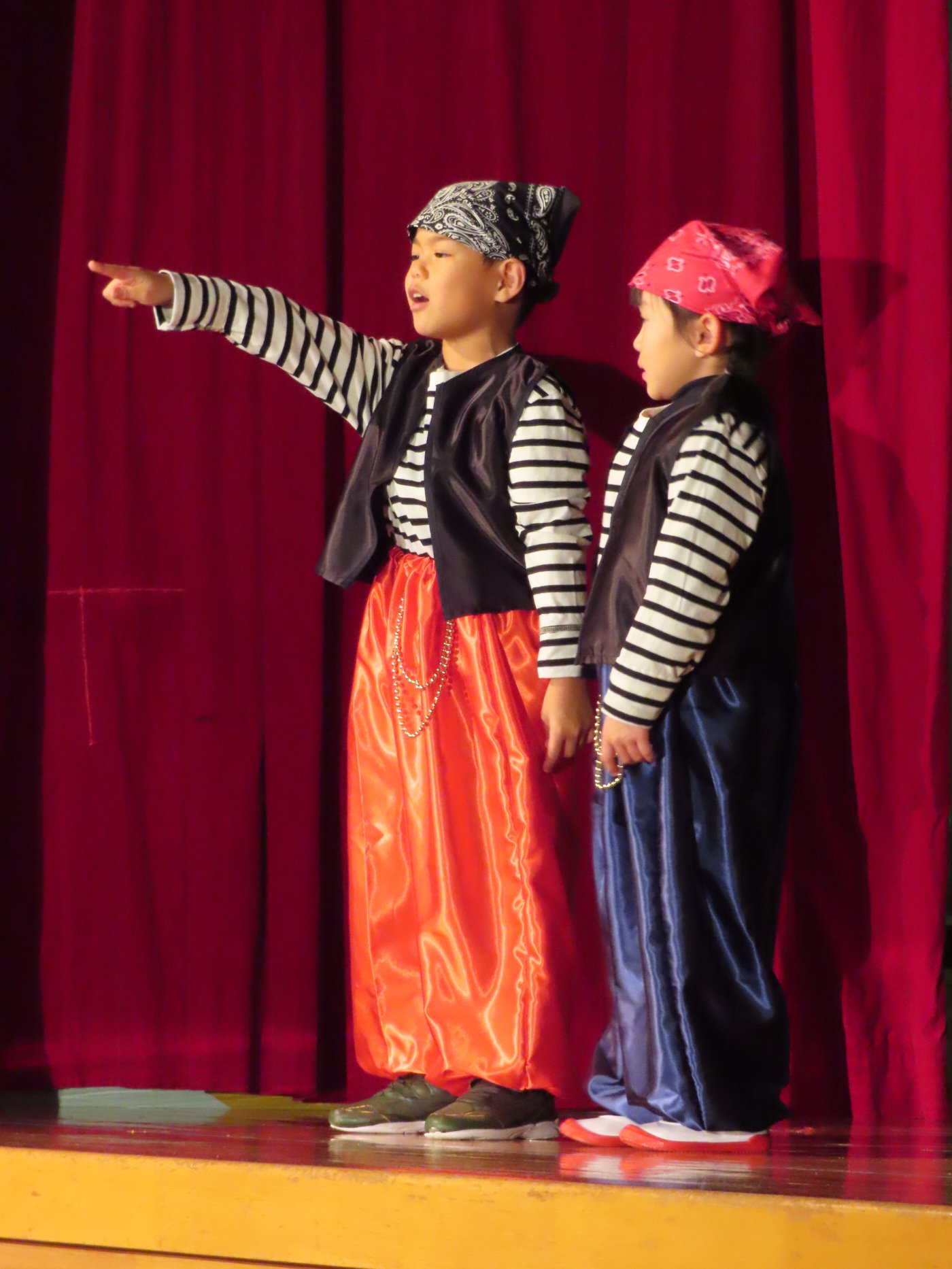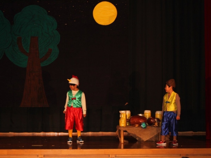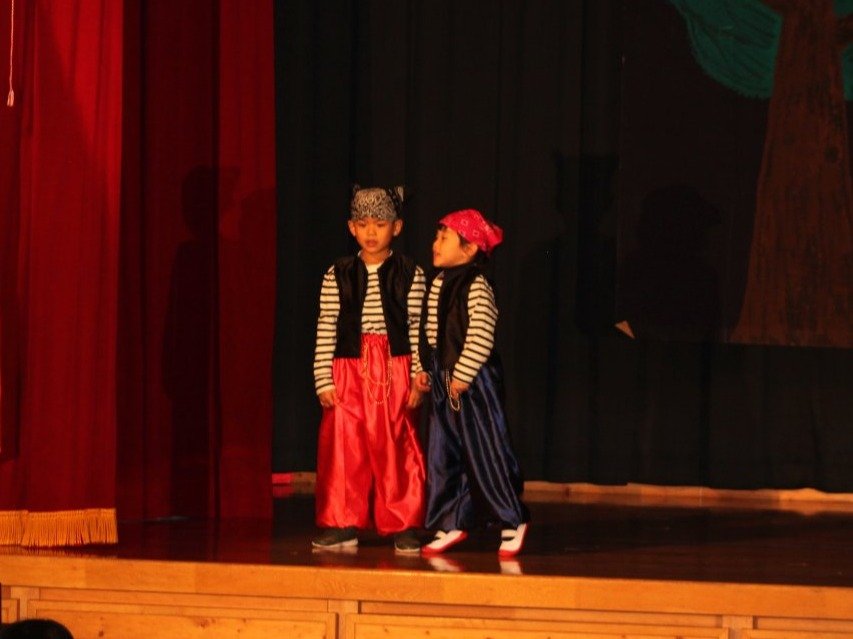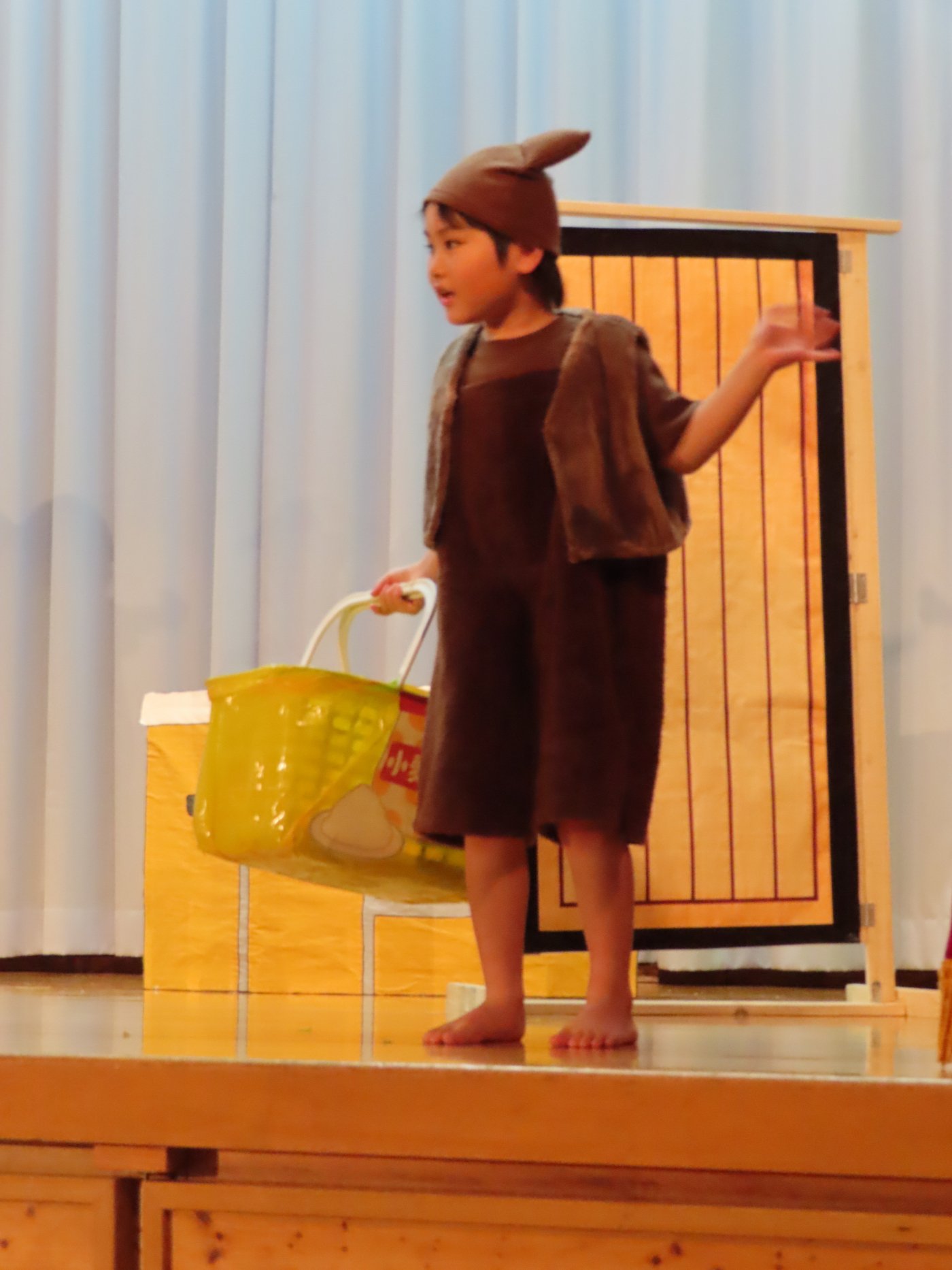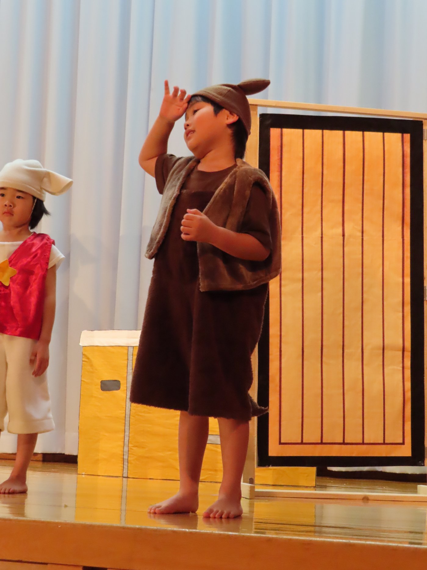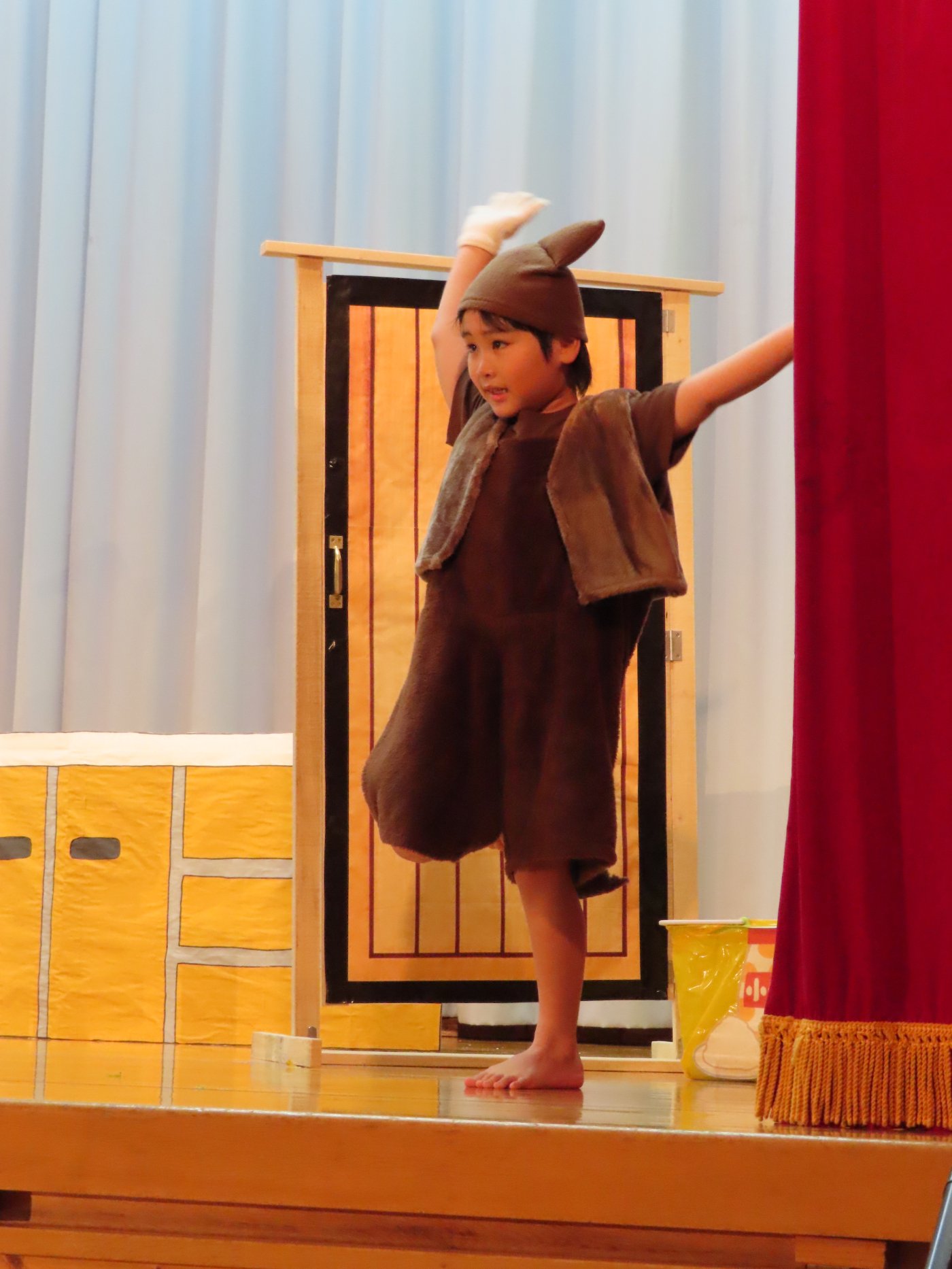 輝いていたね☆彡『第50回ゆめの会』part2 2025年12月21日(日) NEW 行事 10.いちご組/劇遊び『くれよんたちの きょうはなにをかこうかな?』 かわいいクレヨンたちが勢揃い! 自分の好きな色のクレヨンに へ~んしん! ♬どんな色が好き?⇒『赤』! ♪赤い色が好き 赤色クレヨンたちは、『イチゴ』と『トマト』を描いてお弁当箱へ 元気いっぱいの歌声♬ 他の色のクレヨンたちも元気ハツラツな歌声 (^^♪ 黄色クレヨンたちは、『卵焼き』を描いてお弁当箱へ 一人でも、パワフル声量の緑色クレヨン(^^♪ もちろん! 他のクレヨンたちも一緒に歌います♫ ジャジャーン☆彡『キュウリ』を描いてお弁当箱へ リズムに乗って、ウキウキ登場☆彡『紫』クレヨン ジャジャーン☆彡『ブドウ』を描いてお弁当箱へ 元気いっぱい大きな振りで ♫一番先になくなるよ 茶色いクレヨン ジャジャーン☆彡『チョコレート』が飛び出した時は、予想外で会場から驚きの声 最後は、黒色クレヨンが登場☆彡 黒色クレヨンは、『おにぎり』を描いてお弁当箱へ できあがったお弁当を持って、ピクニックへ! 「準備はいいですか?」黒クレヨンの号令で、「それでは皆さんご一緒に!」 い「ただまーす⤴」 頬張る仕草が、これまた可愛い♬ 友達と一緒で楽しい! 普段のクラスの様子が垣間見える劇遊びでした 記念写真☆彡 11.つくし組/オペレッタ『おおかみと しちひきのこやぎ』 開幕とともに、母ヤギ&7匹の子ヤギが登場 お買い物に出かける母ヤギ 子ヤギと約束事を交わします 母さんが帰ってくるまで、扉は絶対開けちゃダメ! 扉は、絶対開けないよ! ♫狙った獲物は逃さない ズンズン迫る音にノッてオオカミ登場☆彡 母さんだったら、もっと優しい声 偽物なんかに、だまされない! 母さんが帰って来るまでは、扉は絶対開けないよ! 再びオオカミ登場☆彡 怖さ&コミカルな動きの表現がナイスです(^^♪ この声は、母さん? 声は、母さんだけど… 手と足の色が違う だまされないぞ~ 扉は、絶対開けないよ! またまた、みんなが好きな『ダメ』ポーズ 最後の手段、小麦粉を持って登場! 音楽に乗り、小麦粉を塗ったように軍手を装着! フォー⤴と雄叫び 声も手足も母さん? 帰っってきた おかえりー!! キャーッ!! オオカミだー 袖から見てみると、必死に隠れています オオカミも子ヤギも、名演技☆彡 逃した獲物はいないか、再確認 柱時計の後ろには…一番小さな子ヤギ 優しく、頼もしい母さんヤギが帰ってきました 寝ているオオカミのお腹を切って、子ヤギを救出 軽やかな音楽と共に 飛び出す子ヤギたち オオカミのお腹の中から無事に生還☆彡 最後は、オオカミのことも助ける肝っ玉母さん(^^♪ 9人の仲間でつくりあげたオペレッタ、たくさんの拍手を受け、やり切った感を味わいました 記念写真☆彡 13.たけのこ組/劇『ブレーメンのおんがくたい』 ゆめの会のトリを飾る たけのこ組の劇 開幕☆彡 歌詞に合わせた大きな振りを意識 後ろの客席に届く声を意識 「働かないと、お母さんたらご飯くれないんだよね…」 客席からの笑い声に、心の中ではガッツポーズ 動きも表情も、ネコになり切っています 「ケンタッキーにされちゃうんだよ」のセリフに、会場が大受けし、心の中ではガッツポーズ! おっとりコミカルなニワトリ役が、はまり役 よし☆彡 みんなでブレーメンに行こう! ブレーメンを目指し、夜道を歩いていると、「あっ、向こうに明かりが見えるよ!」 見せ場早早着替え! 幕が開くと、動物から泥棒に変身☆彡 窓枠から顔をひょっこり! 泥棒の家の中を覗き込むシーン たまらなく、可愛いです♫ ヒヒーン! ワンワン!! ニャーッ! コケコッコー またまた早着替え! 泥棒を追い出すことに大成功☆彡 ビールでカンパーイ! 「このチキン、食べるのに ちょっと勇気いるんだよな…」のセリフに、会場からドッ!と笑い声が またまた心の中ではガッツポーズ☆彡 またまたまた早着替え☆彡 様子がおかしいと戻ってきた泥棒 「おい! お前、あの家の様子を見てこい!」 「嫌ですよ~、いつでも親分と一緒がいいんです♫」との掛け合いに、またまた大受け! 狙い通りに笑いのツボを押さえる演技が光ります☆彡 また泥棒が来た よし、また驚かせてやろう! カンペキに泥棒を追い出すことに大成功☆彡 ブレーメンもいいけど、ここで4人で暮らさないかい? つまり~、ずっとみんなと一緒ってこと? いいね! なかよし4人組♫ 練習を積み重ね、見事な掛け合いを披露☆彡 これまで育まれてきた絆があったからこそ、成せる業です 最後に一人ずつ、配役を交えて自己紹介 全てを出し切った、やり遂げた 清々しい表情をしています 安堵の表情を浮かべています ともに支え合い、認め合ってきた4人の絆が、また深まりました 記念写真☆彡 なかよし4人組♫ 記念写真☆彡 ビール、最高⤴⤴ 14.たけのこ組/挨拶『おわりのことば』 最後の締めの挨拶は、もちろん!たけのこ組 それぞれの思いを込めながら 幼稚園を代表し、見に来てくれた、支えてくれた方々に挨拶 本当にありがと