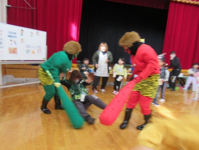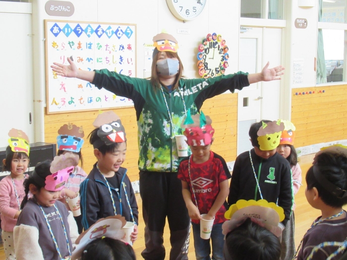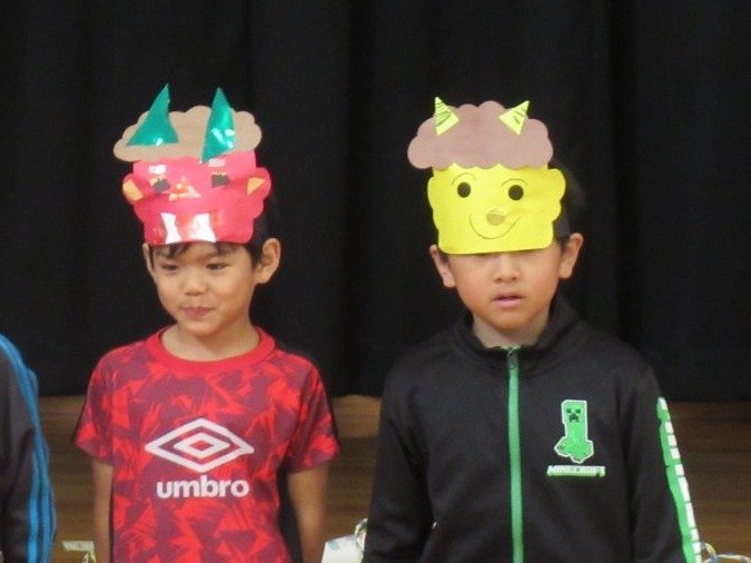 見事な鬼役で豆まき会を盛り立てて!? いただいた赤鬼~ PTA会長、緑鬼 ~PTA副会長、お忙しい中、本当に有難うございました☆彡