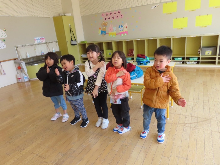 年度当初は,進級への期待と不安が入り混じる時期ですが,1日でも早く新しい環境に慣れ親しめるよう努めていきたいと思います。そして,明日は入園式! 4名の新しいお友達を元気いっぱい迎えたいと思います。