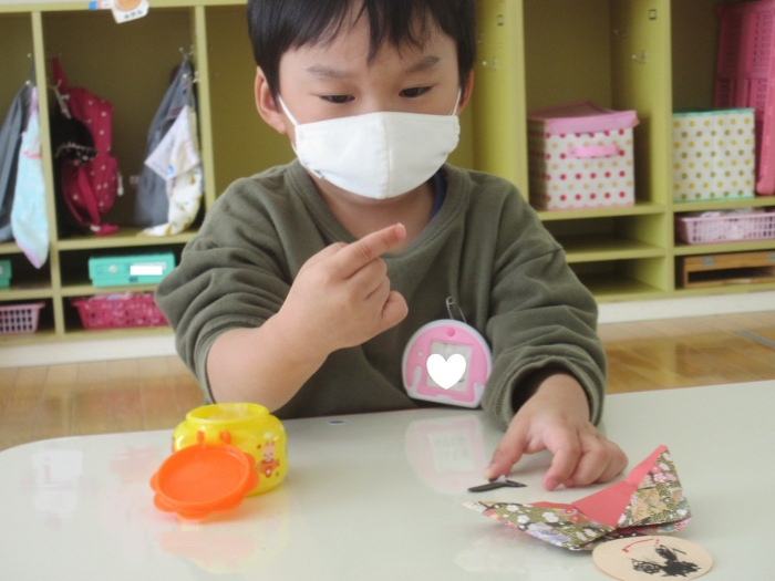 折り紙を折って