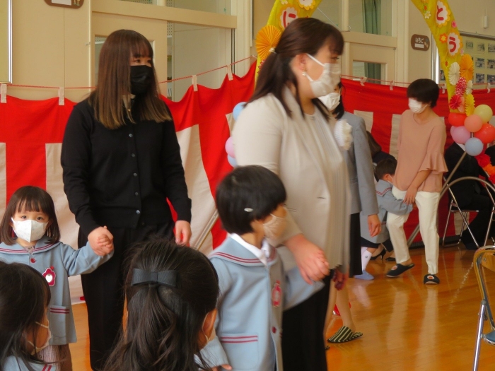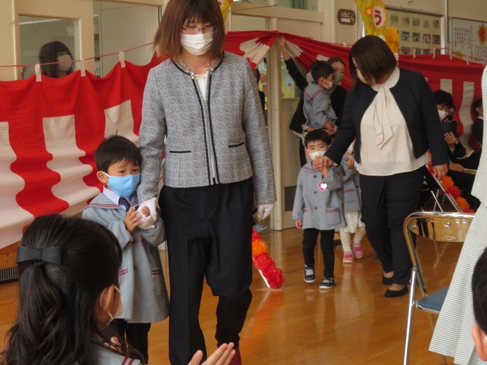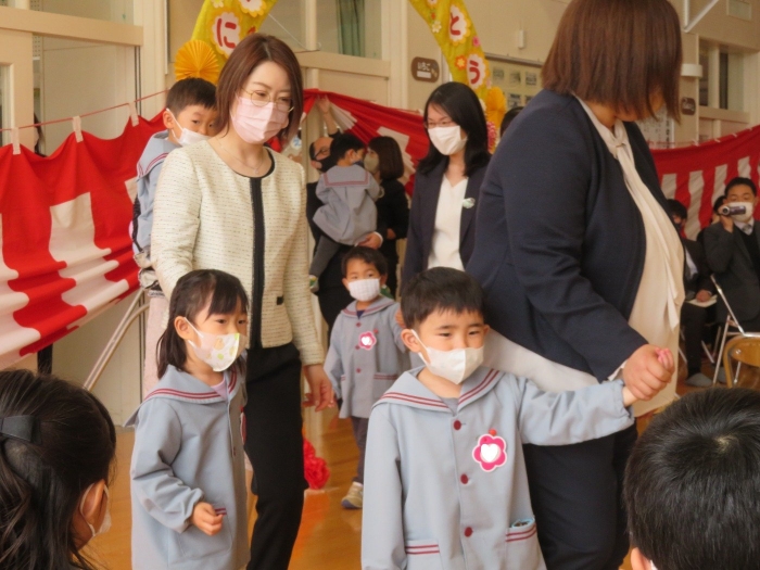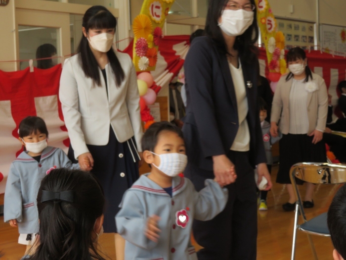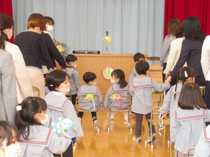 入園式では、上西春別幼稚園の卒園児でもあるPTA会長様からの心もこもったご祝辞をいただき、先生方は明日へのパワーをいただきました。たけのこさん、つくしさんは、お兄さんお姉さんらしい姿を、しっかりと見せてくれましたよ。緊張感があり頑張ってくれたので、式終了後はどっと疲れが出たようです(笑)。月曜日からも、頼りにしていますよ。私達職員も、元気いっぱいの子供達に負けないように、力を合わせて園生活を過ごしていきたいと思います。