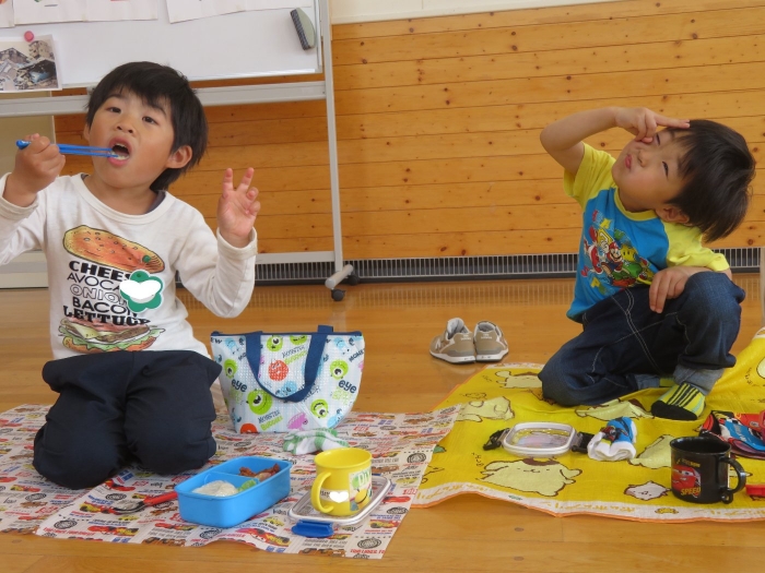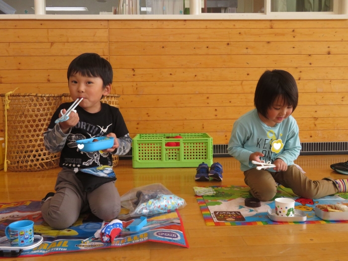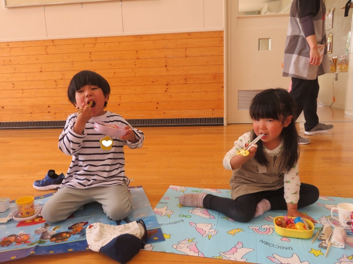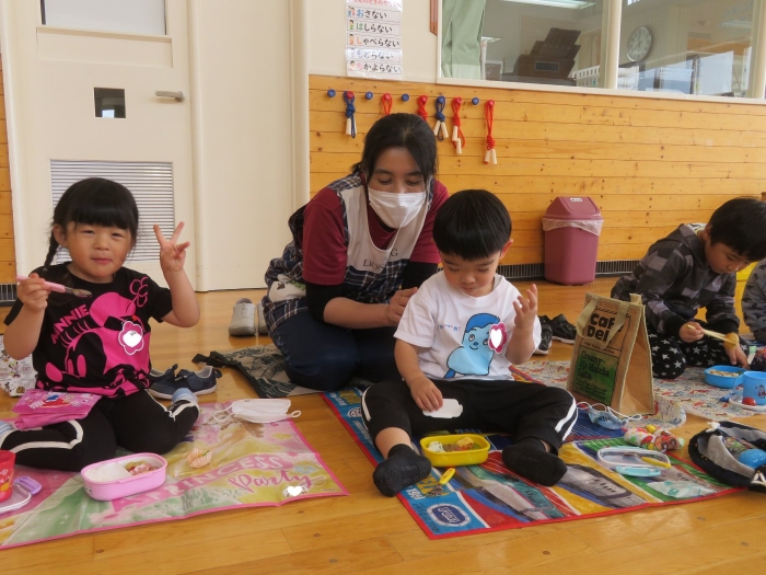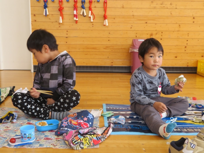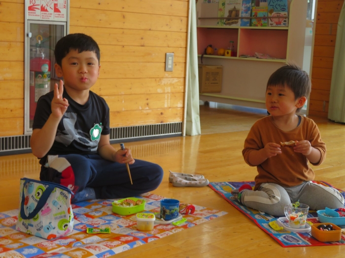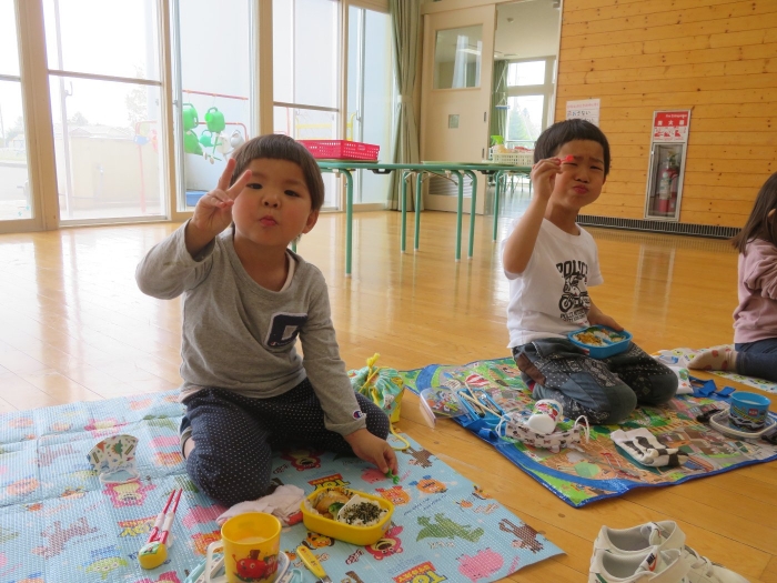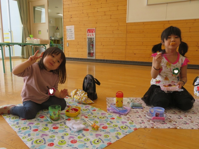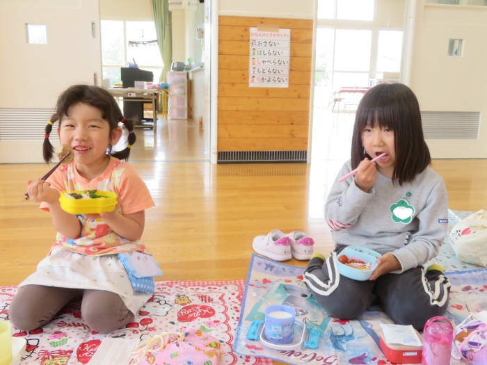 今日は、今年度初めての弁当日でした。久しぶりにプレイルームに全員集合して、一緒に食べました。朝早くからお弁当の準備、ありがとうございました。