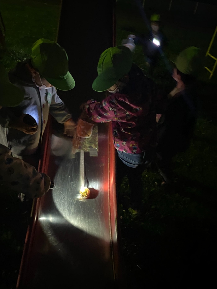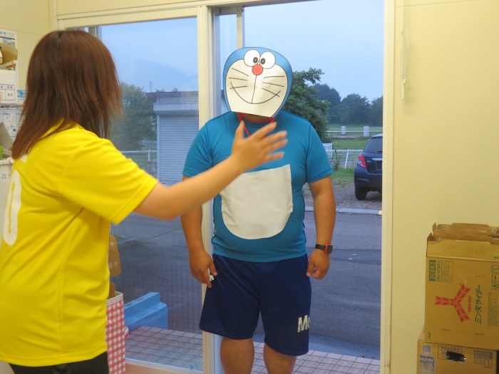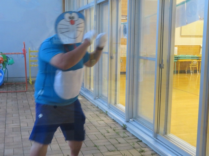 美味しい夕食を食べてお腹休めをした後は、いよいよお楽しみゲームの時間です。毎年、このお楽しみゲームでは、様々なハプニングが起こります。今年のたけのこさんも予想を裏切らず(笑)、ゲームスタート直後からハプニングが続出!そのため、予定より大幅に時間を超えてしまうという事態に(汗)。急遽、保護者の皆さんに連絡をして、降園時間を変更させていただくことになりました。また、今年のゲームでは、上西春別中学校のS先生が、先生方のオファーを快く引き受けてくださいました。保護者の皆さん、そしてS先生、ご協力ありがとうございました。