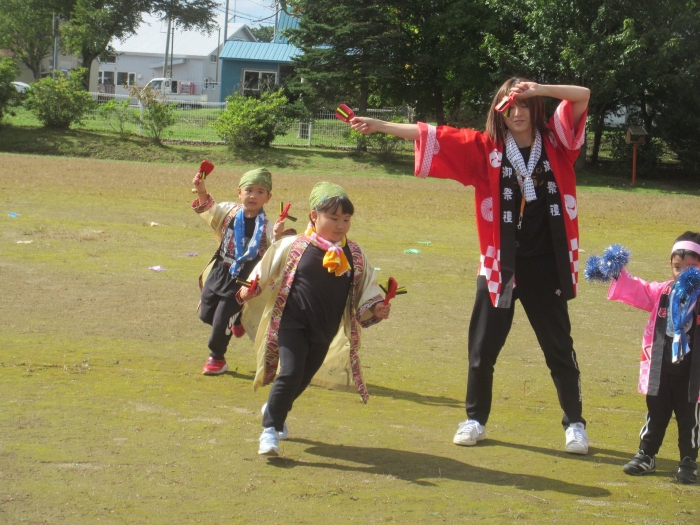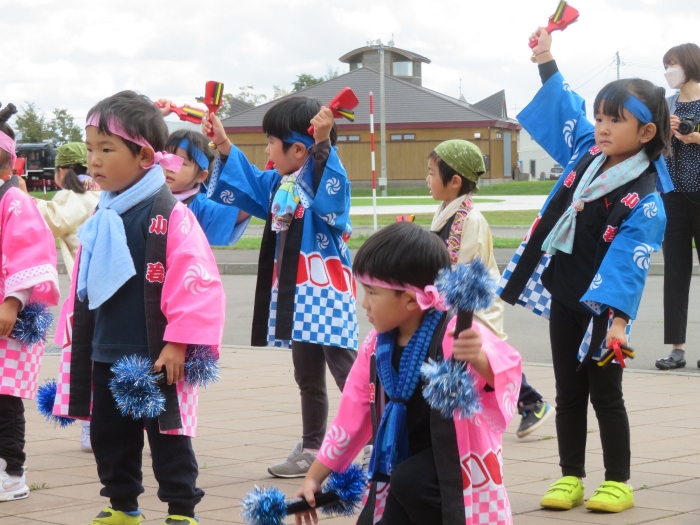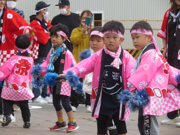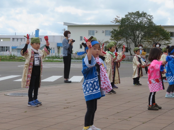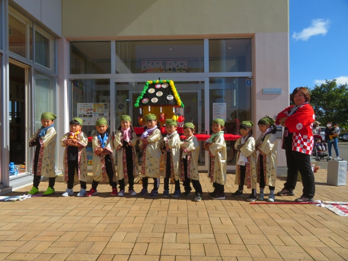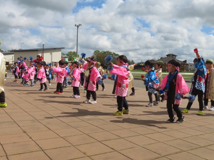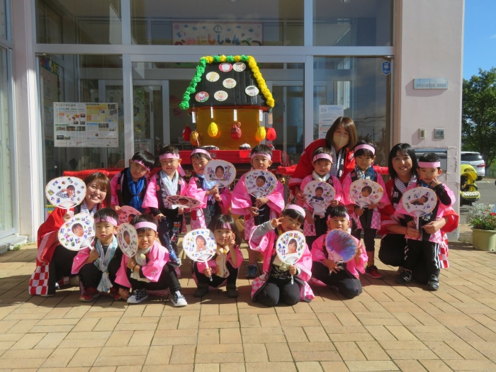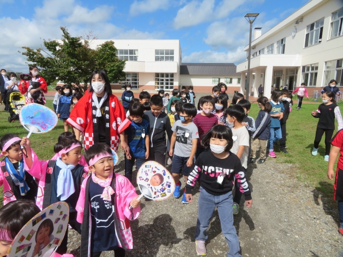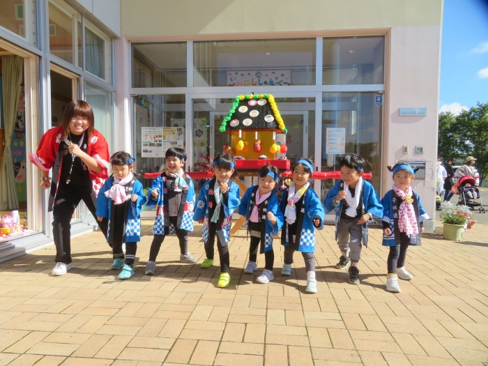 今日は、待ちに待った『神輿演舞お披露目会』。この日に向けて、子供達は神輿作りや演舞の練習に取り組んできました。今日は、ご家族の皆さんをはじめ、小・中学校さんにもご協力していただき、休み時間を利用して生徒の皆さんにも子供達の姿を見ていただきました。たくさんのお客さんの前で踊ることは初めてでしたが、生徒の皆さんや保護者の皆さんの温かい声援のおかげで次第に緊張もとけ、笑顔で参加することができました。小・中学校さん、保護者の皆さん、ご協力ありがとうございました。