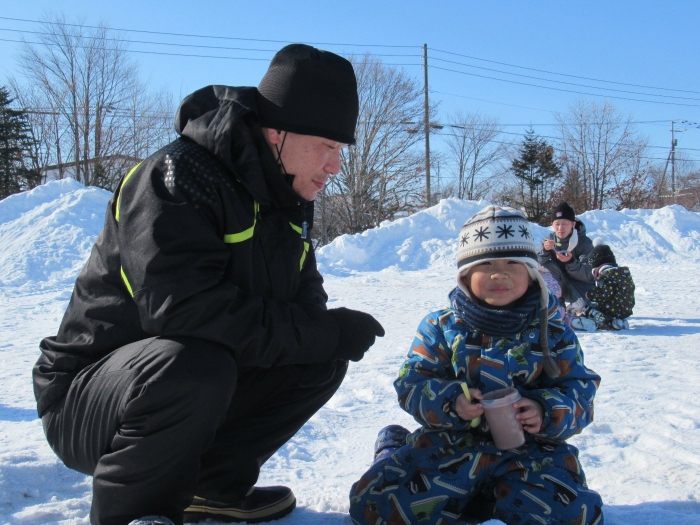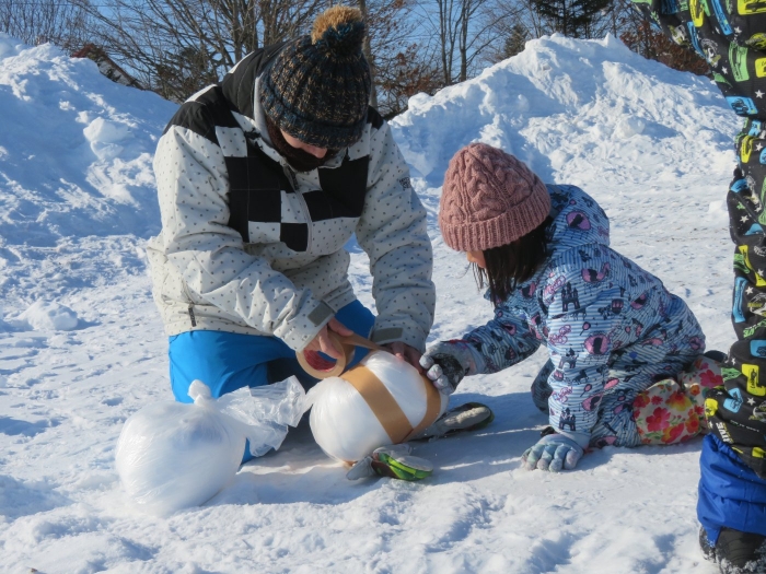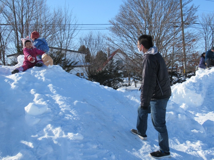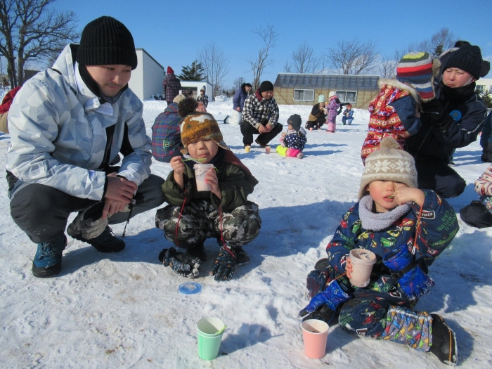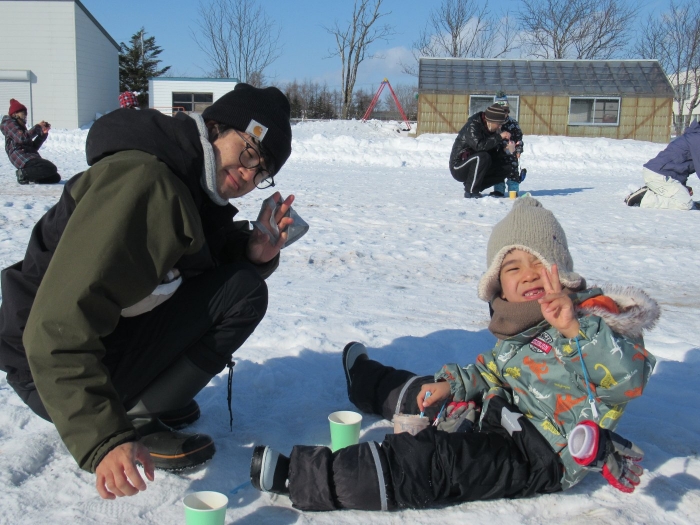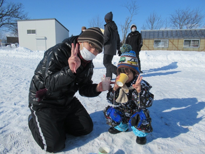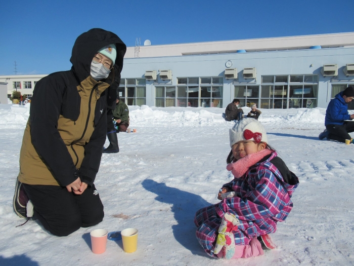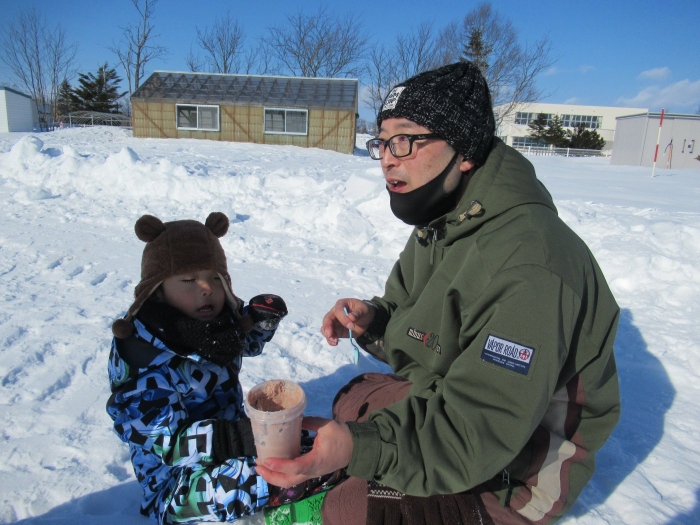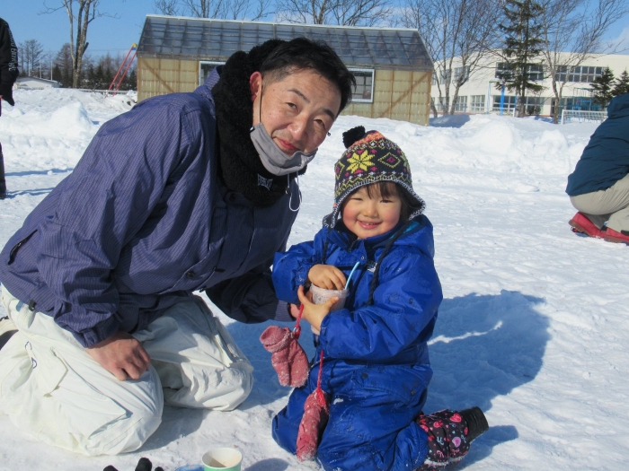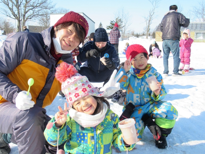 今日は日曜参観日、風もなく戸外で活動するには絶好の一日。日頃、なかなか幼稚園に来られない保護者の皆さんに園での様子を見ていただく機会、また、親子で触れ合える機会として行っています。今年も、コロナ対策のため園での参観は行わず、戸外での活動に限定して実施しました。戸外では、親子で楽しめる内容をと考え、昨年に引き続き『親子でアイスクリーム作り』に挑戦。先生方の説明を聞きながら、美味しいアイスクリームが完成することを楽しみに、親子でたくさん体を動かしました。是非、ご家庭でも挑戦してみてくださいね。参加してくださいました保護者の皆さん、お子さんと一緒に楽しんでいただけましたか?子ども達は、お父さんお母さんと一緒に活動することができ、終始にこにこ笑顔で嬉しそうでした。かなり疲れたと思いますが、ご参加いただきありがとうございました。