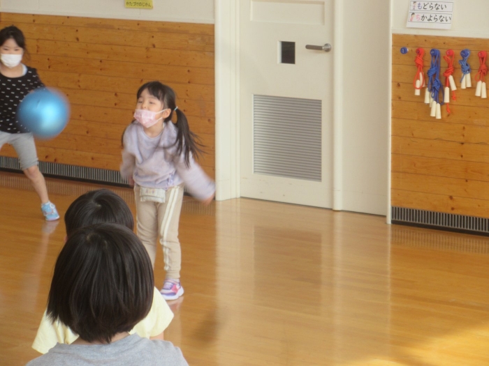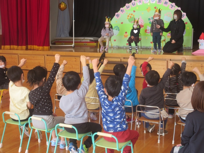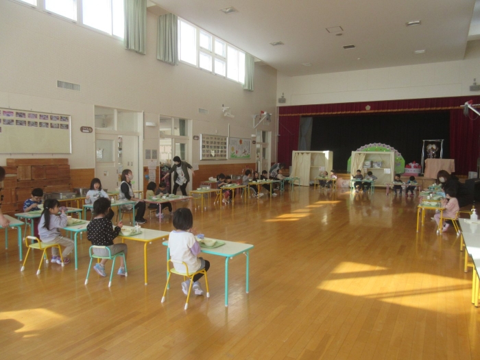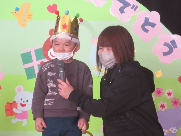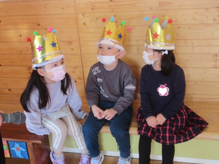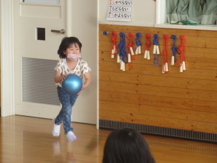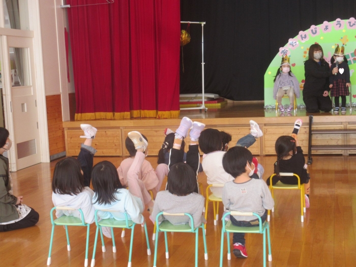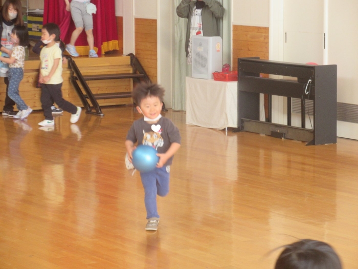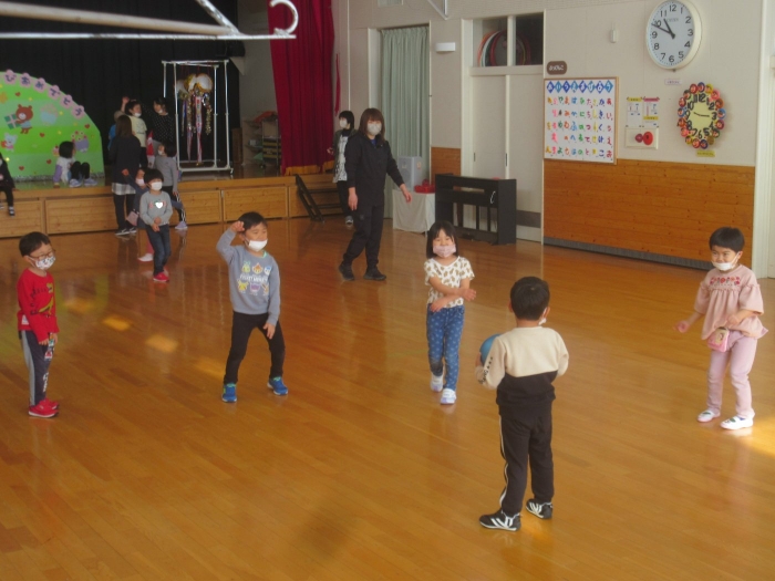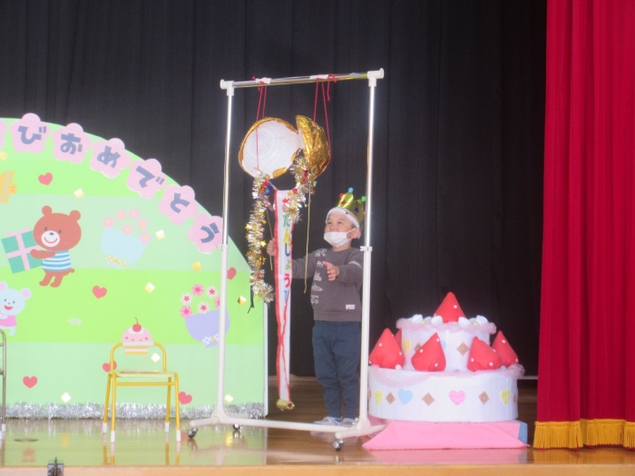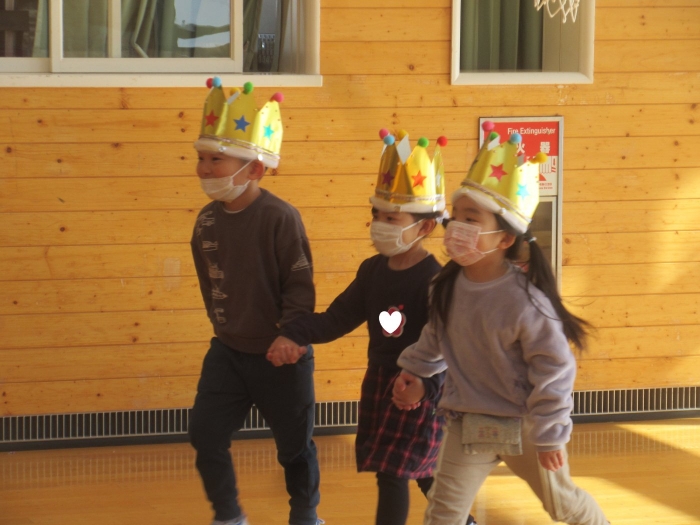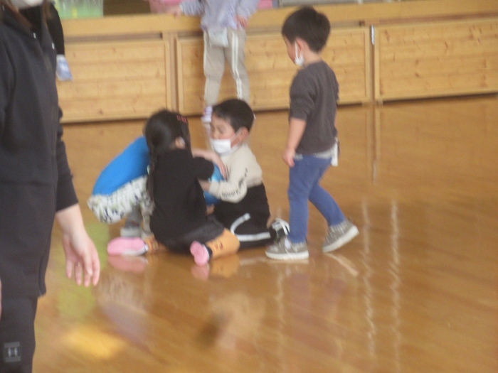 今日は2月の誕生会。つくしさん1名、いちごさん1名、先月お休みした1月生まれのつくしさん1名、3名のお祝いでした。みんなに祝ってもらえるこの日を、首をなが~くして待っていたでしょうね。3名とも元気いっぱ自己紹介をしたり、質問に答えてくれたりしてくれましたよ。さて、今日のお楽しみは、みんなが大好きな『かたき』。普段の遊びの中でも行っているので、ほとんどのお友達がルールを理解しながら参加していました。ボールを当てられて泣いたり、悔しがったり、叫んでいたり(笑)。自分の気持ちを前面にだしながら、子ども達も先生方も本気勝負!担任が、自分のクラスの子ども達を次から次へと当てていくという、すさまじい闘いが繰り広げられていました。大人も子供も、全力だからこその楽しさや悔しさをたっぷり味わいながら、汗だくになって楽しみました。