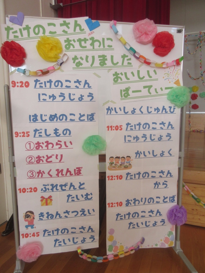 たけのこさん おせわになりました おいしいパーティー💛