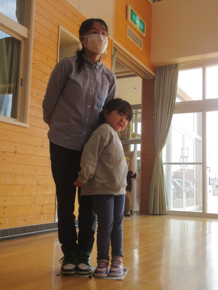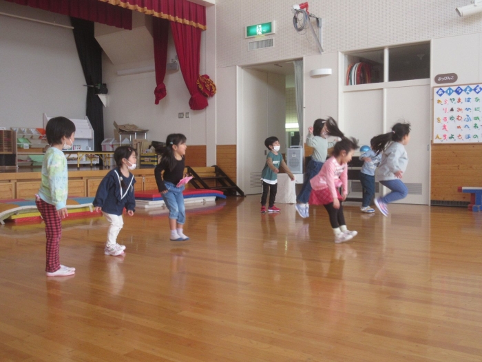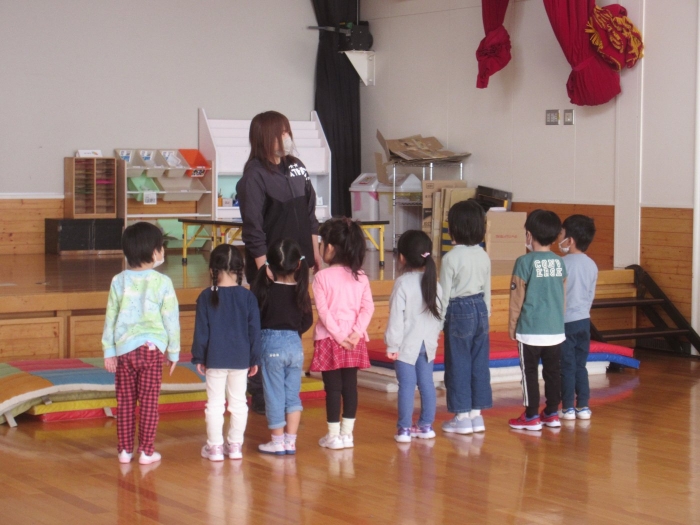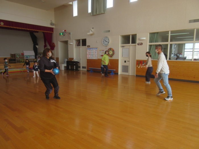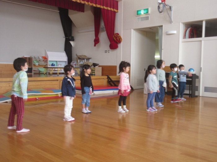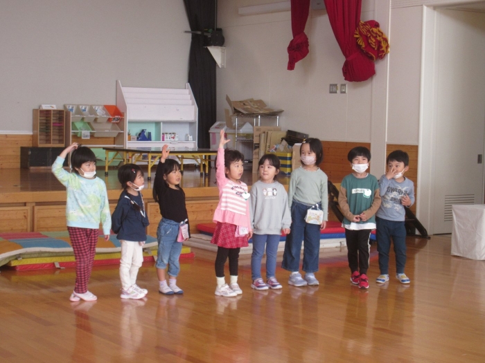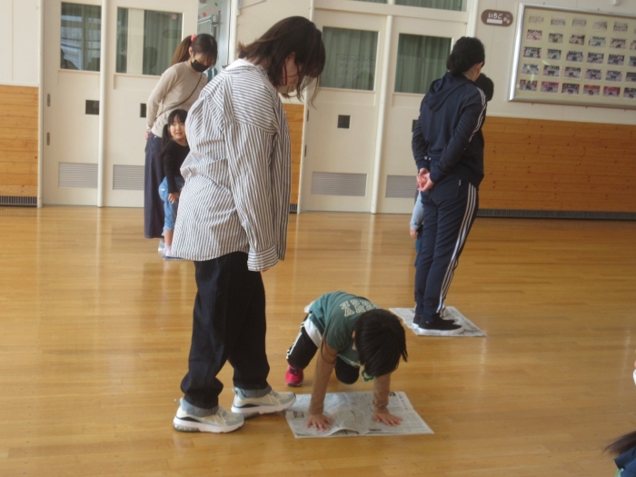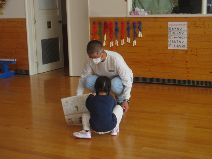 さて、今日はたけのこ組の保育参観日。年長組になり一か月、お父さんお母さんが来てくれて嬉しい様子もありながら、落ち着いて活動に取り組む様子が見られていました。朝の会後は、親子で『信号ゲーム』、『新聞ジャンケンゲーム』、みんなが大好きな『か・た・き』を行いました。かたきでは、子ども達はもちろん、お父さんお母さんも本気勝負で参加してくださり、今までにないくらいの熱い闘いでした。ふとした瞬間に、大人達だけでの勝負になっているのも、見ていて面白かったです(笑)。素のお父さんお母さんの様子も知ることができましたよ。