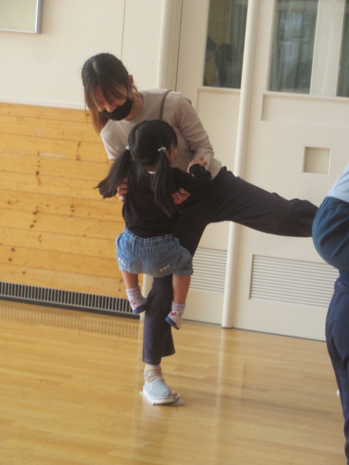 片足で立って…