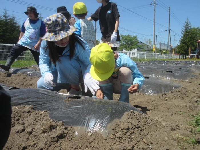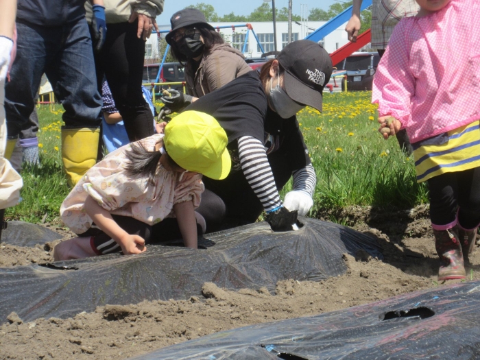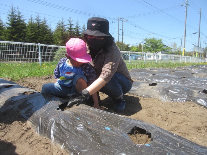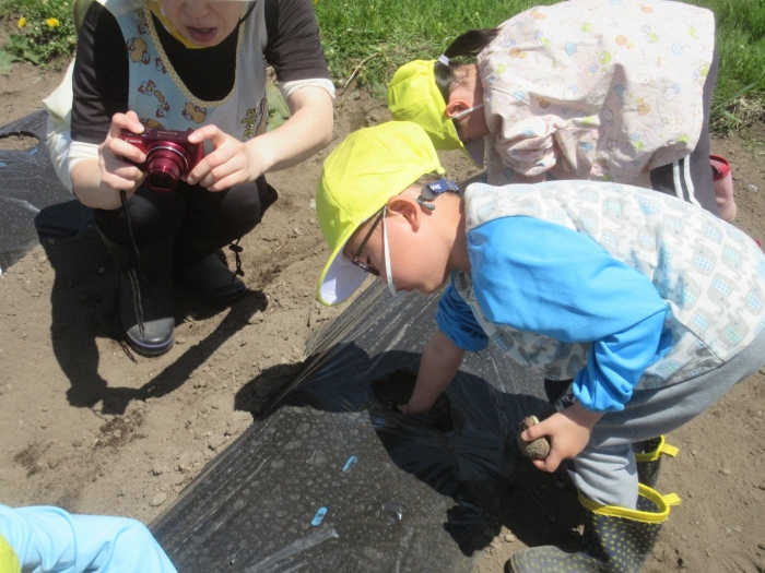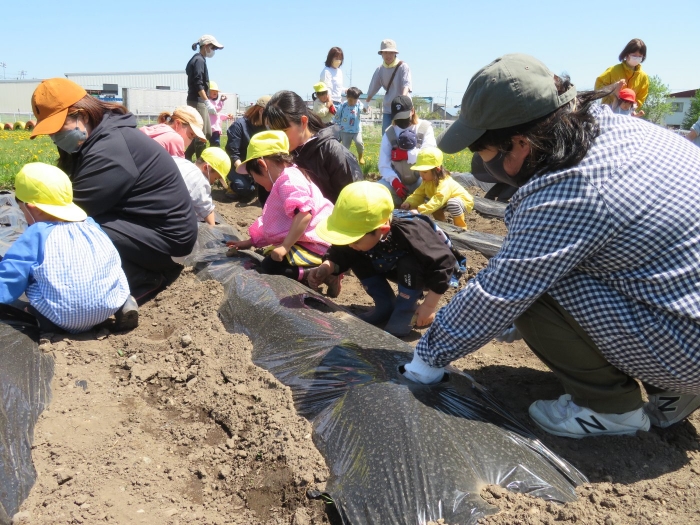 今日は、いちご組・つくし組の保育参観日。入園・進級から2カ月、子供達の園での様子を見ていただきました。朝の会では、たくさんのお父さんお母さんの姿に少し緊張している様子でしたが、不安になる子がいなく安心しました。芋植えでは、先生の話をよく聞いて活動する姿をみていただき、その後、親子で芋植え体験。初めて芋植えをしたという保護者の方もいたようですね。全体懇談では、自立に向けてのお話、クラス懇談では、クラスの様子や課題についてお話させていただきました。お子さんとの接し方について、ご家庭でも振り返ってみてくださいね。