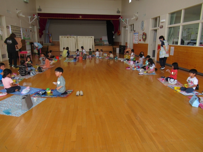 今日は弁当日。プレイルームに集まり、みんなでいただきました。