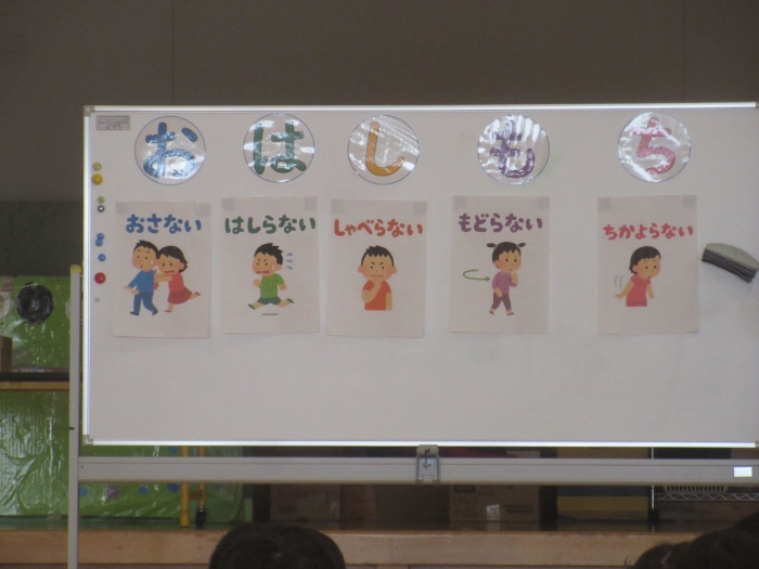 今日のおはよう朝会のお話は、第3回目の避難訓練の事前指導でした。今回は、地震が起こった後、火災が発生したことを想定して行いました。1回目、2回目は、本当の災害ではないことから真剣に取り組めなかったり、おしゃべりをしてしまったりする姿があったのですが、今回は、避難の仕方や約束を守りながら真剣に取り組む姿が見られ成長を感じました。