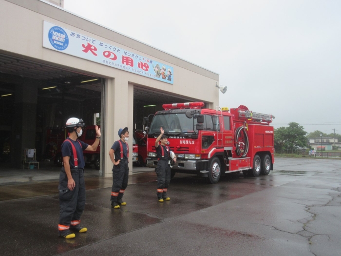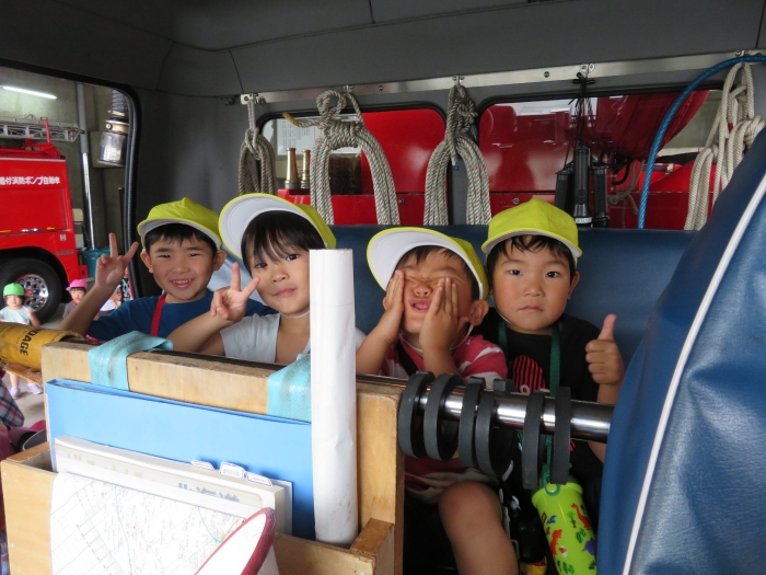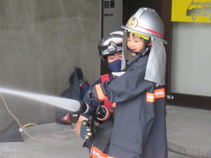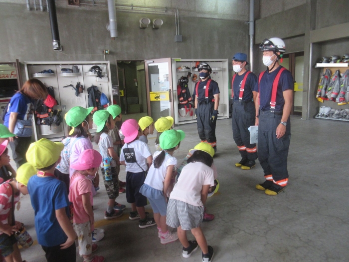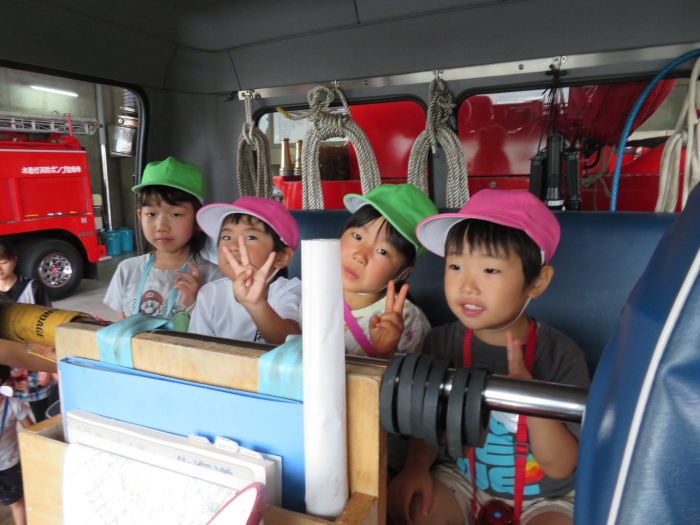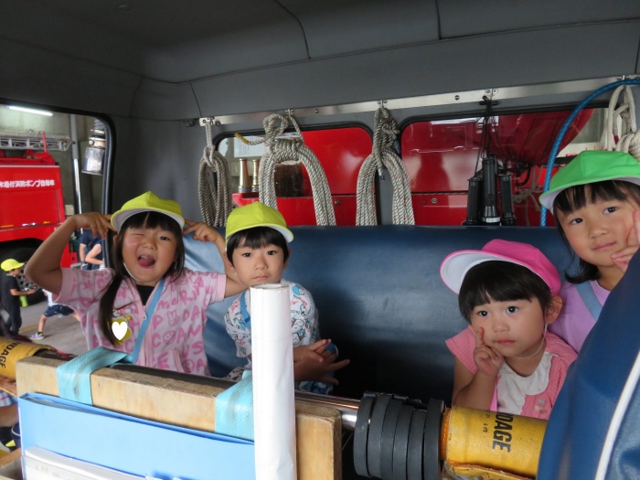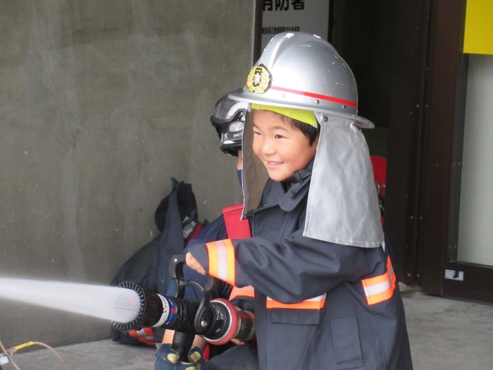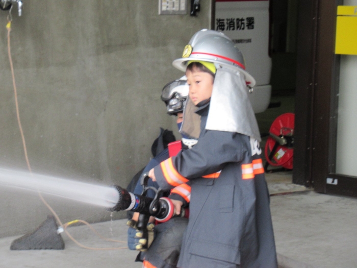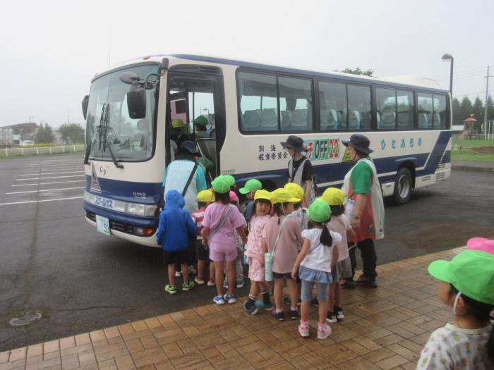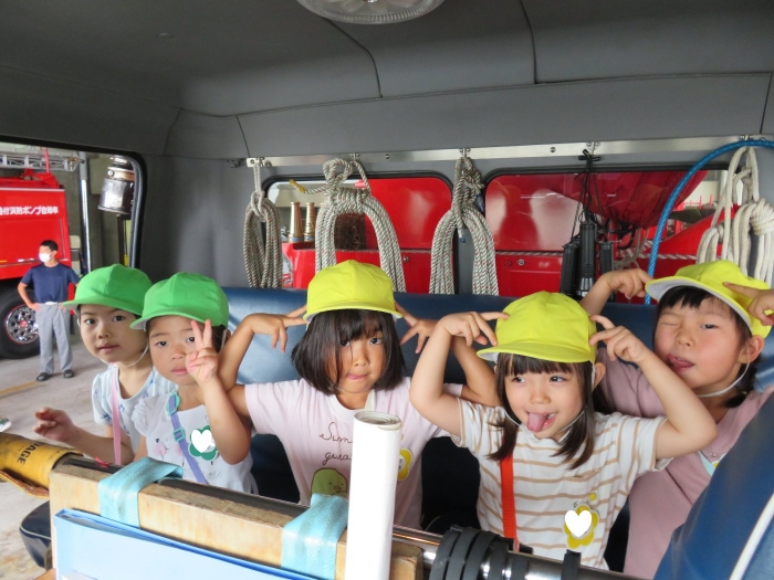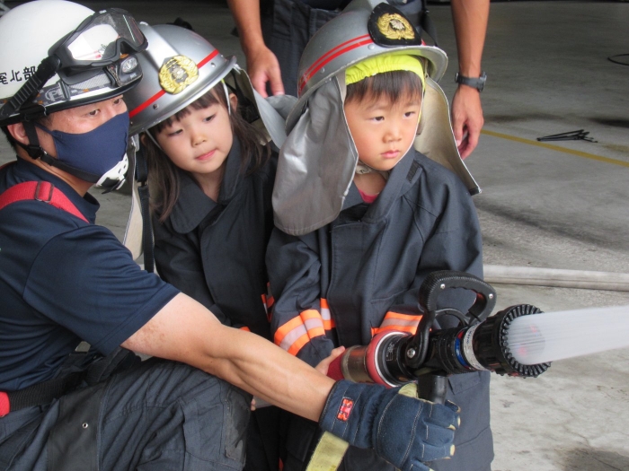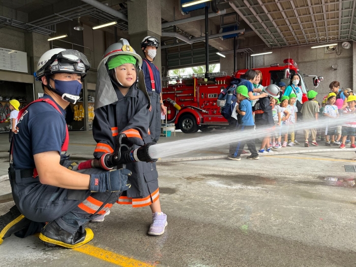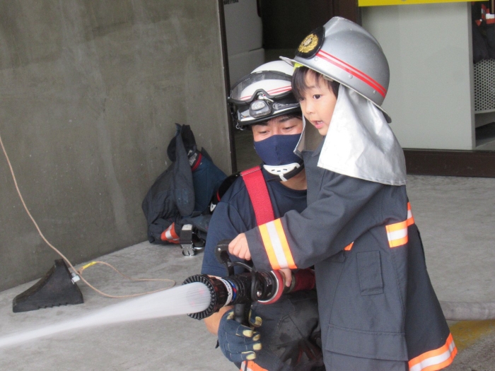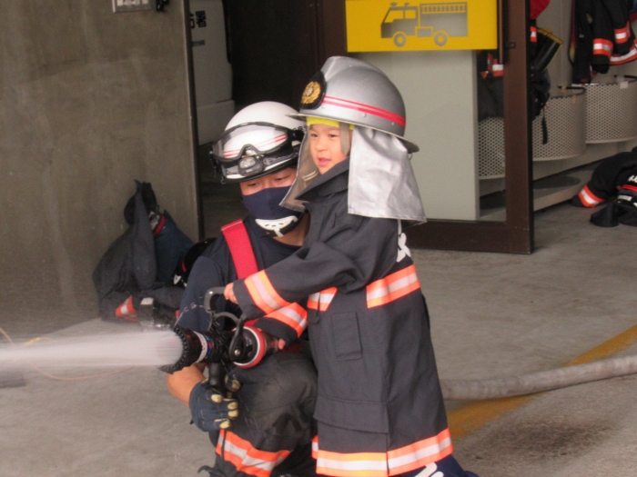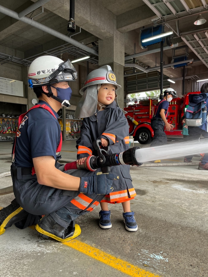 今日は、別海町消防署西春別支署の見学へ行ってきました。先日、火災を想定した訓練を実施していたこともあり、消防士さんのお話を真剣に聞いている様子がありました。お話を聞きながら署内の見学、救急車や消防自動車に乗車、消防士さんの早着替えと出動の様子の見学、実際に放水体験もさせていただきました。きびきび動く消防士さんに憧れ、「消防士になりたい!」というお友達もいましたよ。