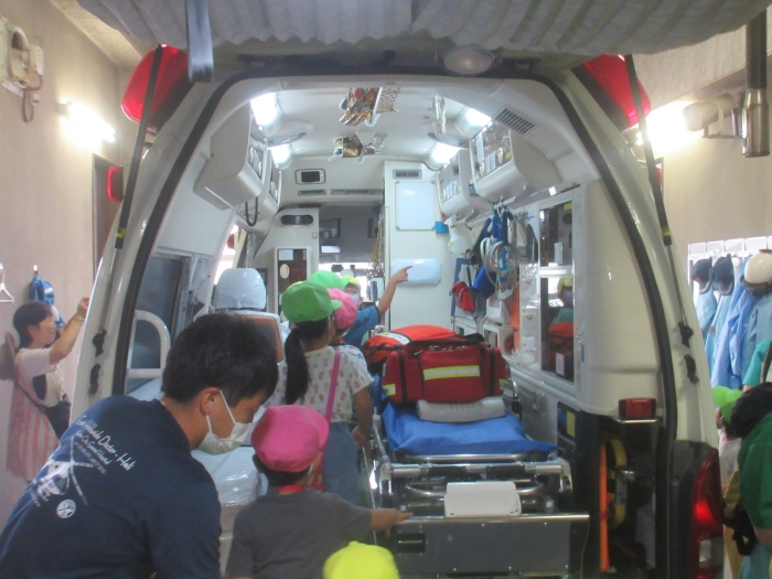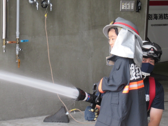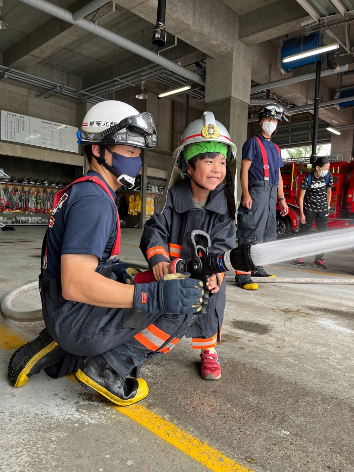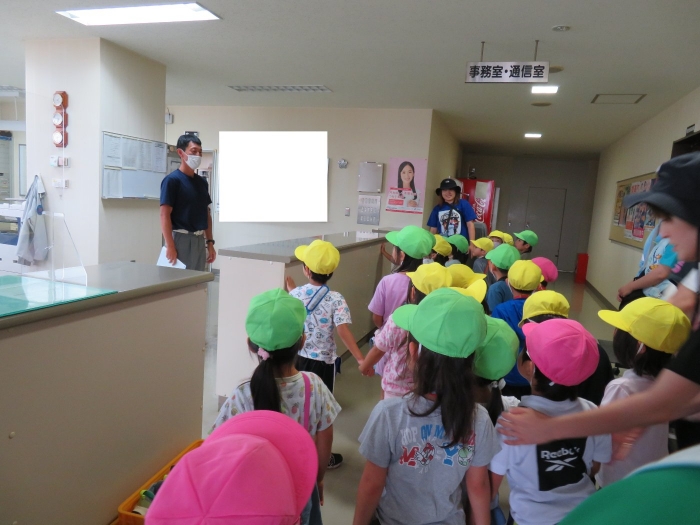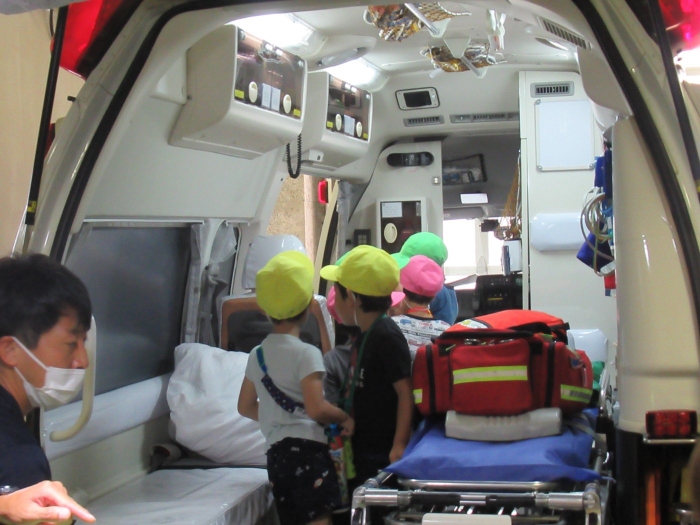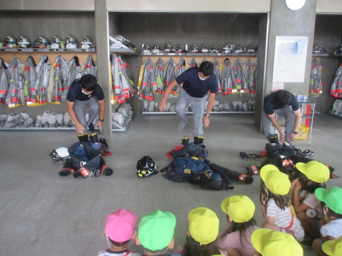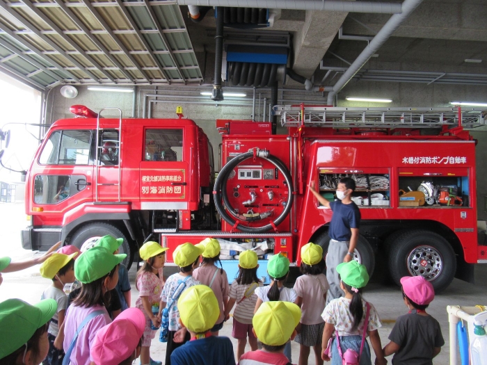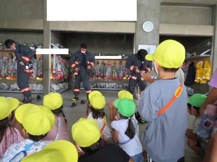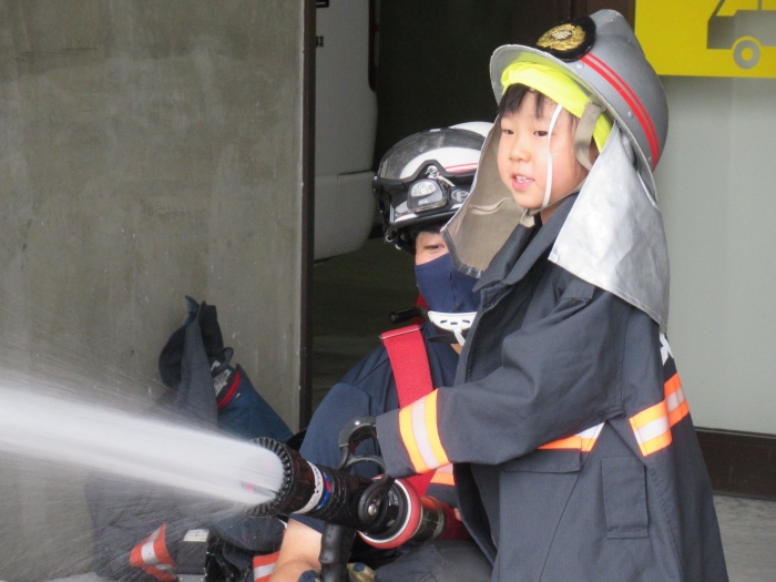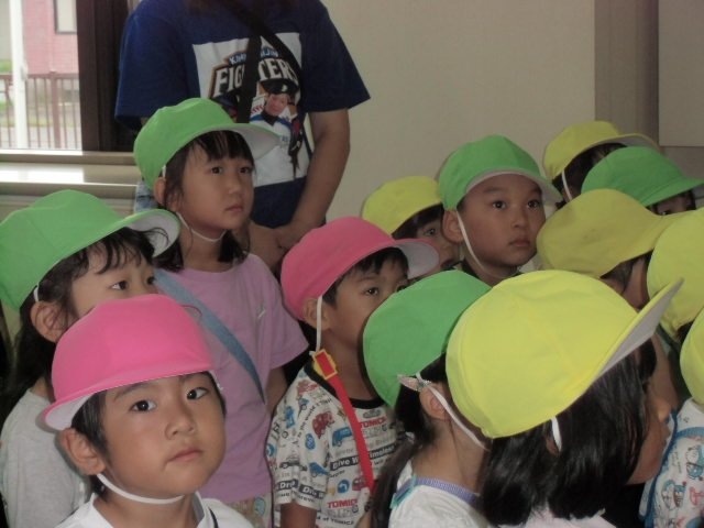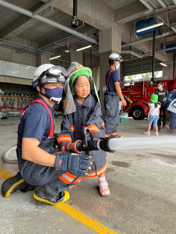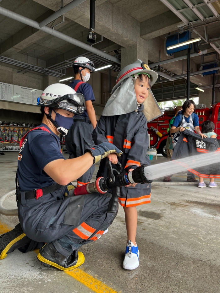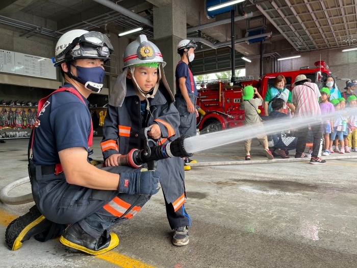 今日は、別海町消防署西春別支署の見学へ行ってきました。先日、火災を想定した訓練を実施していたこともあり、消防士さんのお話を真剣に聞いている様子がありました。お話を聞きながら署内の見学、救急車や消防自動車に乗車、消防士さんの早着替えと出動の様子の見学、実際に放水体験もさせていただきました。きびきび動く消防士さんに憧れ、「消防士になりたい!」というお友達もいましたよ。