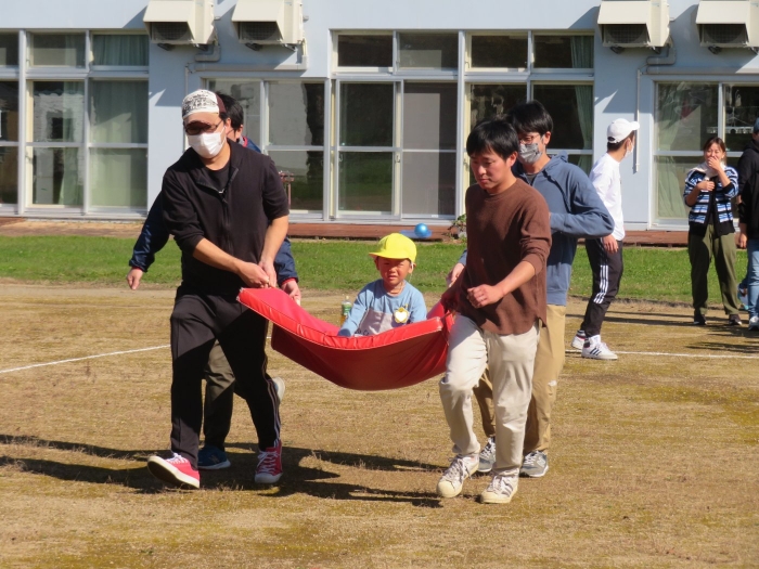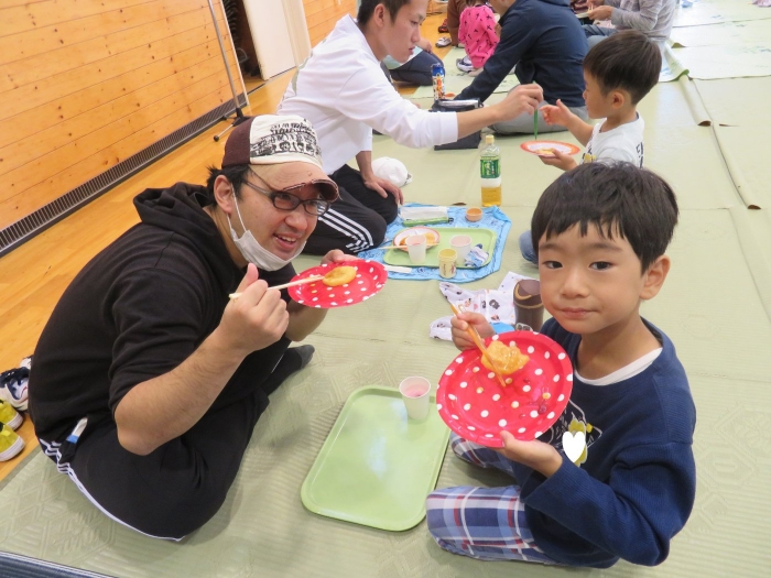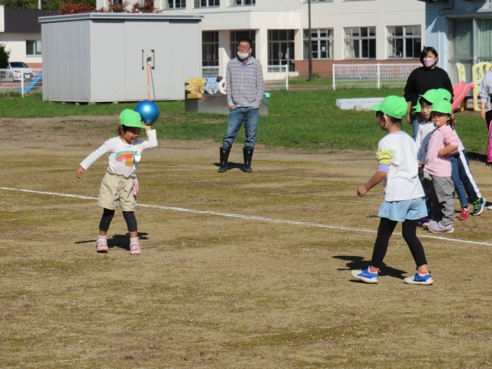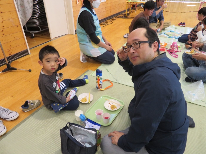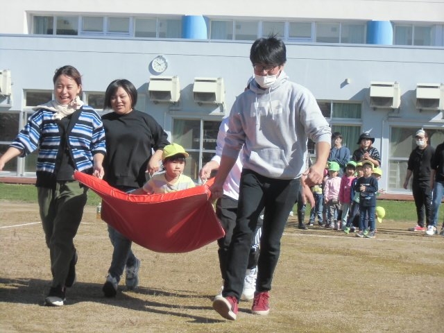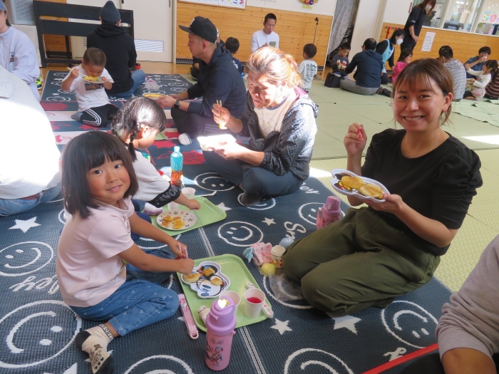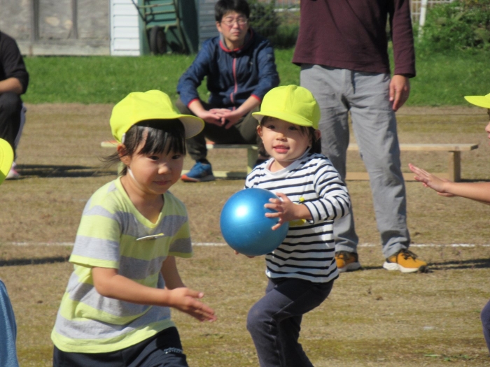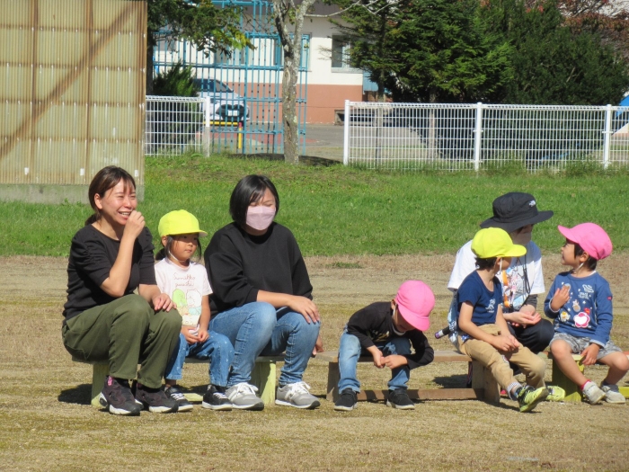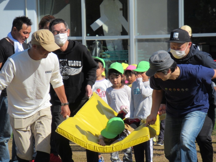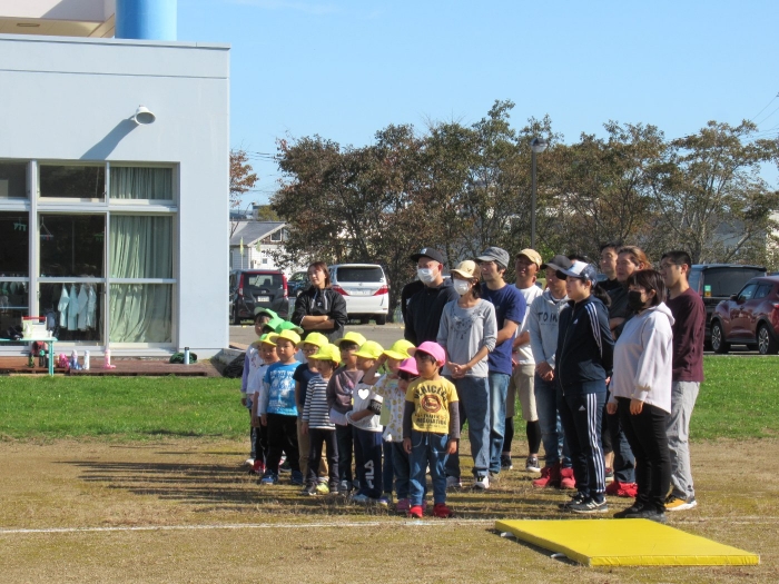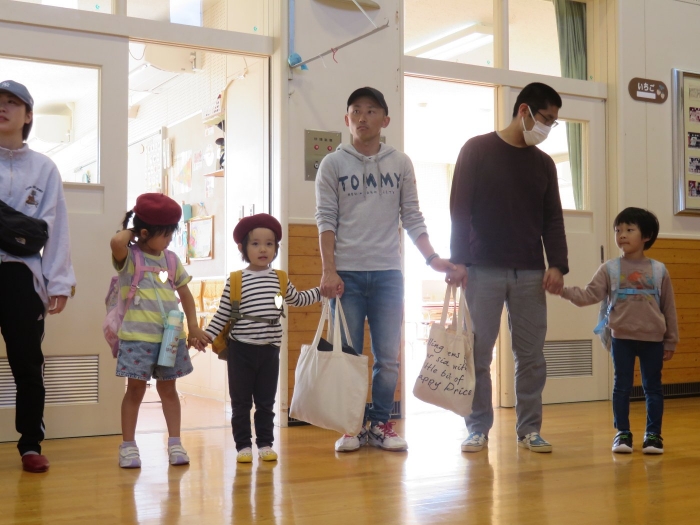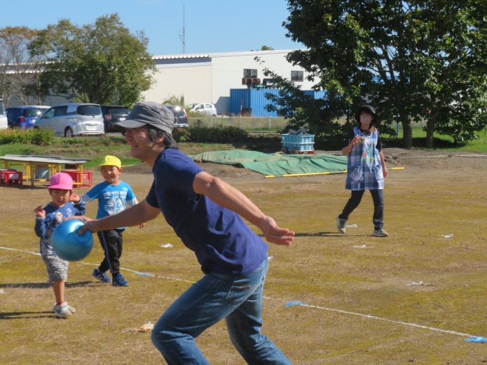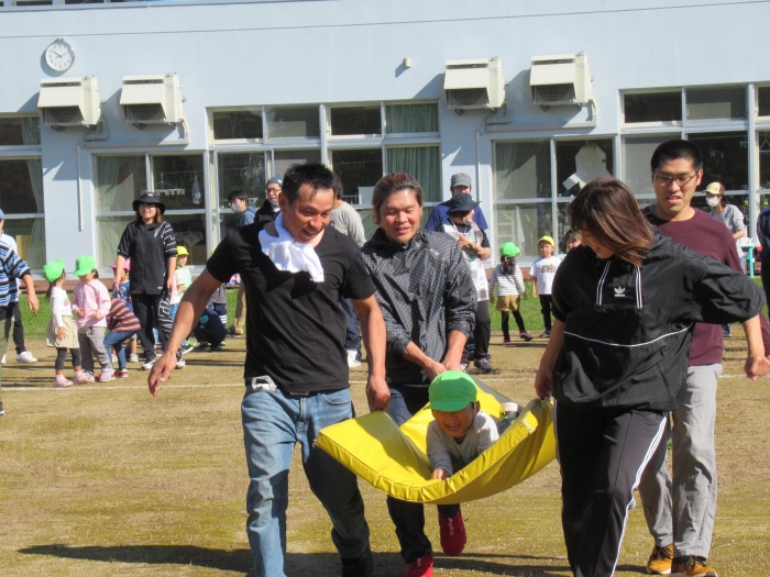 今日は、土曜参観日。昨年までは3学期に行っていましたが、天候に悩まされることが多かったため、2学期に実施することにしました。今日は秋晴れの中、一人も欠席することなく全員参加で行うことができました。朝の会を参観後は、戸外でゲーム。ゲームは、かなり盛り上がっていましたよ。子ども達はもちろん、お父さんお母さんも本気で参加してくださり、たくさんの笑顔が見られていました。今日一日、園での子ども達の様子や参観を通しての感想や気になったこと等、是非連絡帳などで教えていただけると嬉しいです。参加してくださいました保護者の皆様、お忙しい中ありがとうございました。