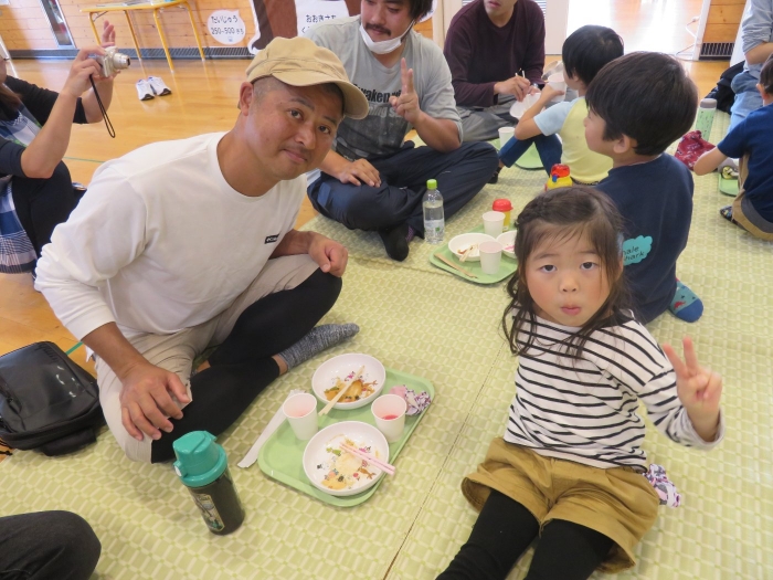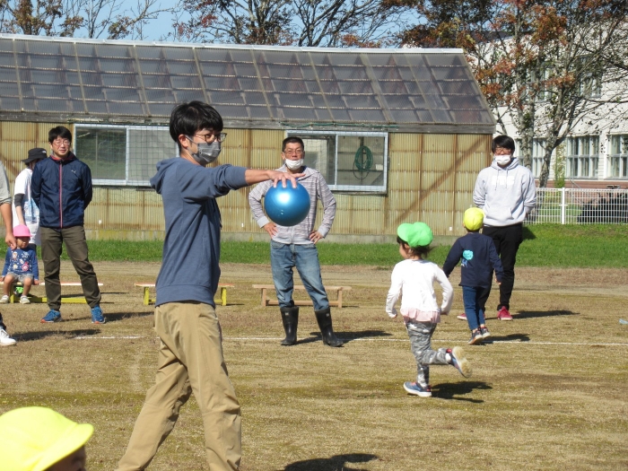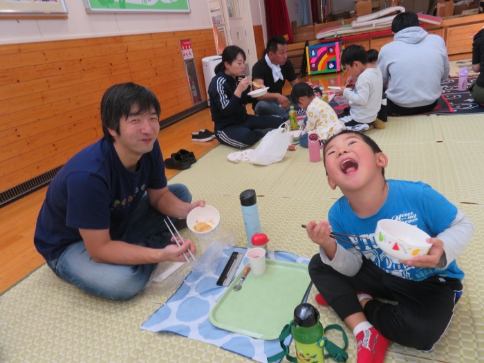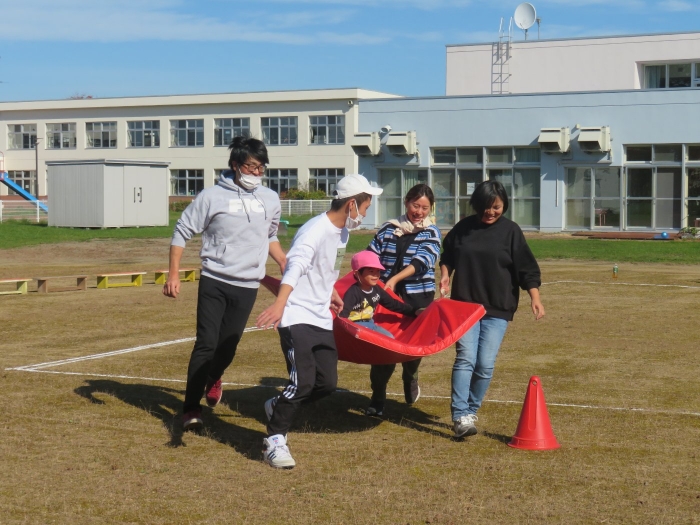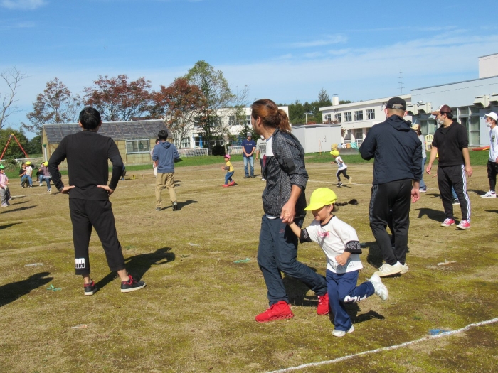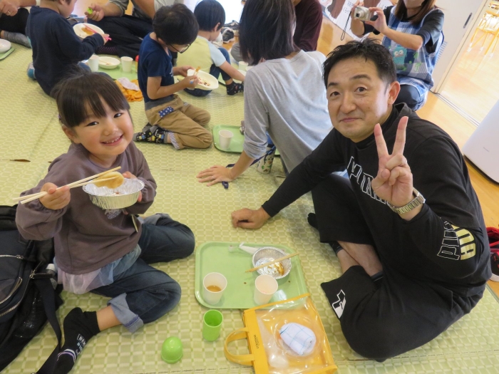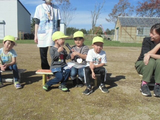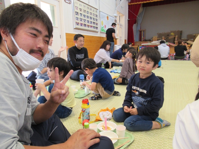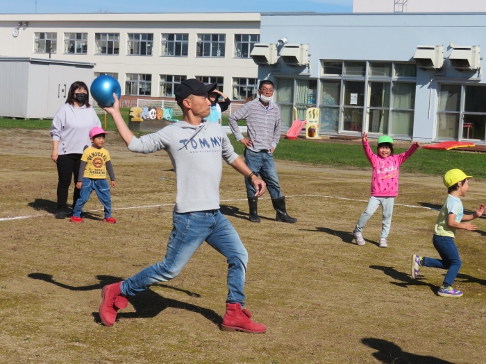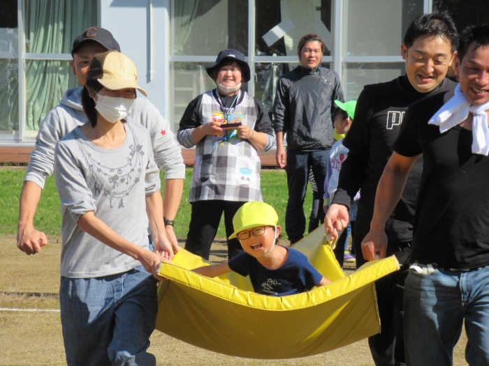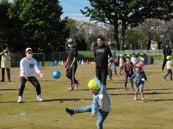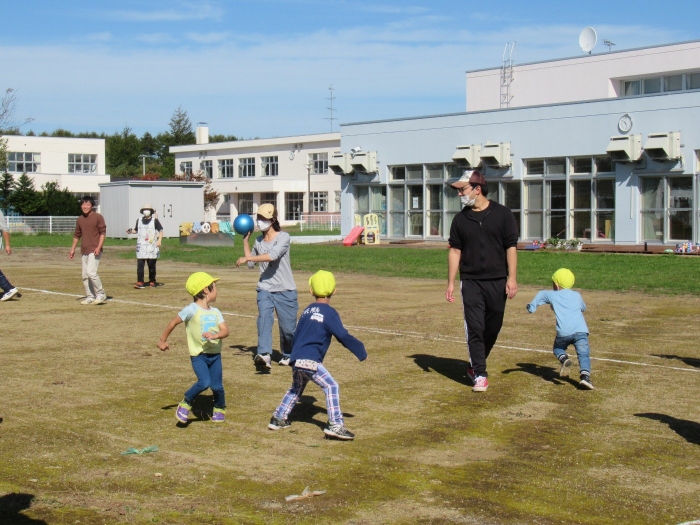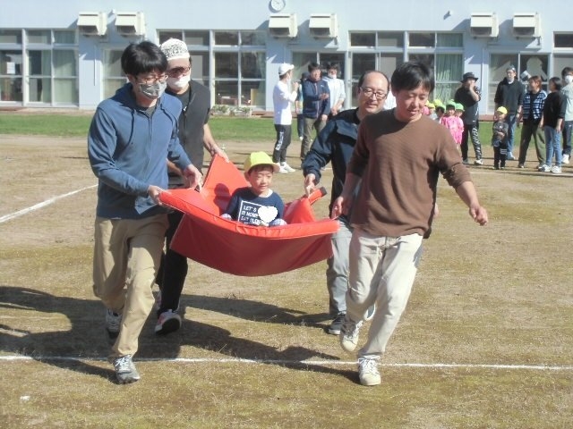 今日は、土曜参観日。昨年までは3学期に行っていましたが、天候に悩まされることが多かったため、2学期に実施することにしました。今日は秋晴れの中、一人も欠席することなく全員参加で行うことができました。朝の会を参観後は、戸外でゲーム。ゲームは、かなり盛り上がっていましたよ。子ども達はもちろん、お父さんお母さんも本気で参加してくださり、たくさんの笑顔が見られていました。今日一日、園での子ども達の様子や参観を通しての感想や気になったこと等、是非連絡帳などで教えていただけると嬉しいです。参加してくださいました保護者の皆様、お忙しい中ありがとうございました。