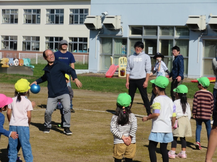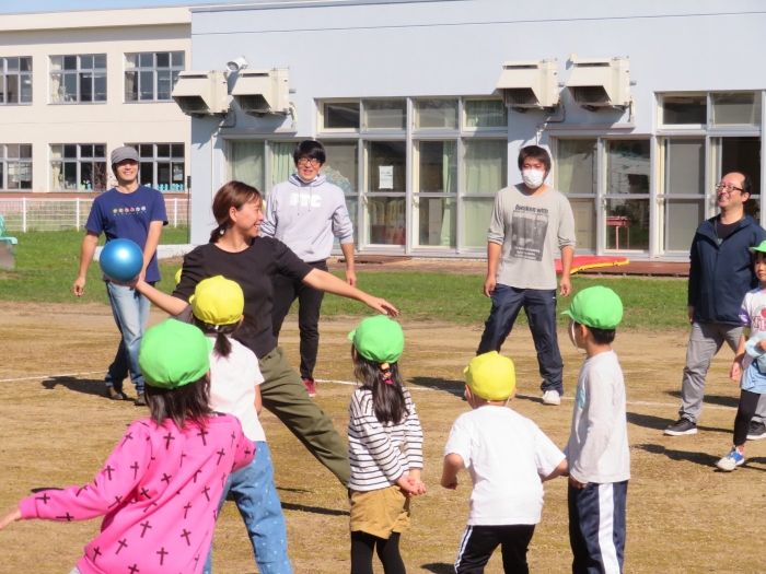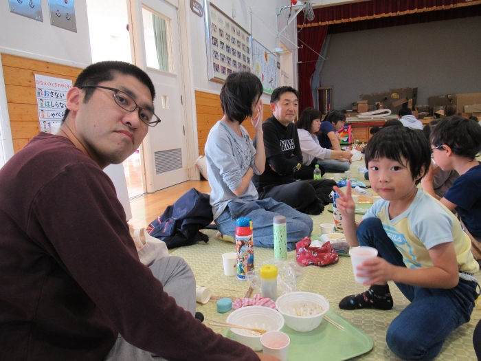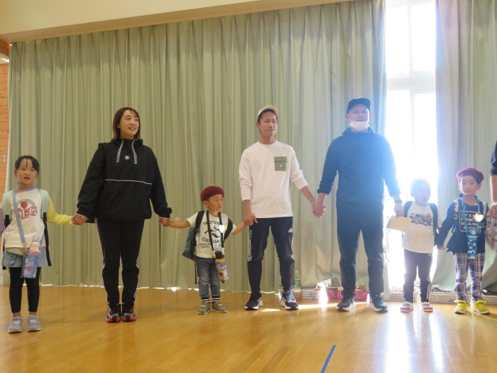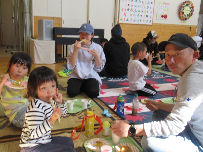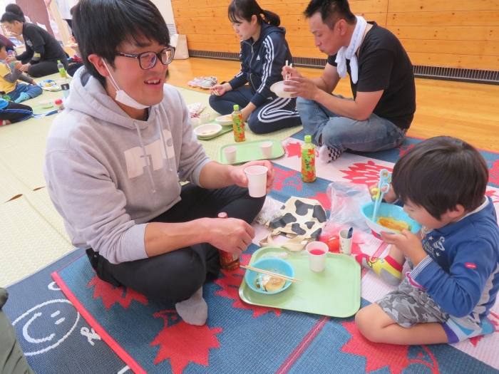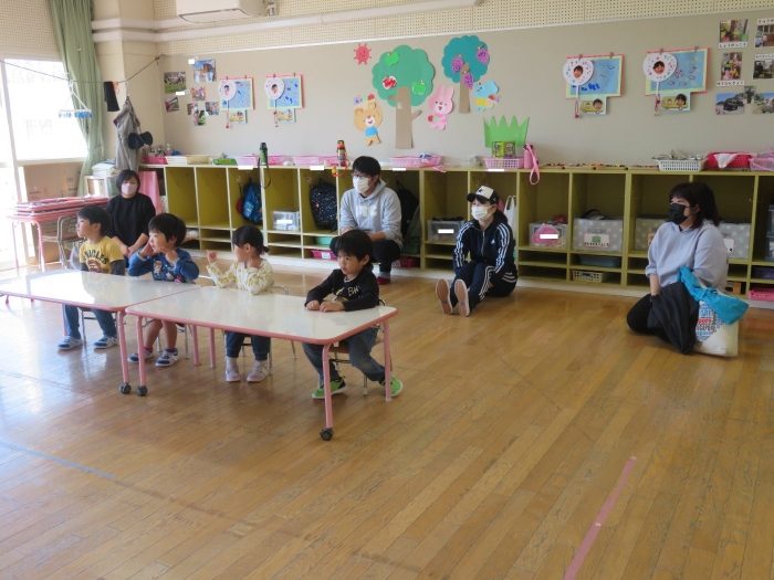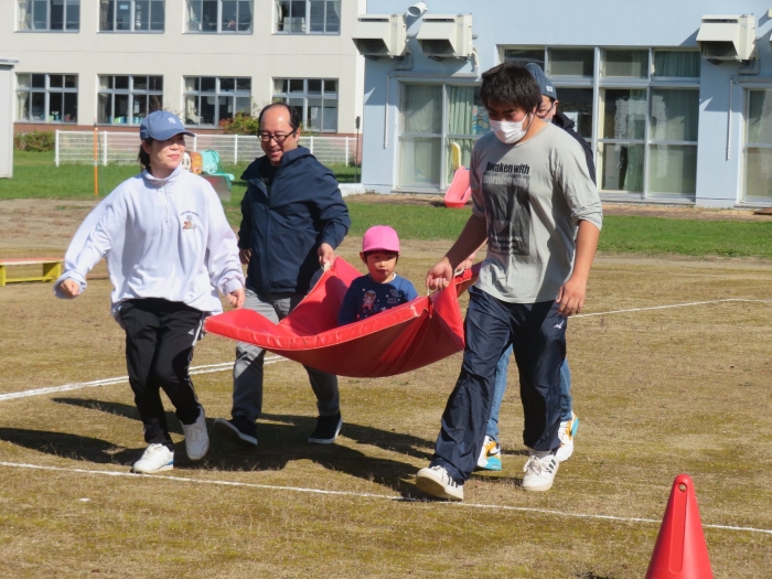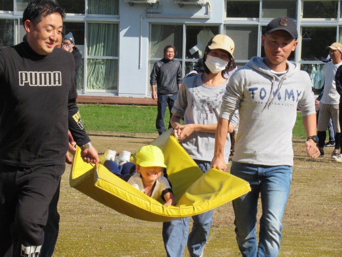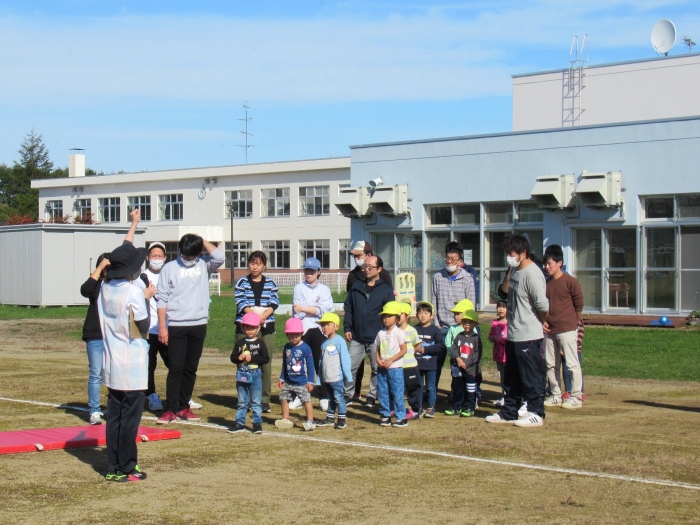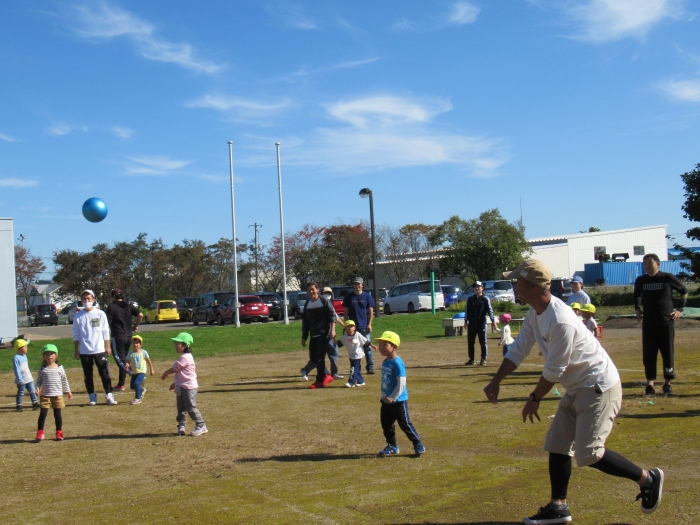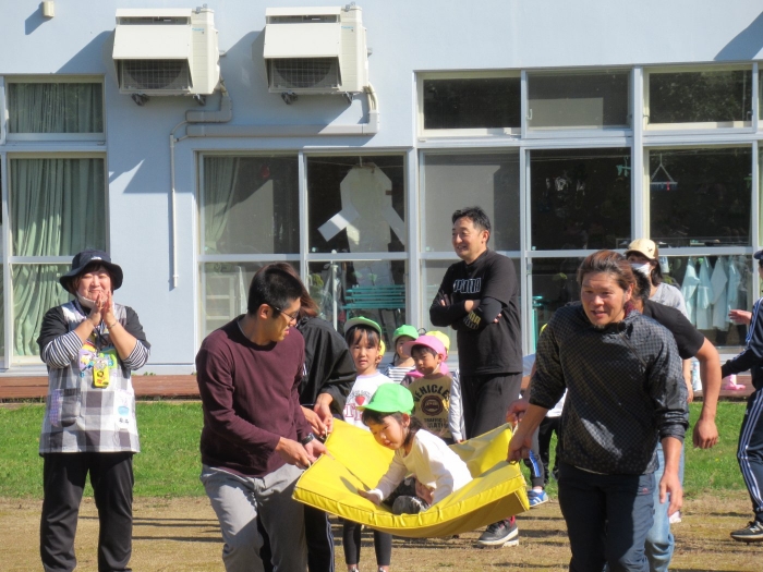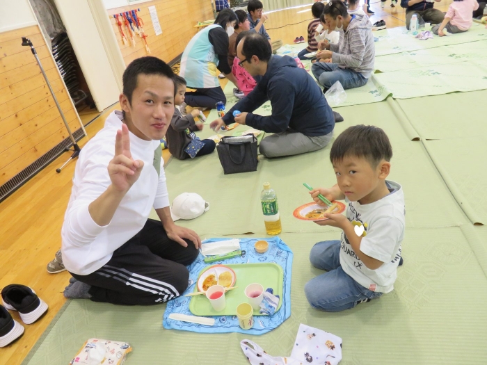 今日は、土曜参観日。昨年までは3学期に行っていましたが、天候に悩まされることが多かったため、2学期に実施することにしました。今日は秋晴れの中、一人も欠席することなく全員参加で行うことができました。朝の会を参観後は、戸外でゲーム。ゲームは、かなり盛り上がっていましたよ。子ども達はもちろん、お父さんお母さんも本気で参加してくださり、たくさんの笑顔が見られていました。今日一日、園での子ども達の様子や参観を通しての感想や気になったこと等、是非連絡帳などで教えていただけると嬉しいです。参加してくださいました保護者の皆様、お忙しい中ありがとうございました。