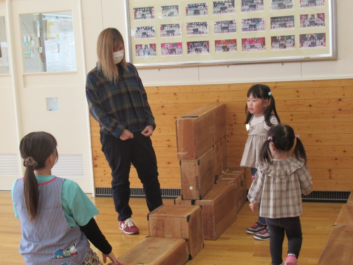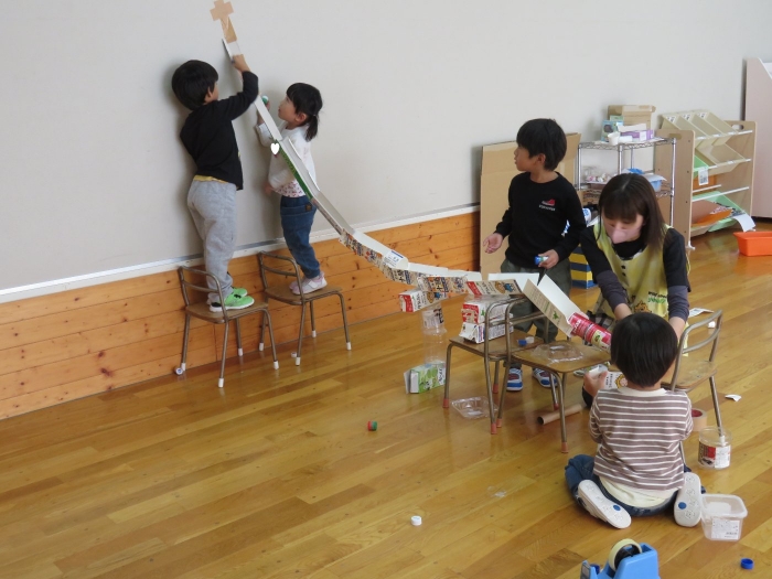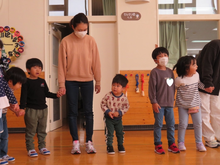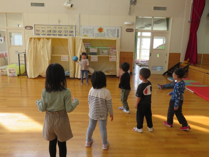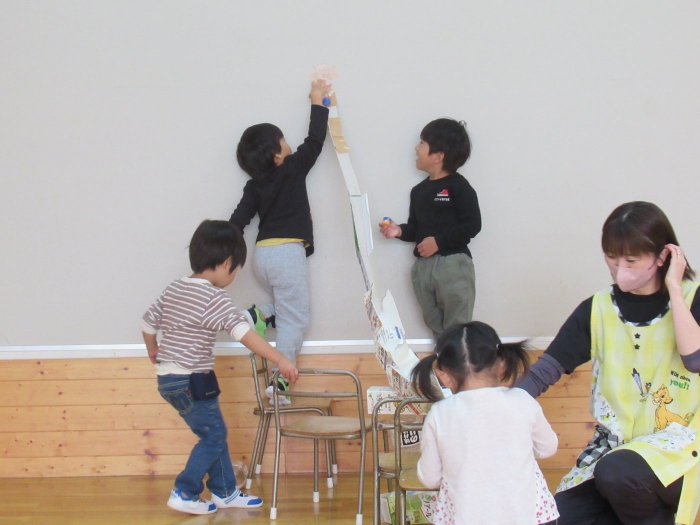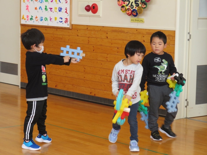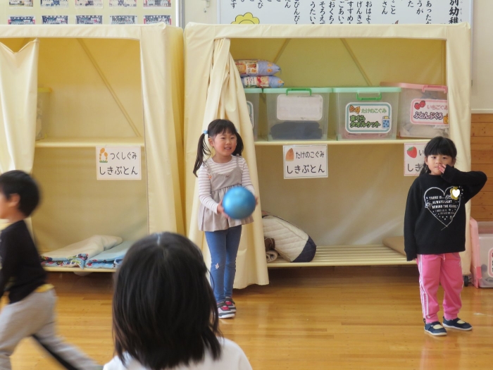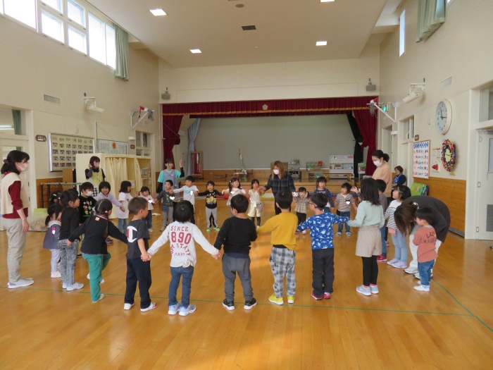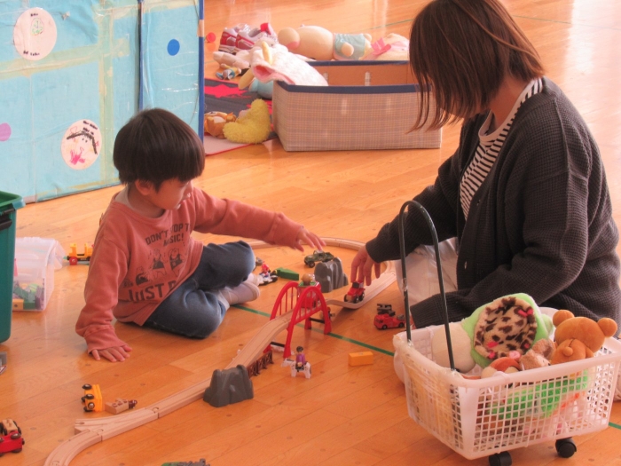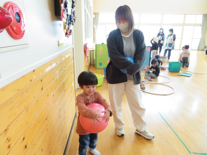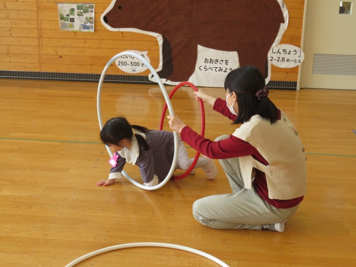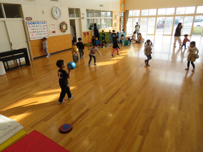 今日は、にこぴんクラブ、4組の親子が遊びに来てくれました。つくし組・たけのこ組は、ゆめの会に向けての話し合い後、プレイルームに出てきて一緒に遊びました。たけのこさんは、小さなお友達と遊ぶことが上手になりましたね。3年間のにこぴんの成果でしょうか。つくしさん、いちごさんは、自分のやりたい遊びを楽しんでいるお友達が多かったようです。次回のにこぴんは、12月6日(水)です。