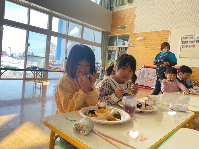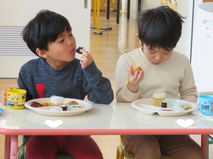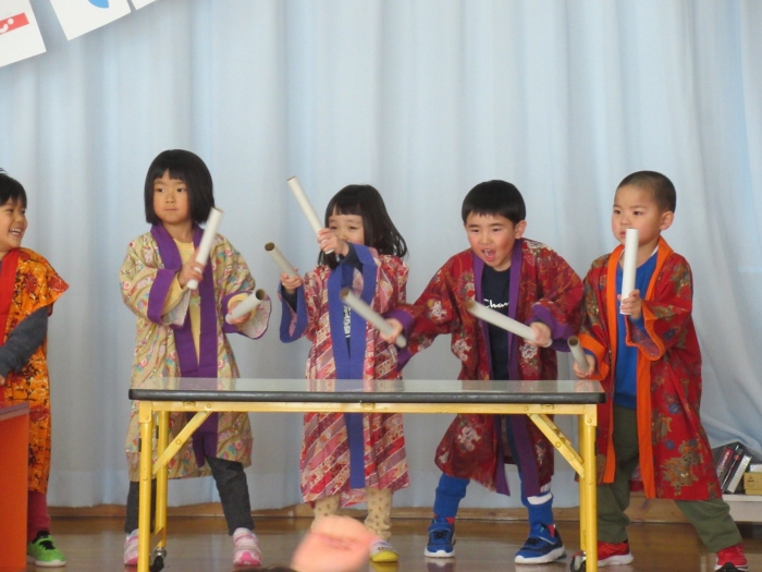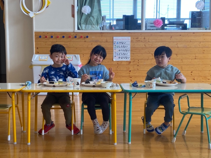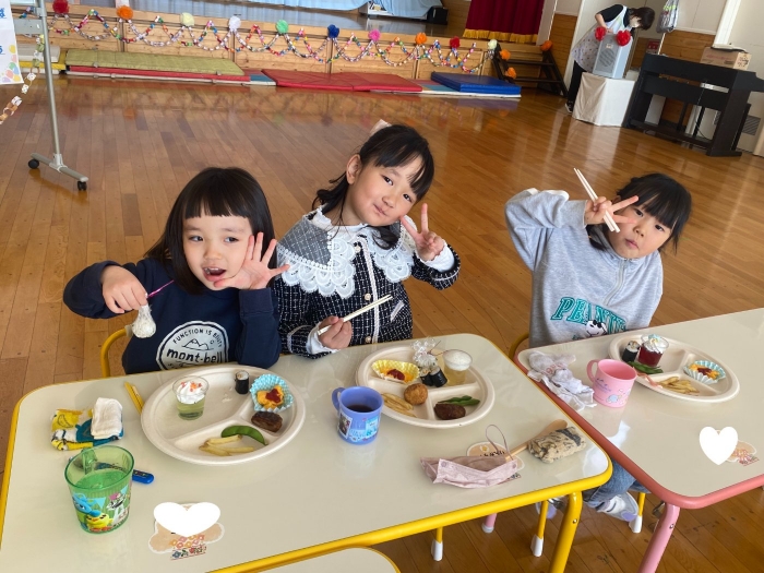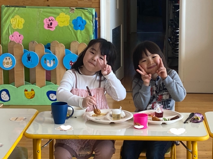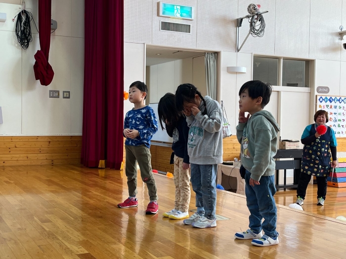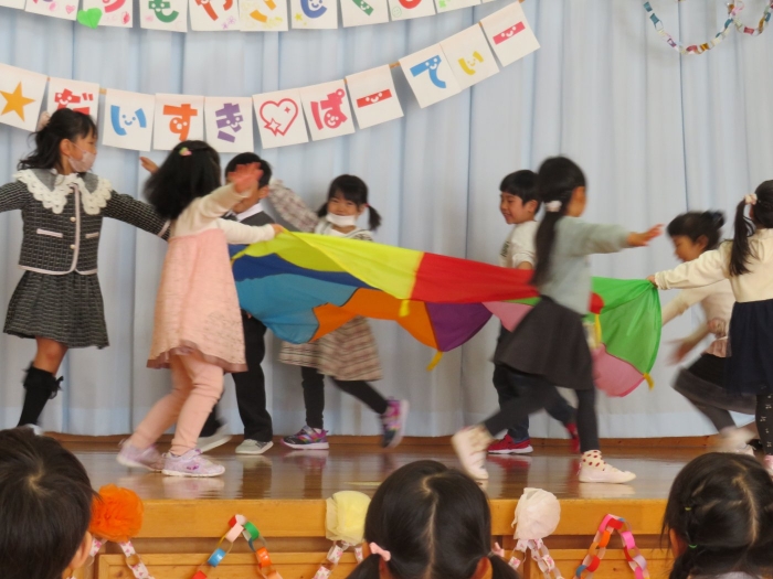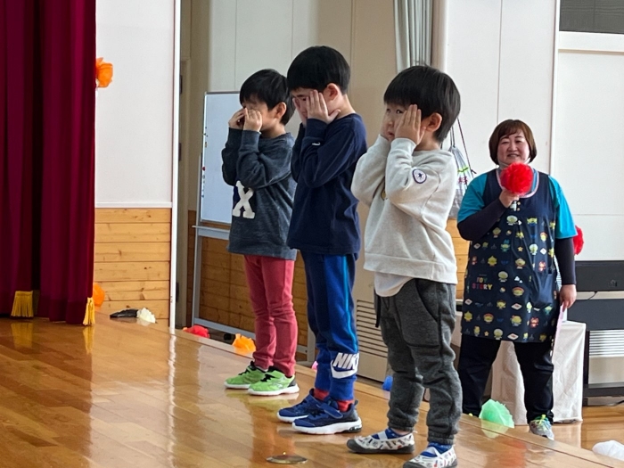 今日は、待ちに待った『たけのこさん・いつもやさしくしてくれてありがとう☆だいすき♡パーティ』でした。昨日は臨時休園、そして今日は10時登園になり、事前の準備にかなり変更がありましたが、無事に行うことができてホッとしました。この一か月、大好きなたけのこさんのために協力して準備をしてきたつくしさん・いちごさん。張り切って出し物を披露したり、一生懸命進行したりする姿は、とても頼もしく見えました。つくしさん・いちごさんの気持ちは、間違いなくたけのこさんに届いていると思います。それでは、写真と共にパーティーの様子をご覧ください。