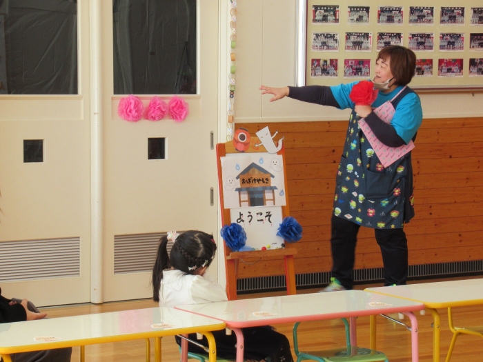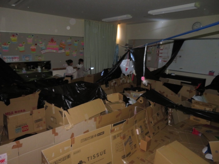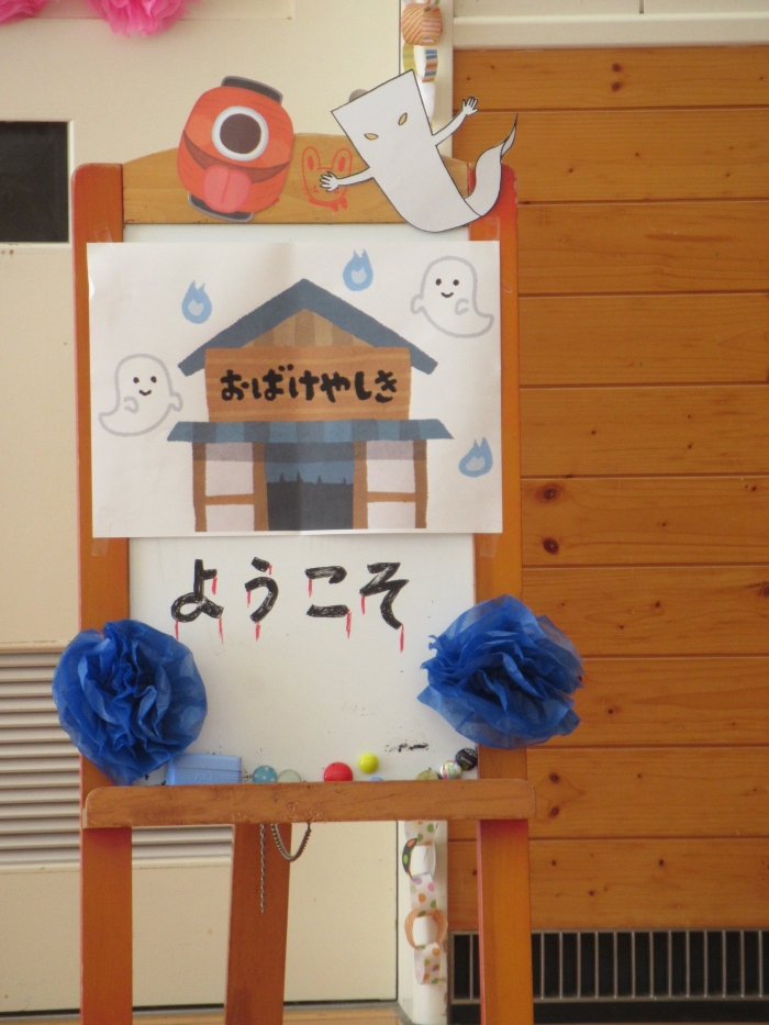 おばけ屋敷は、たけのこさんが2学期におばけ屋敷作りをしていたことが印象に残っていたようで、出し物で行いびっくりさせよう!ということになったようです。つくしさん・いちごさん、たけのこさんの様子をよく見ていたんですね。