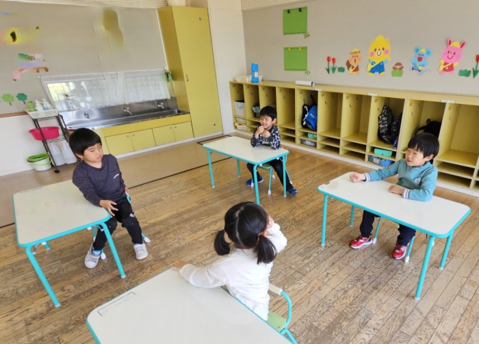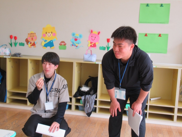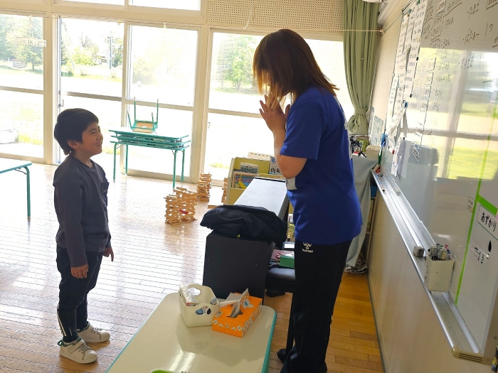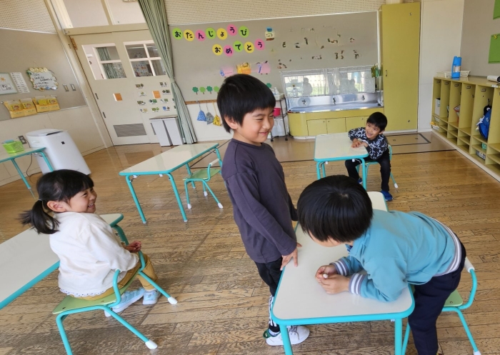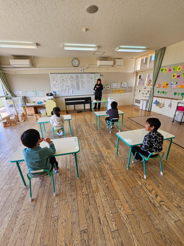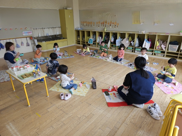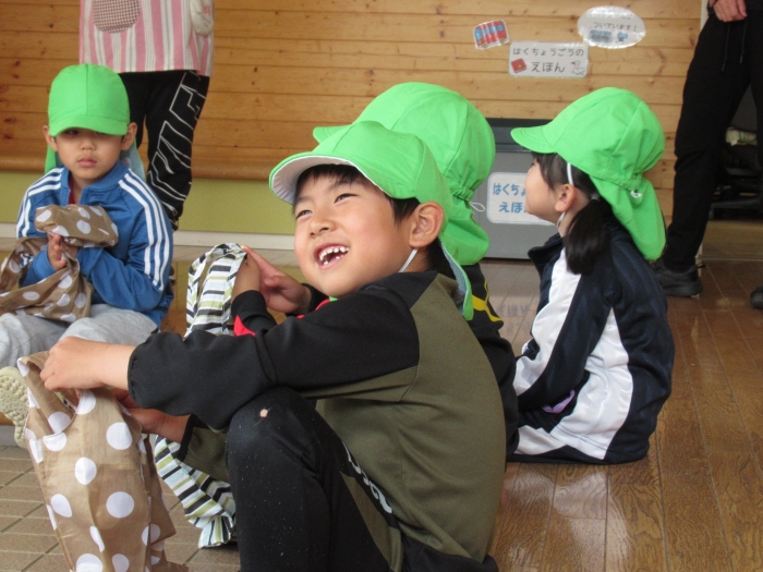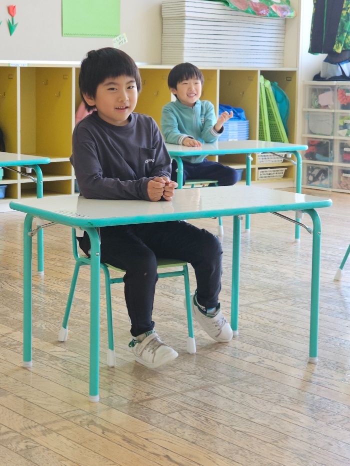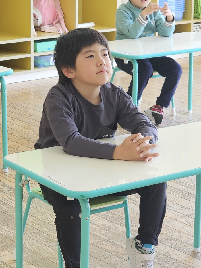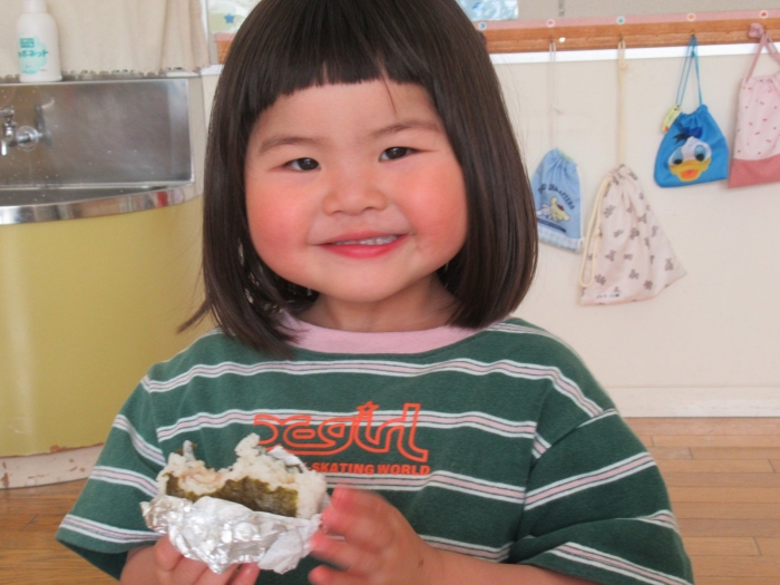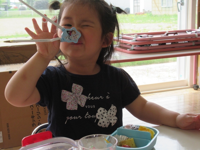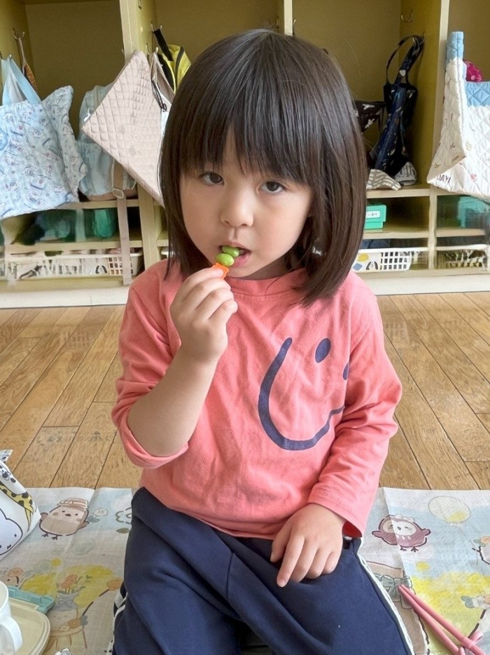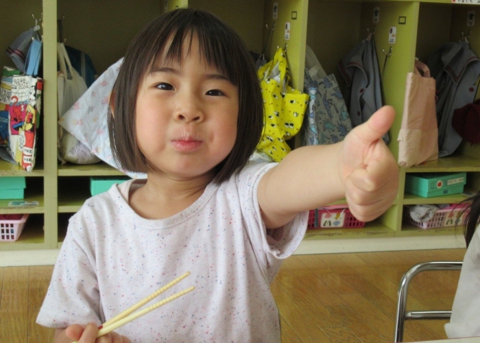 そして、迎えたクッキングの30日(金)! 最初の難関、 エプロン、三角巾も自分で身に付け、調理道具・材料を取り揃え、手順を聞きながら全ての工程に意欲満々で取り組みました。作ったパンケーキは、もちろん、いちご組・つくし組にもお裾分け! もっと喜んでもらいたいと、お好みのソースを掛ける・絵を描くサービスまで考える姿もありました。 みんなが笑顔になった たけのこ組初クッキング! 今度は、クラス4人揃って行いたい!とのことで、みんなにとって嬉しい第2弾を企画中です。