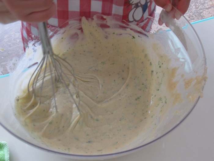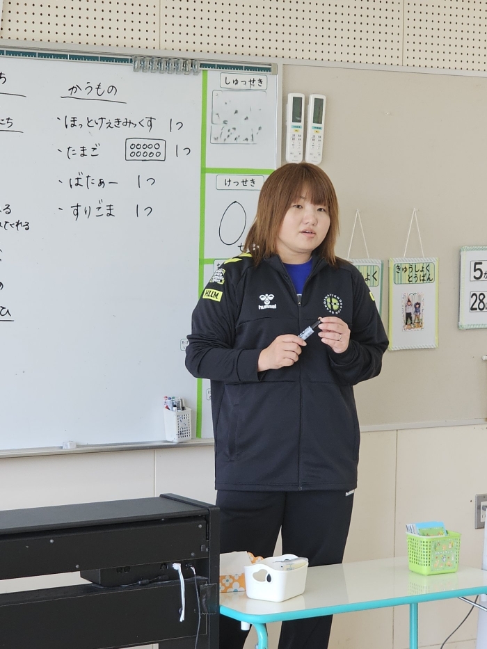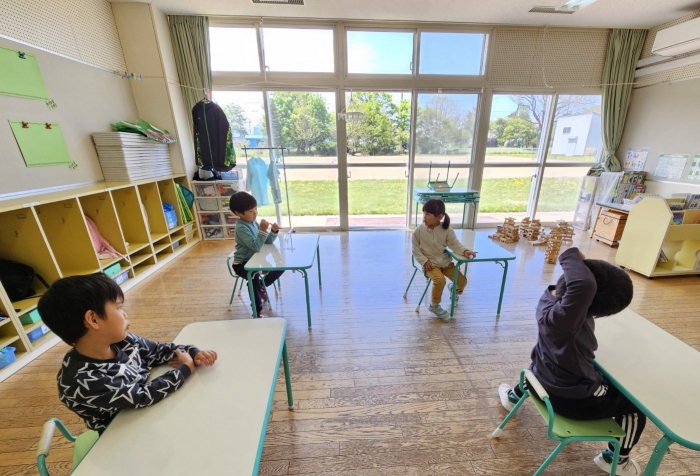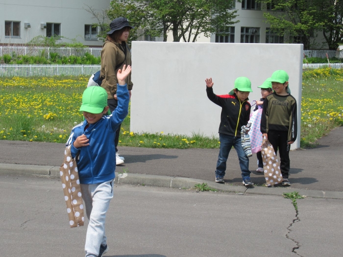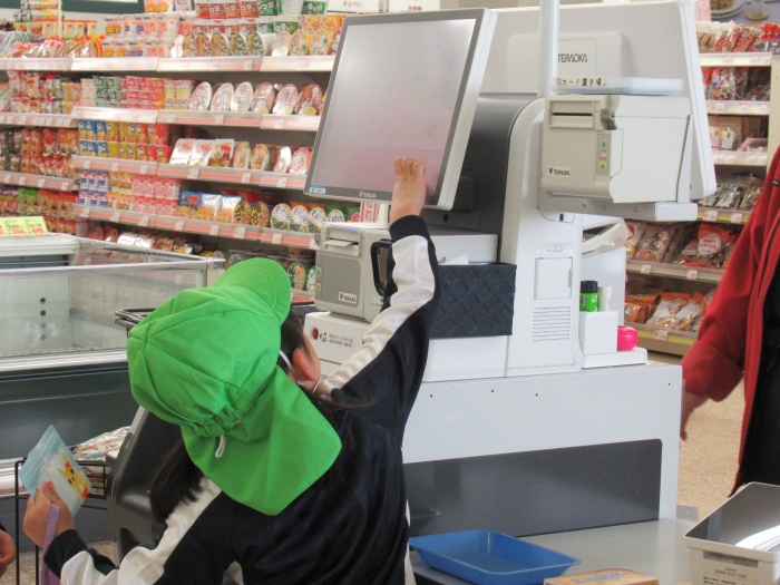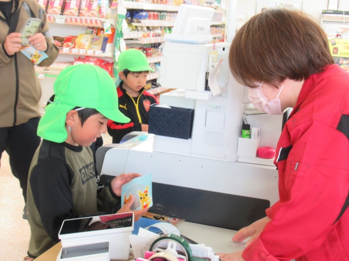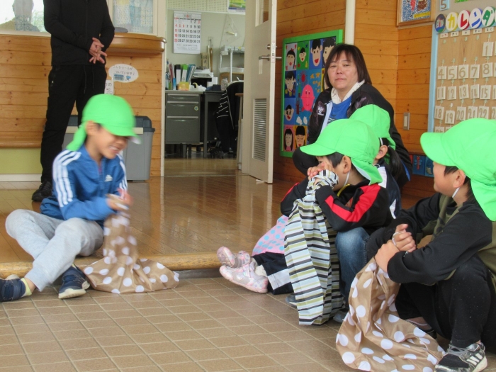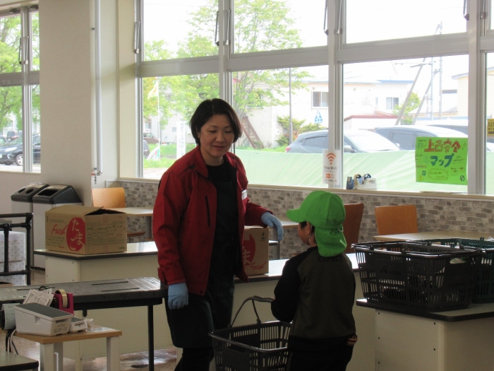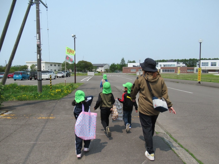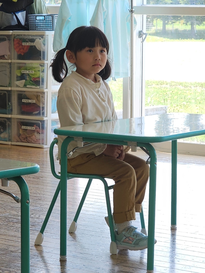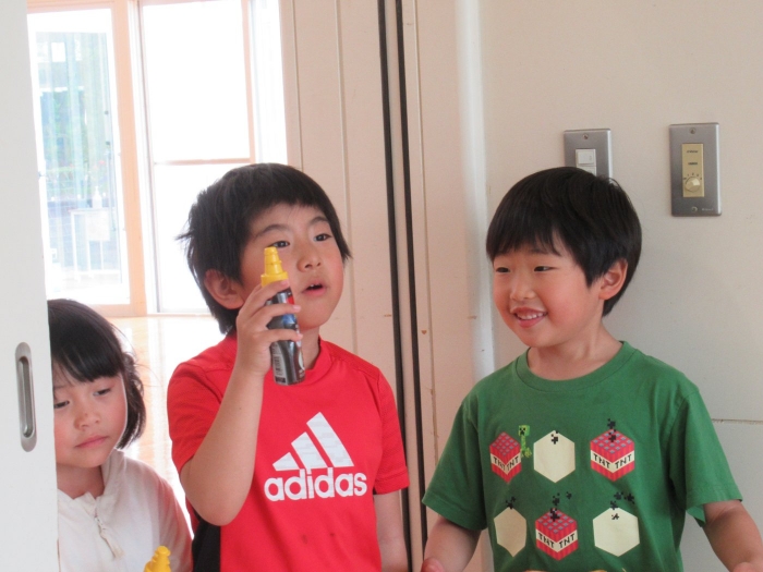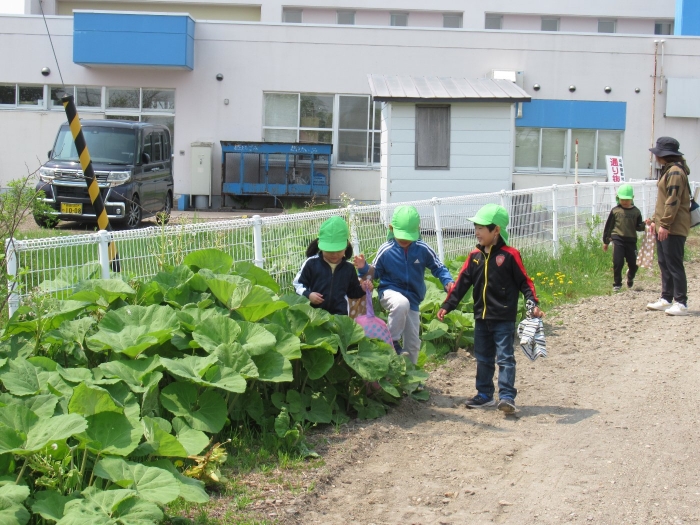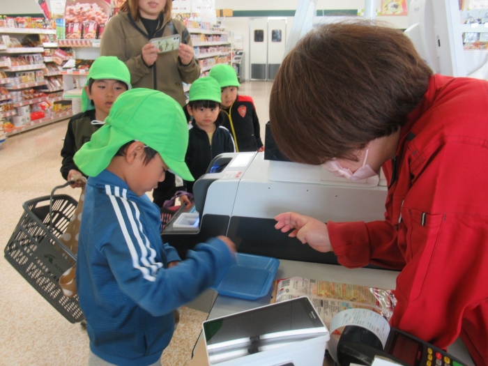 さて、ヨモギを発見した頃から『よもぎパンケーキを作りたい!』と言っていた たけのこ組。歴代の年長組が作って振舞ってくれたこと・味の記憶がよみがえり、後輩たちへ脈々と受け継がれているようです。パンケーキの材料や作り方をお家で聞いてきたり、誰が何を買うか相談し、困った時には助け合いながらAコープで買物をしたり、ヨモギが足りないかもしれないと採りに行くなど、事前の準備も自分達で頑張りました。