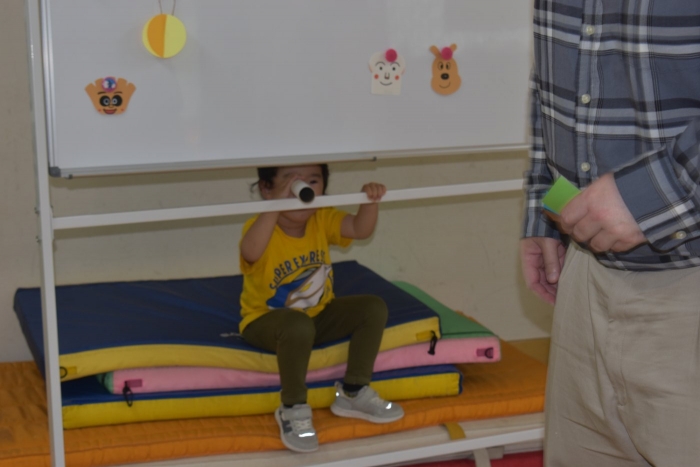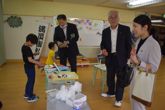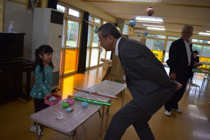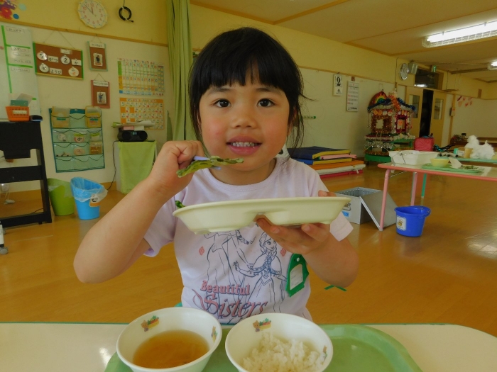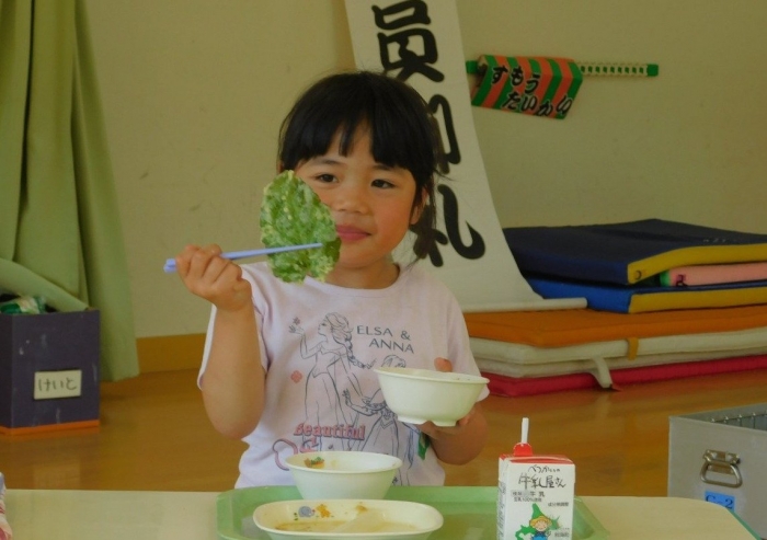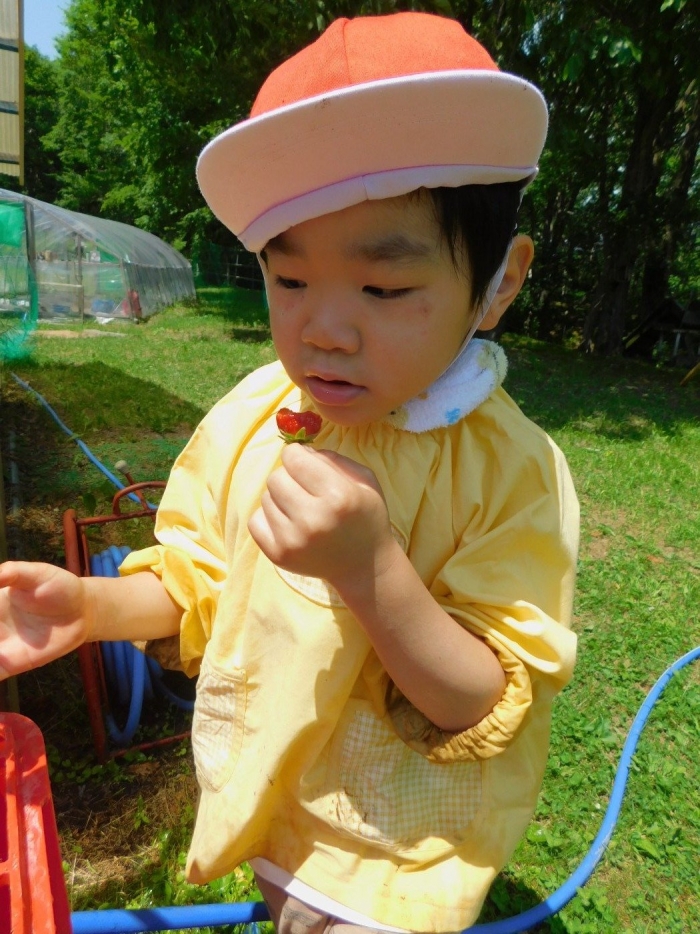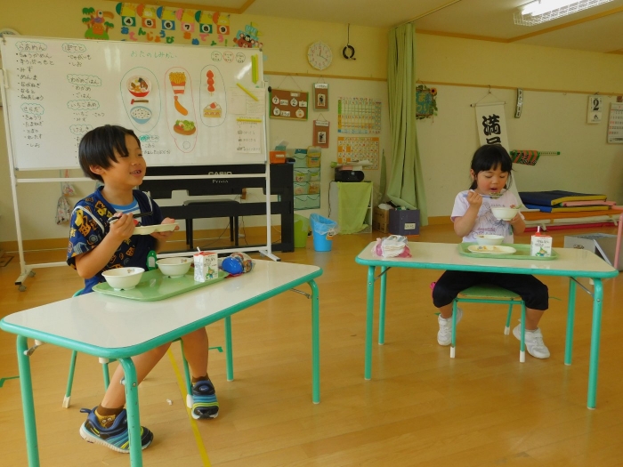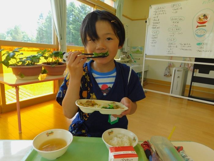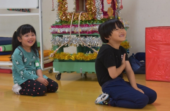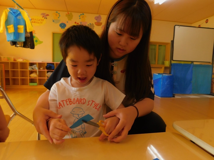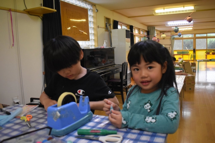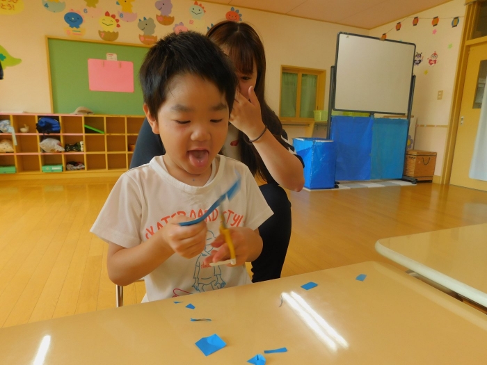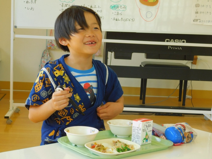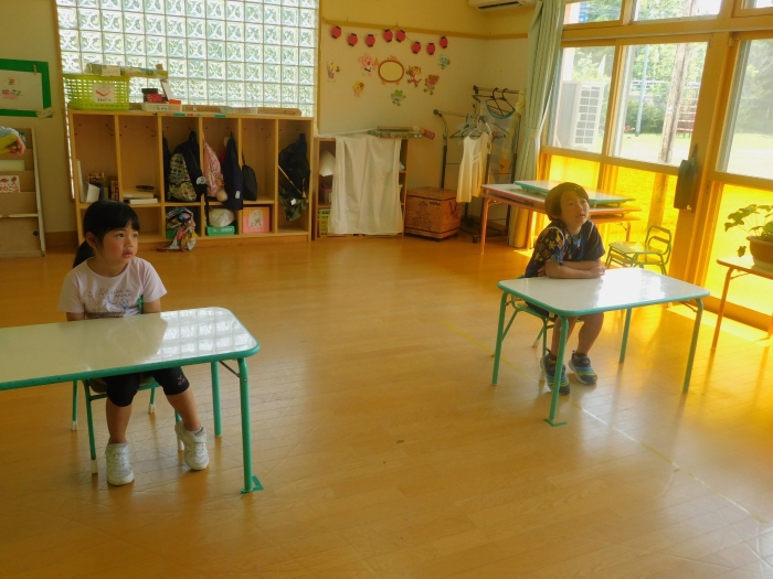 年少児は,初めて出会うマシュー先生に緊張するのかな?と思っていたら,自分から関わりを求めている姿がありました。一緒に遊びたい,関わってもらいたいと,あの手,この手で必死にアピールしている子も(笑) 全力を出しすぎたのか? 午睡は5分くらいで夢の中でした。いろいろな人と触れ合う楽しさから,関わる力がついてきた子ども達です。