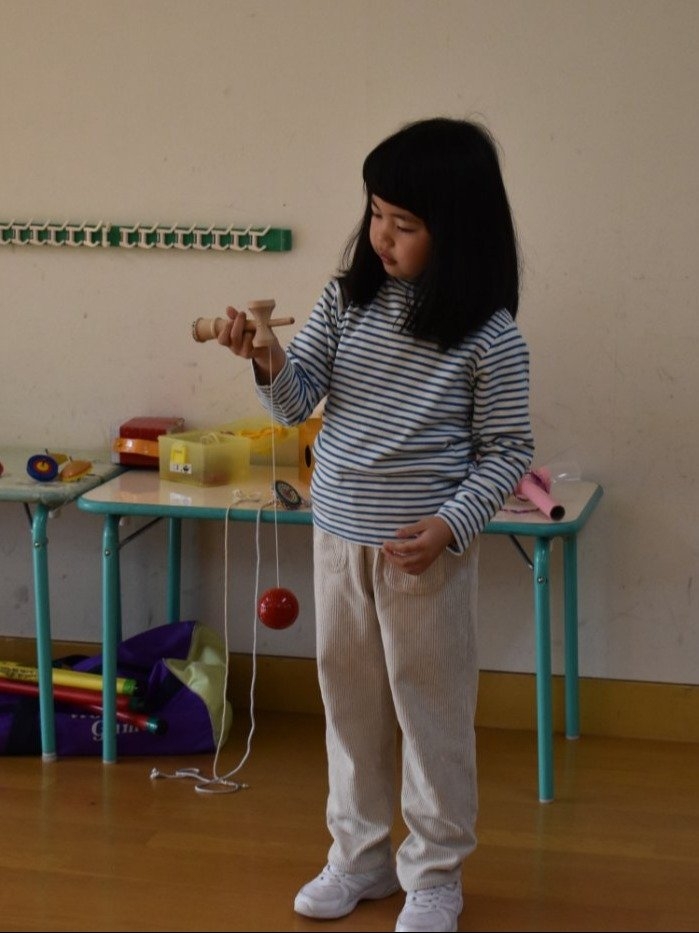 紐ゴマを回せるようになり,次はけん玉にチャレンジ☆彡