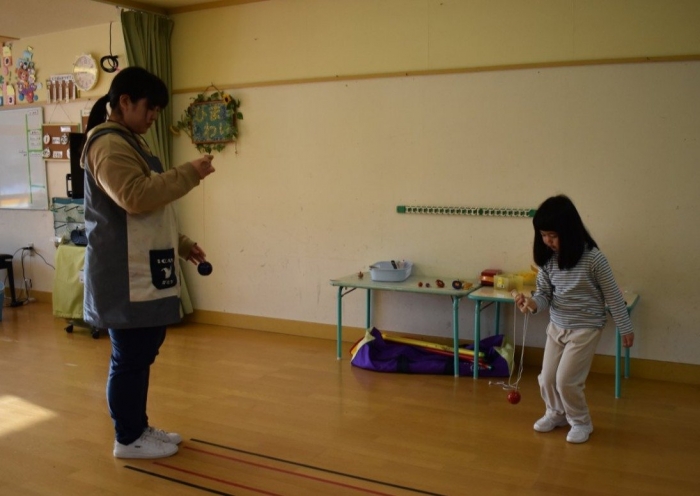 朝遊びでは,繰り返し挑戦!お正月遊び