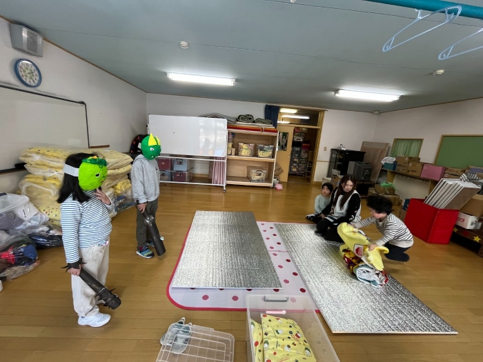 「布団を畳んでいない子は,いないかー!」 オニのチェックが入ります